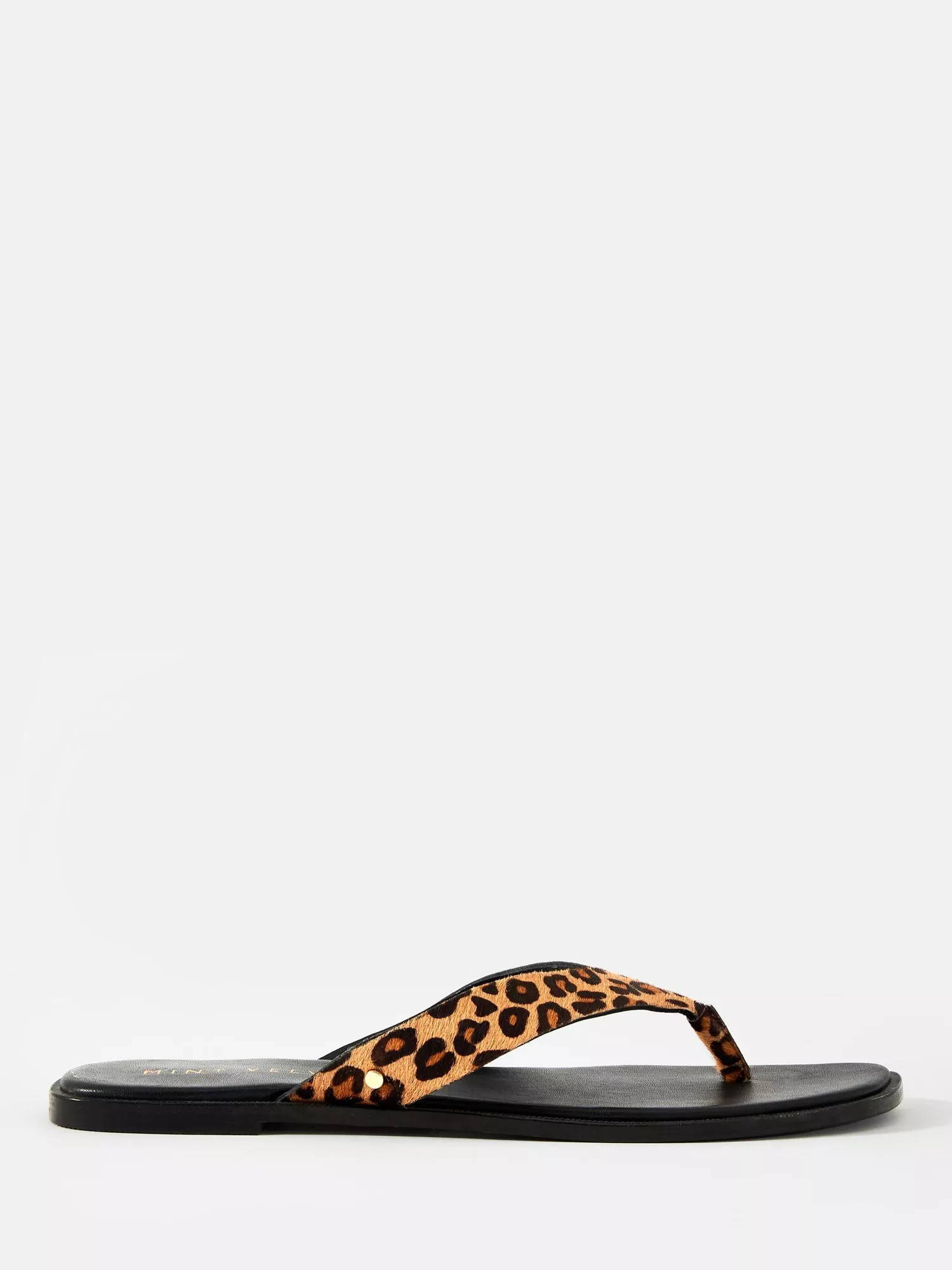 Mint Velvet is unequivocal about its belief that you should never underestimate the power of a good outfit on a bad day. You could even extend that idea to footwear and more specifically, these striking leopard print flip flops.