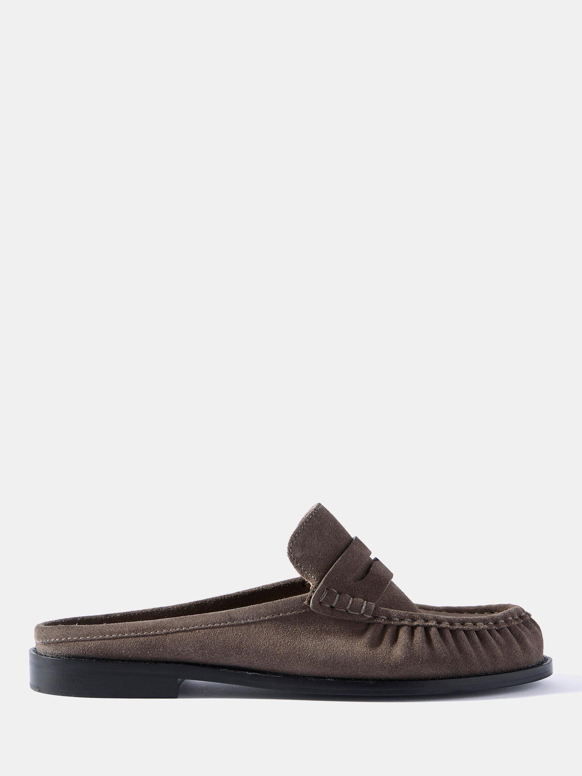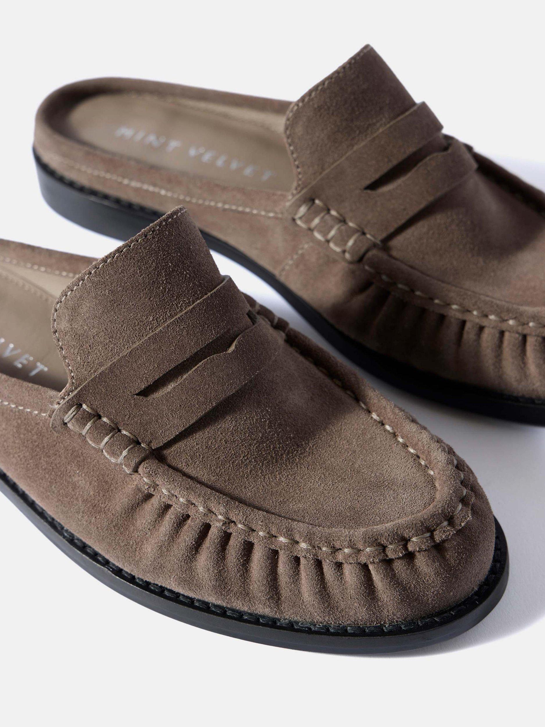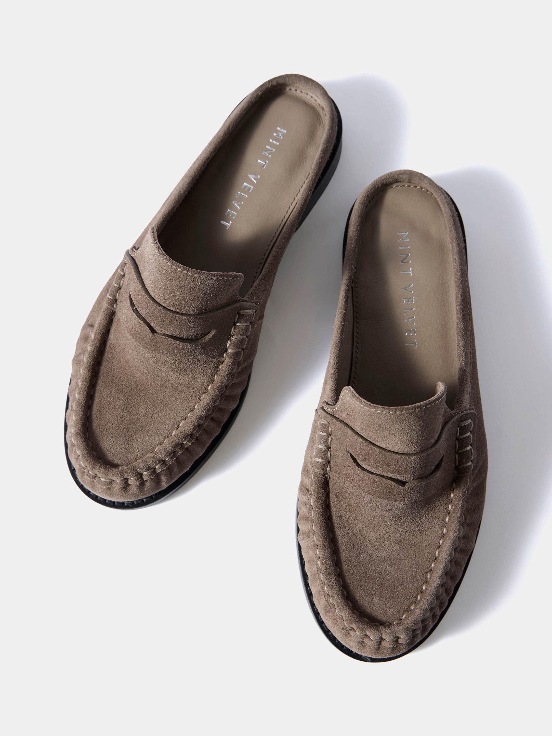 Mint VelvetLyla Backless Suede Loafers, Grey
