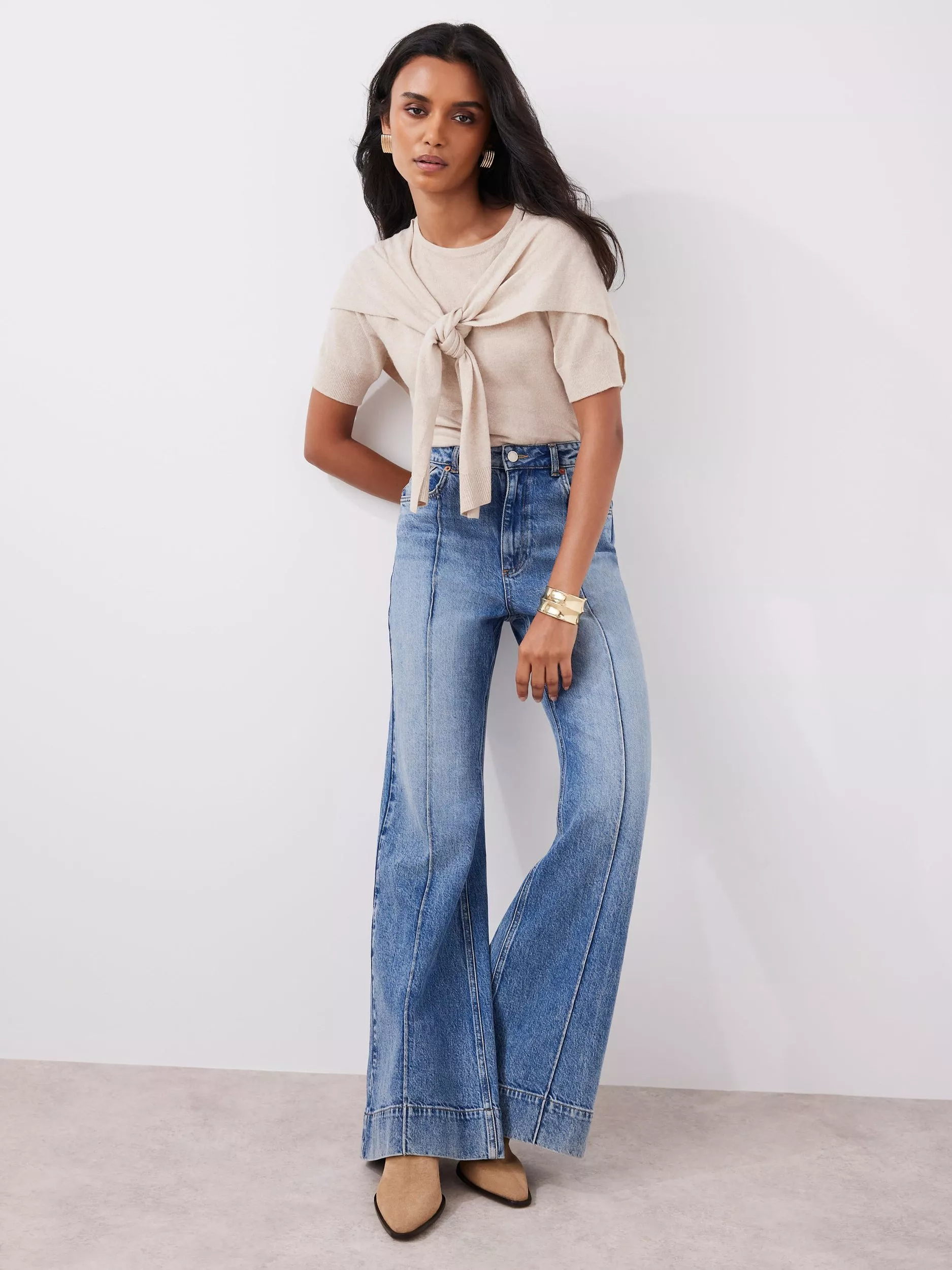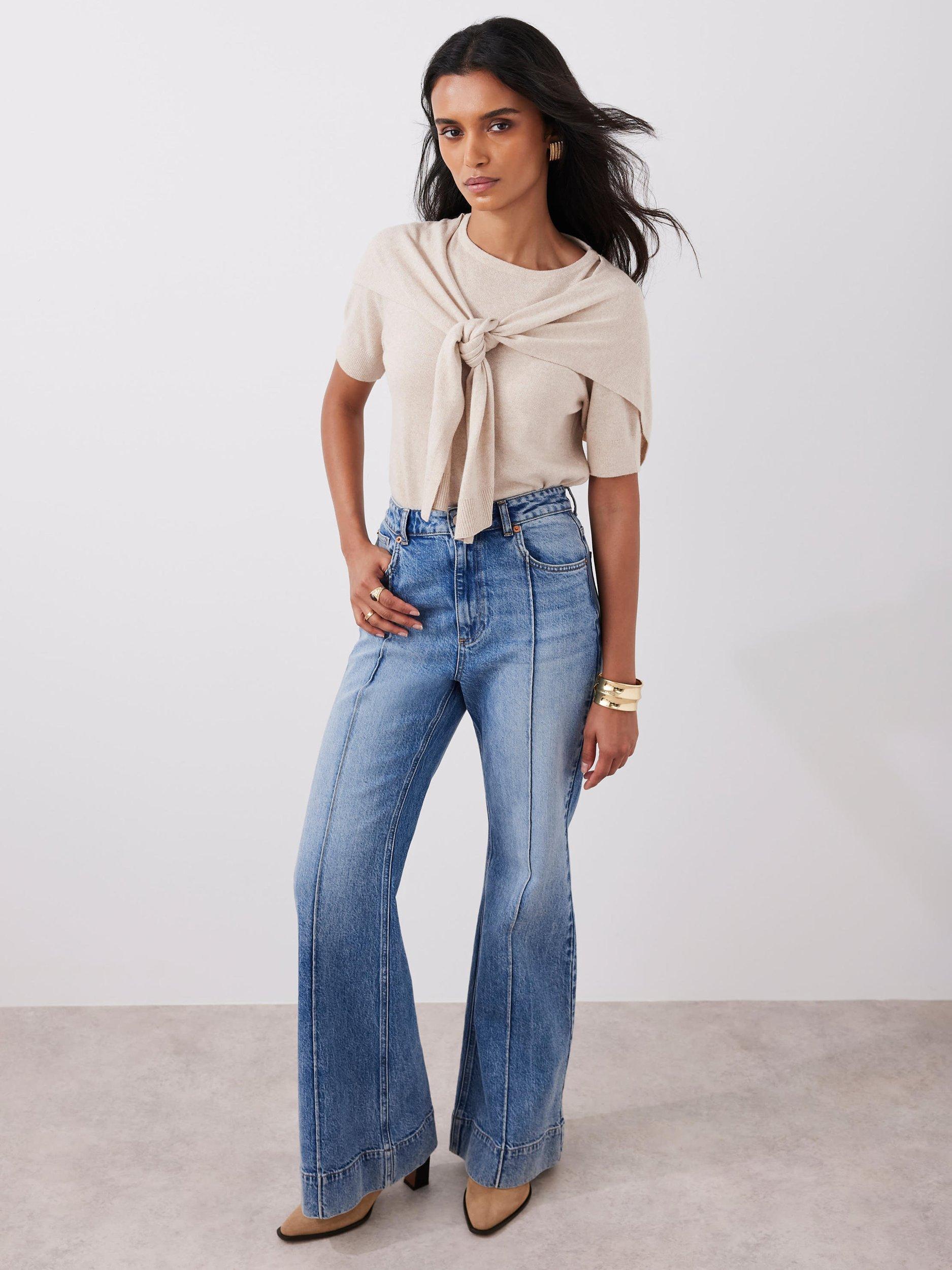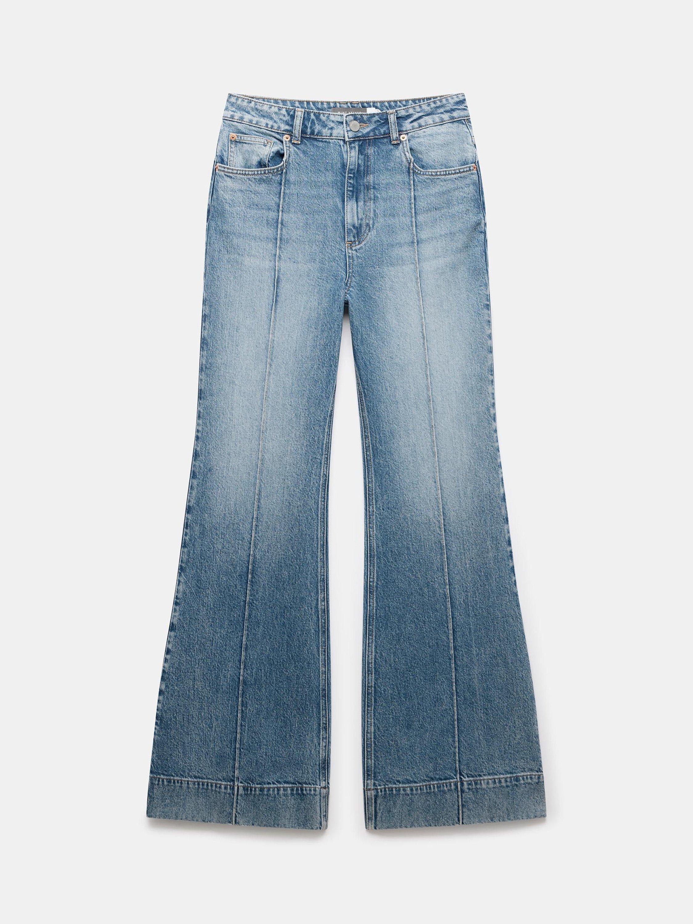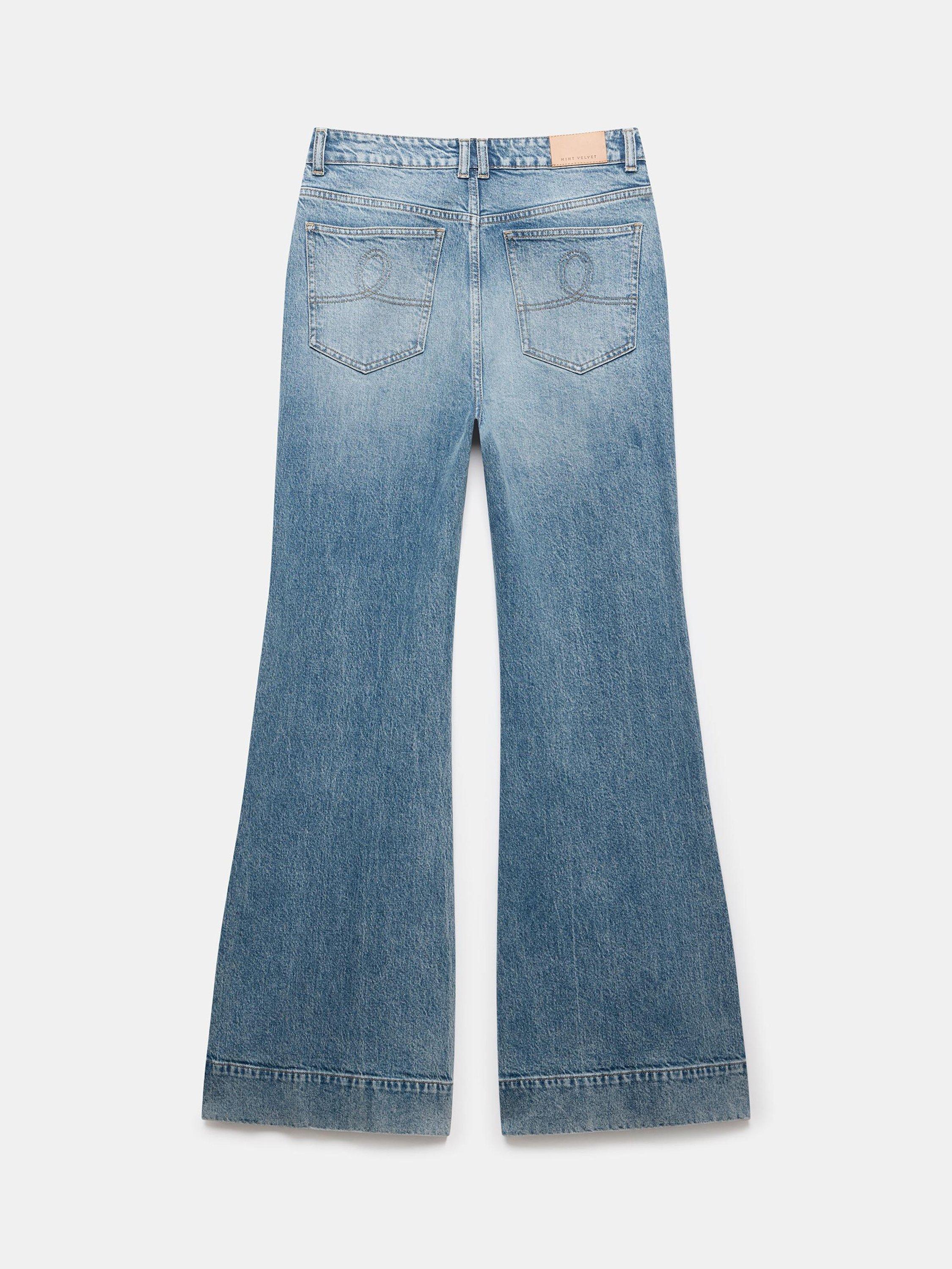 A pair of 70s-style jeans designed with a contoured waist and wide, bell-shaped hems from Mint Velvet. Sculpted from denim with a comfortable mid rise, they fall to a regular length.