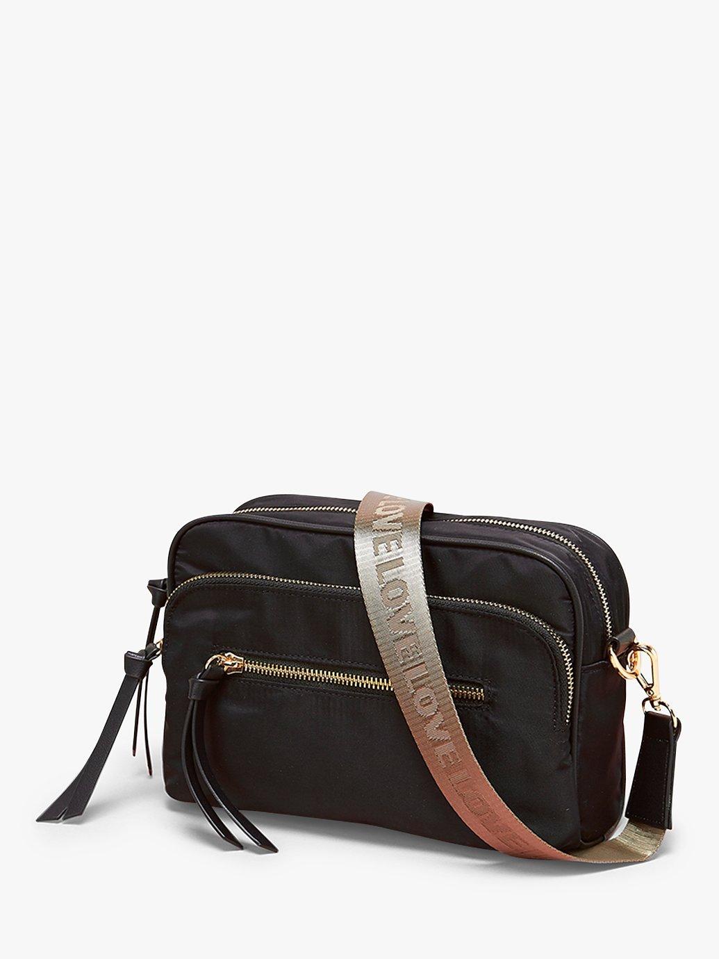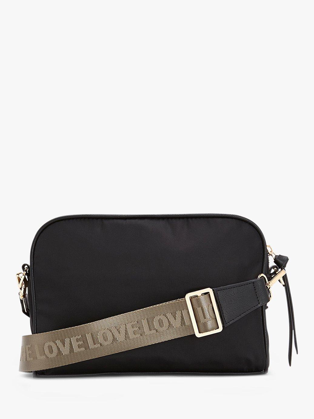 Crafted from a light yet durable fabric and with a 'Love' motif detachable strap to wear your way, it's fitted with an adjustable, khaki cross-body strap, ready for exploring the city and has a zip fastening and multiple exterior zip pockets.