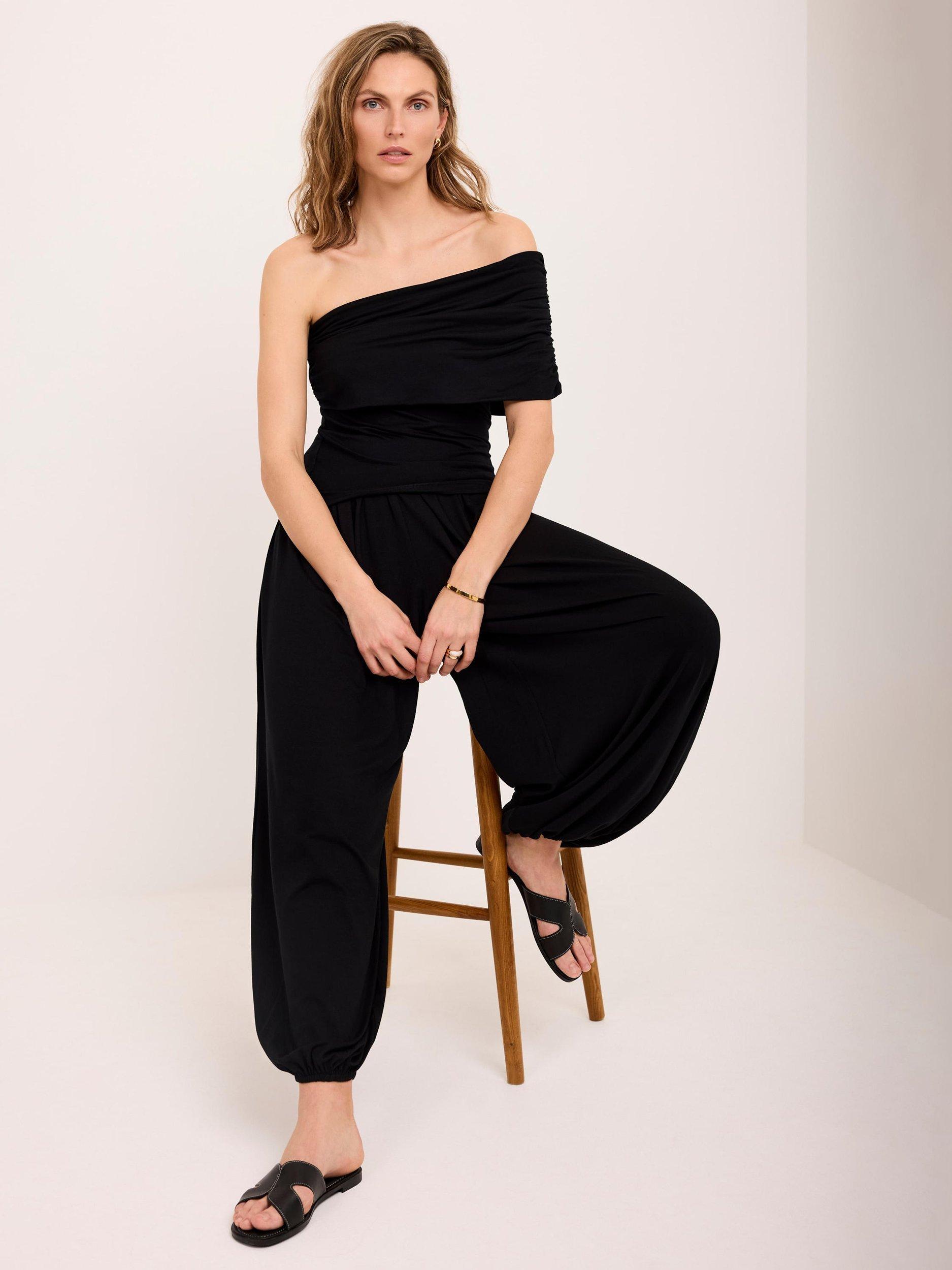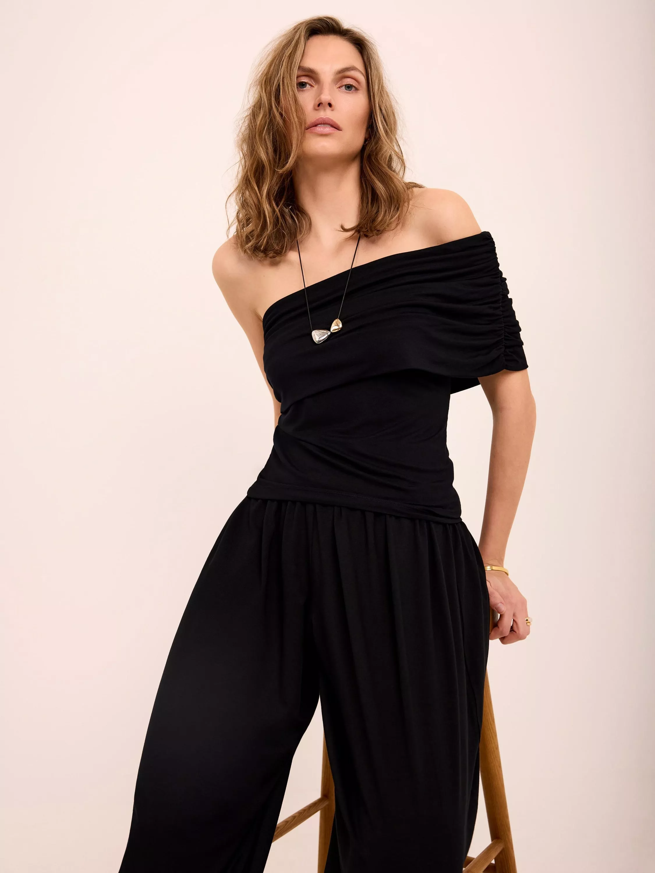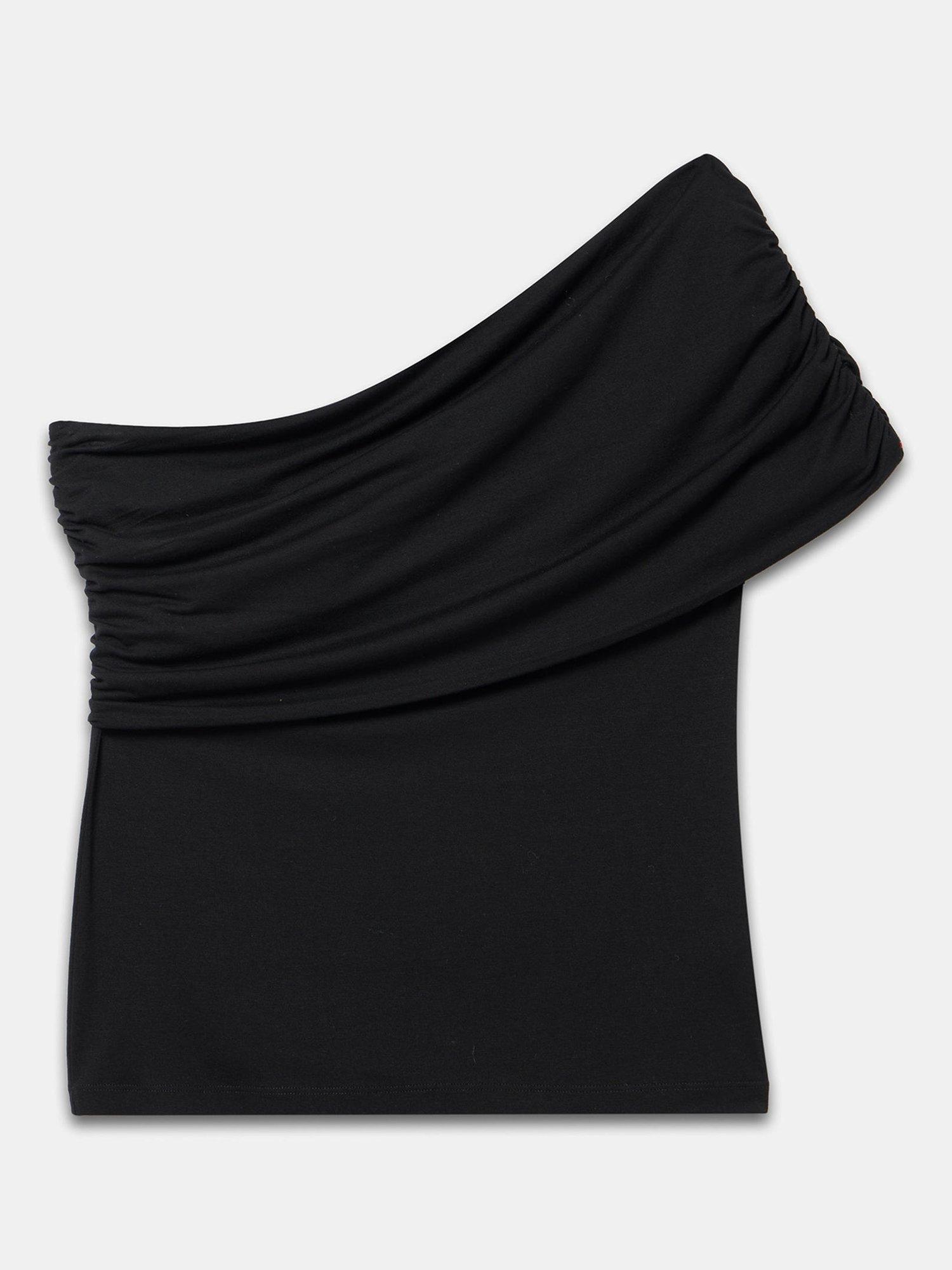 A lightweight top featuring a ruched, one-shoulder neckline.
