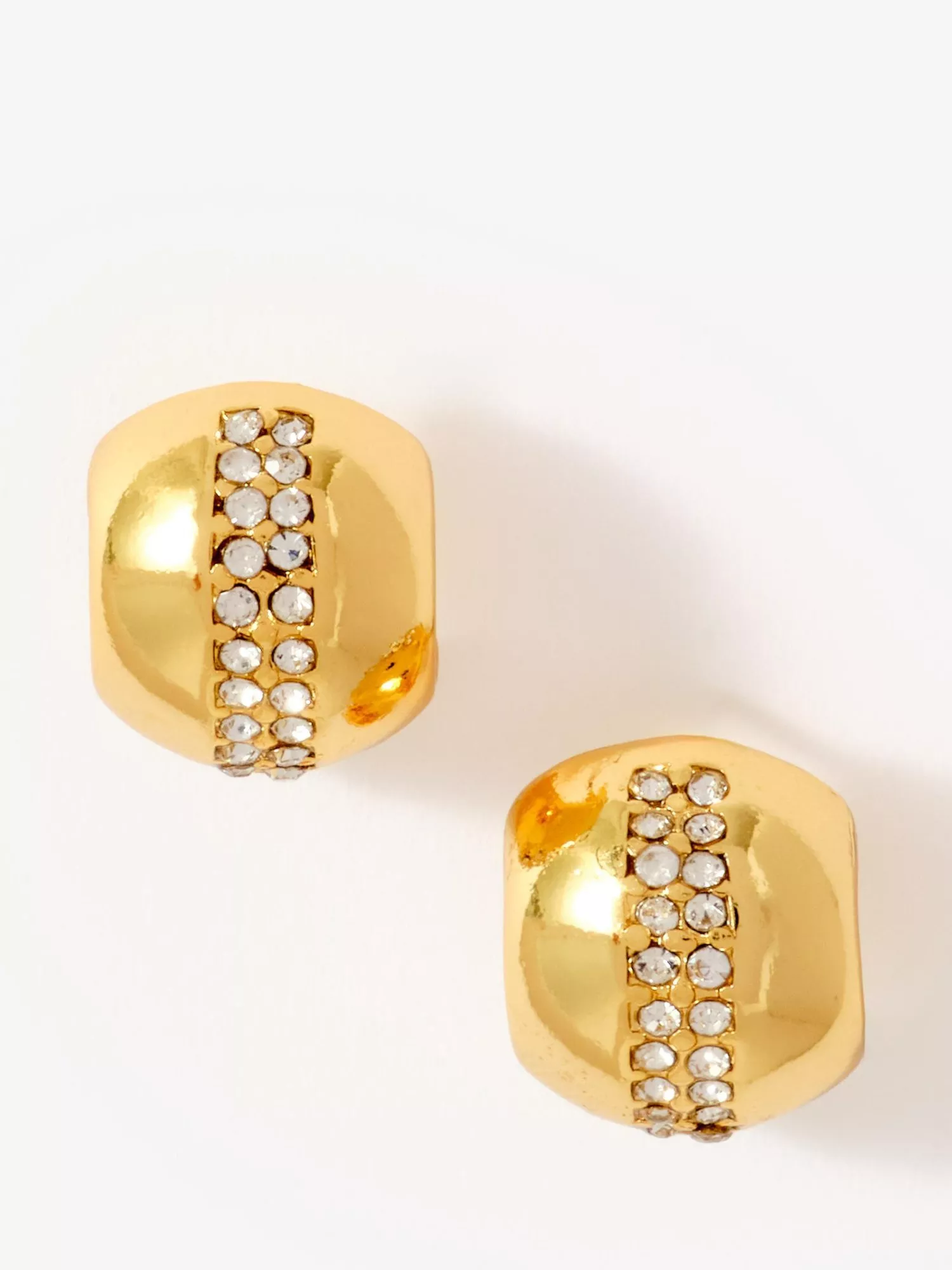 Plated earrings by Mint Velvet, featuring a pave centred dome detailing. With post fittings, they are for pierced ears only.