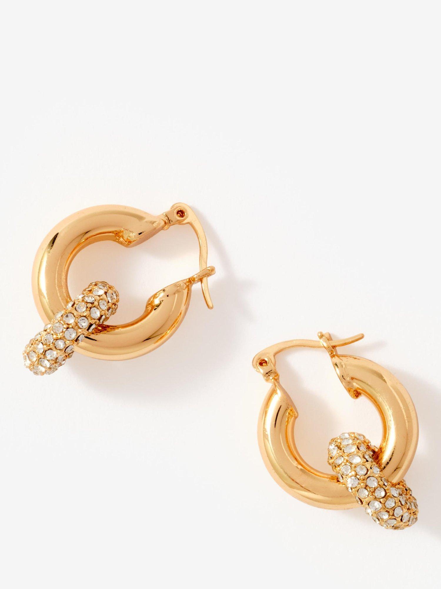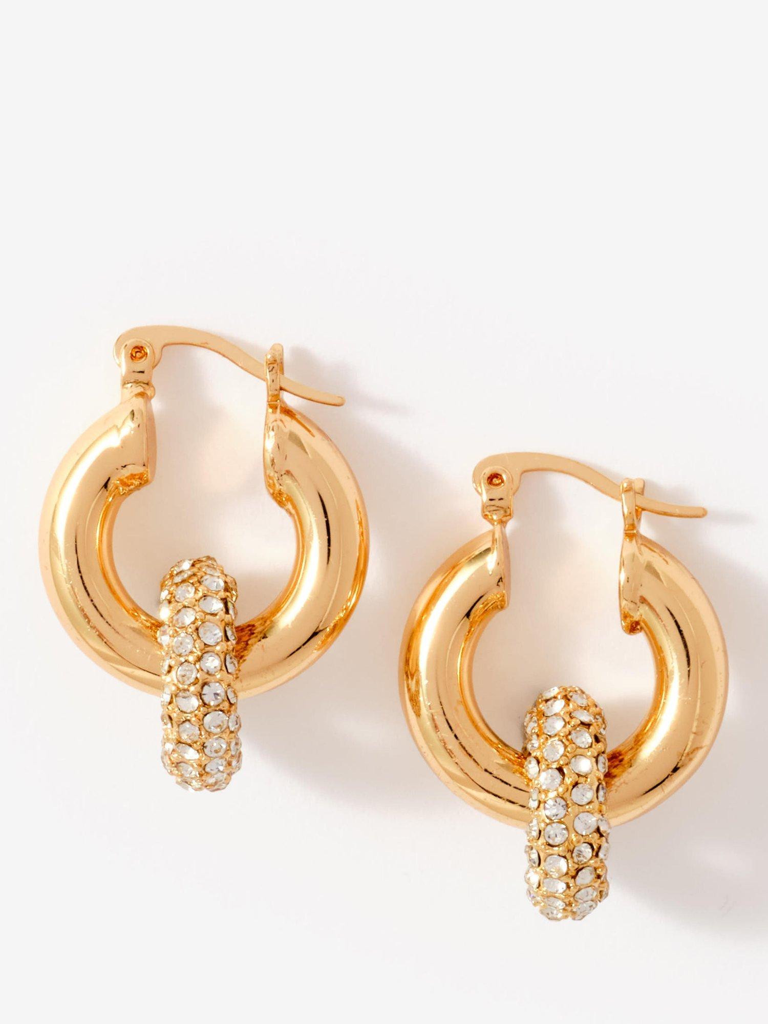 Beautifully designed by Mint Velvet, a pair of drop hoop earrings with pave detailing. Suitable for pierced ears only.