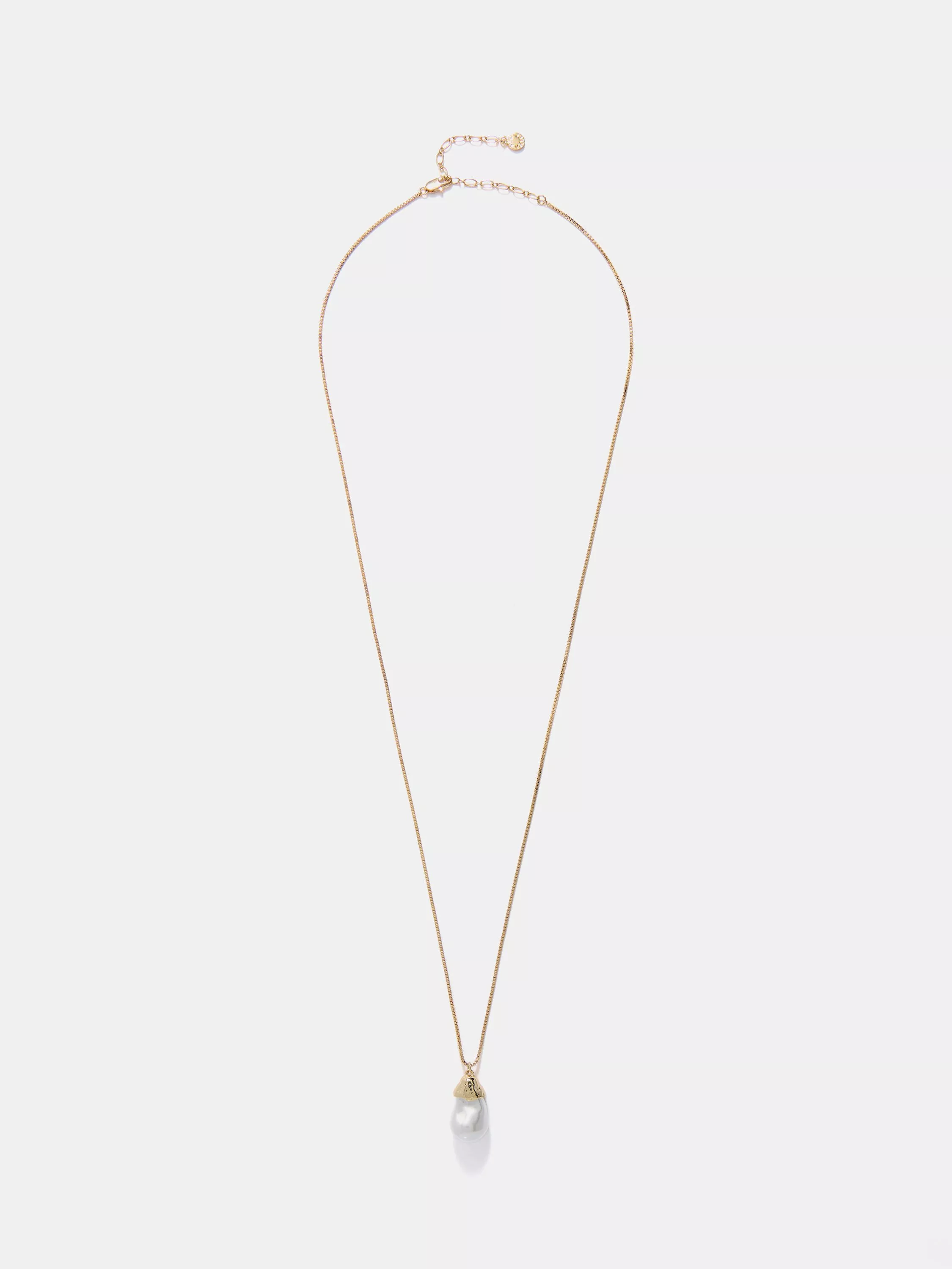 The perfect finishing touch, this gold-tone necklace from Mint Velvet showcases a faux-pearl pendant and secures with a hinged clasp.