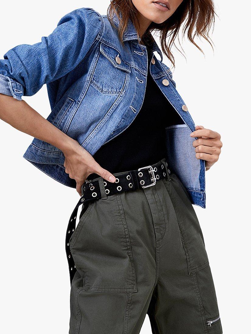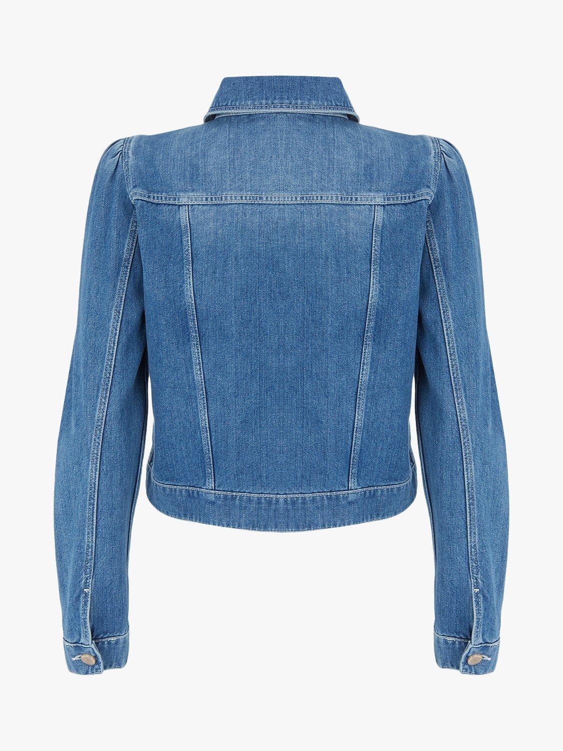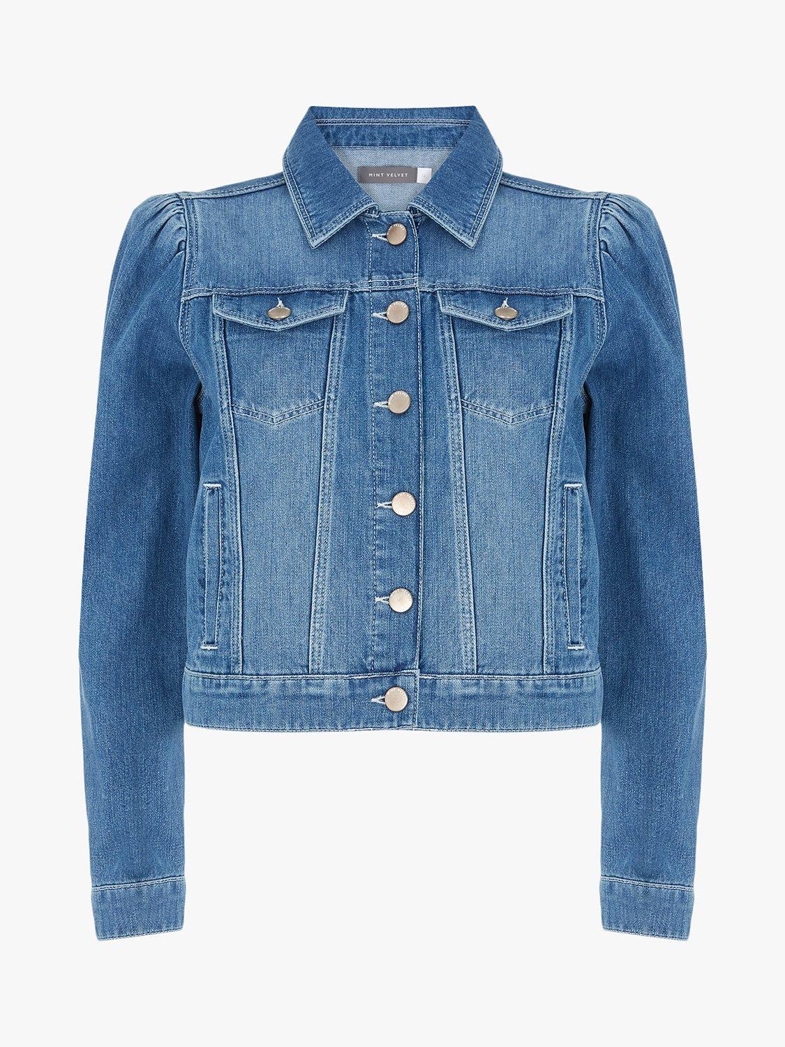 Cut from stretch-cotton denim, this jacket is designed in Mint Velvet's signature Western silhouette with puffed shoulders for a nod to this season's trend for statement sleeves. Featuring artful panelling and pockets with polished buttons, slip yours over simple tees and fluid dresses.
