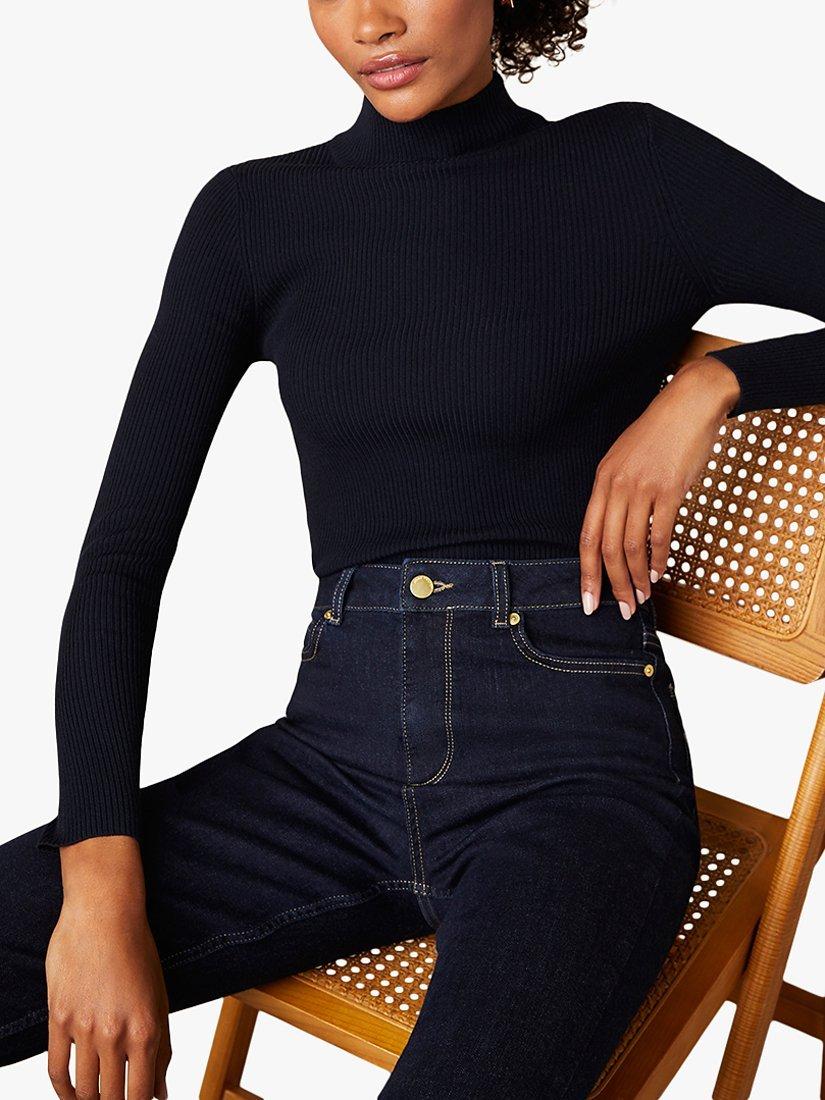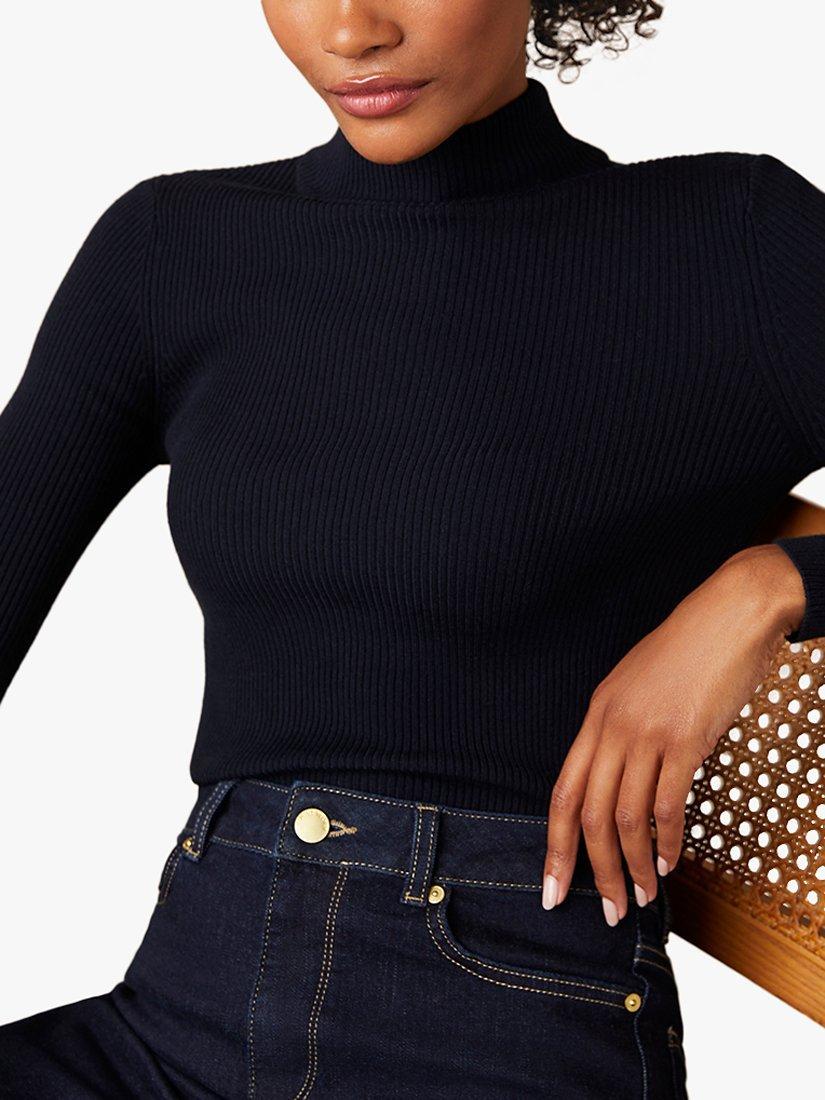 Elongating the figure with a high neckline, this jumper from Mint Velvet is made from a light and breathable cotton-blend.