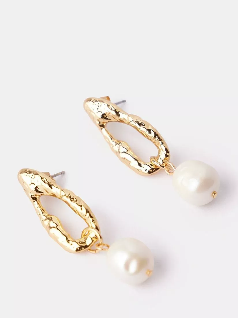 Dreamt up by Mint Velvet, these ribbed earrings fall into a simple yet elegant pearl drop. With post fittings, they are for pierced ears only.