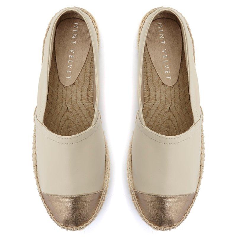 The perfect alternative to sandals, these Riley espadrilles from Mint Velvet are ideal for the warmer months. Boasting a slip on design with a classic contrasting raffia sole and metallic front for an eye catching finish.