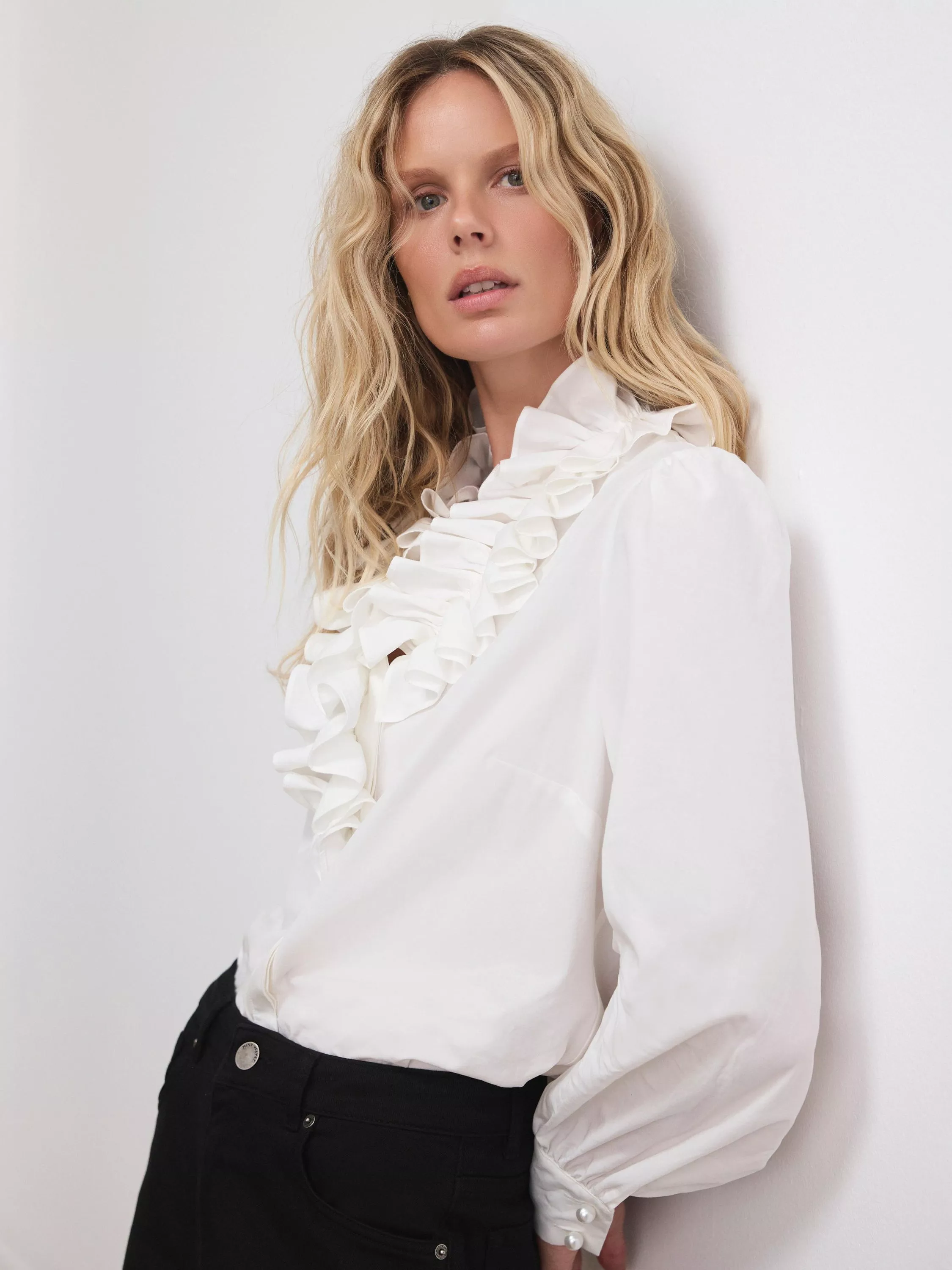 Bringing a neat addition to your wardrobe, this blouse from Mint Velvet allows for endless styling opportunities. Classic in cut with a v-neckline and long sleeves, it is made from a comfortable cotton-rich fabric and will slot seamlessly into your everyday staples.