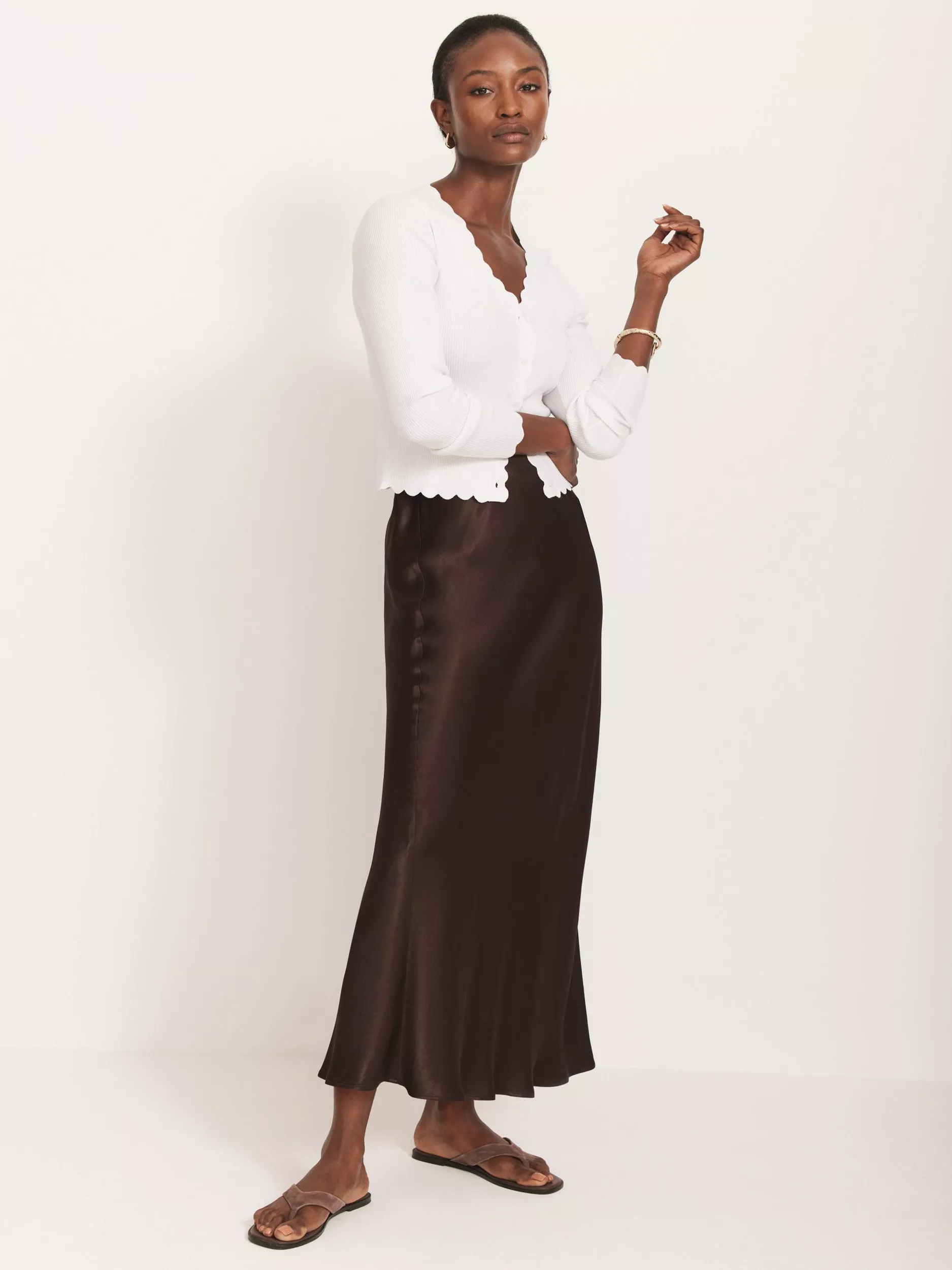 Cut to an A-line silhouette, this calf-grazing skirt from Mint Velvet features an elasticated waistband and bias cut hemline.