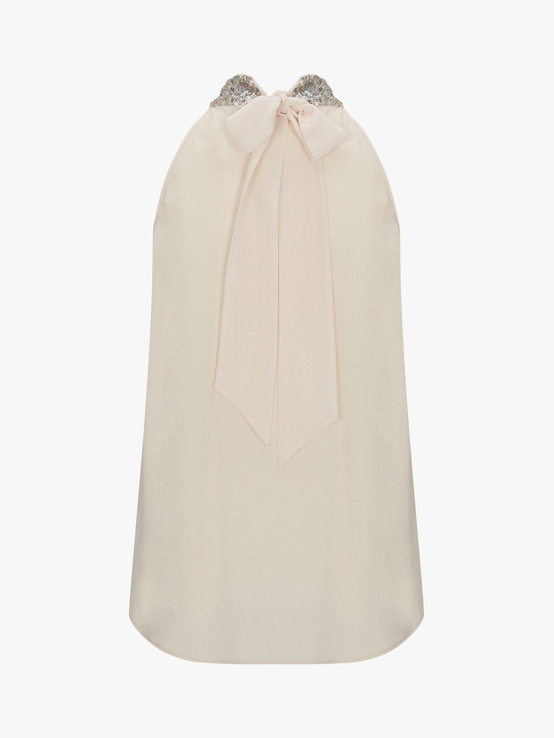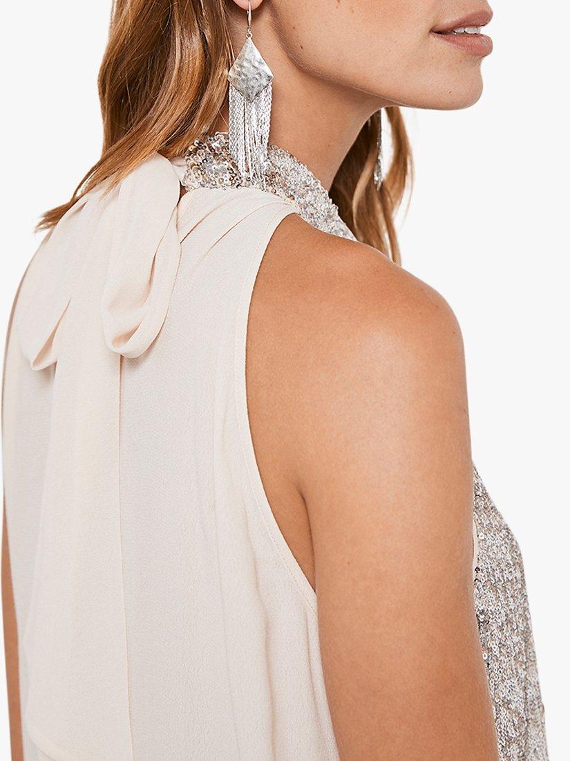 Framed by a high halter neck for an elongated profile, this top from Mint Velvet flows out to a floaty fit for a fluid silhouette. Embellished with sequins throughout for a sparkly texture that is sure to elevate your eveningwear ensemble, pair with black skinny jeans, stiletto heels and a bold lipstick for a striking look worthy of special celebrations and evening events.