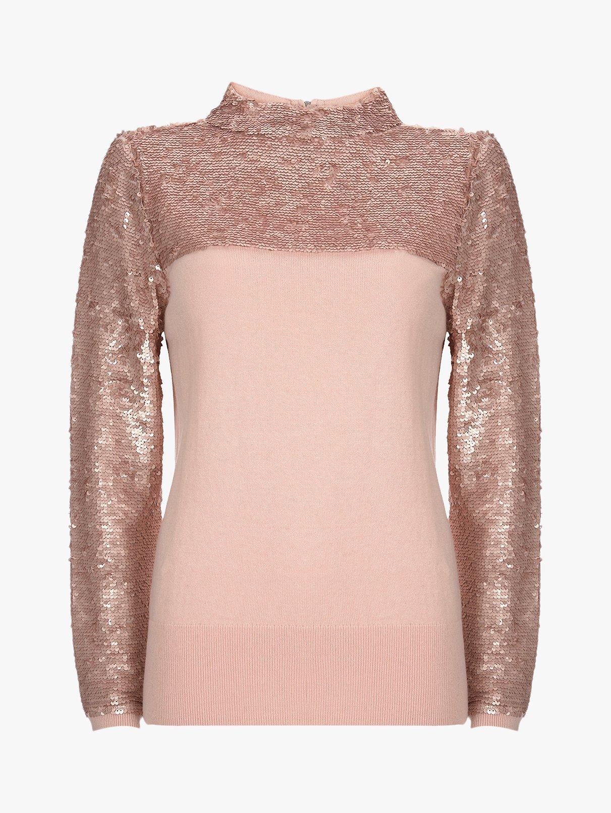 Imbued with a hint of cashmere for added softness, this slim-fitting jumper features sequined embroidery on the yoke and sleeves.