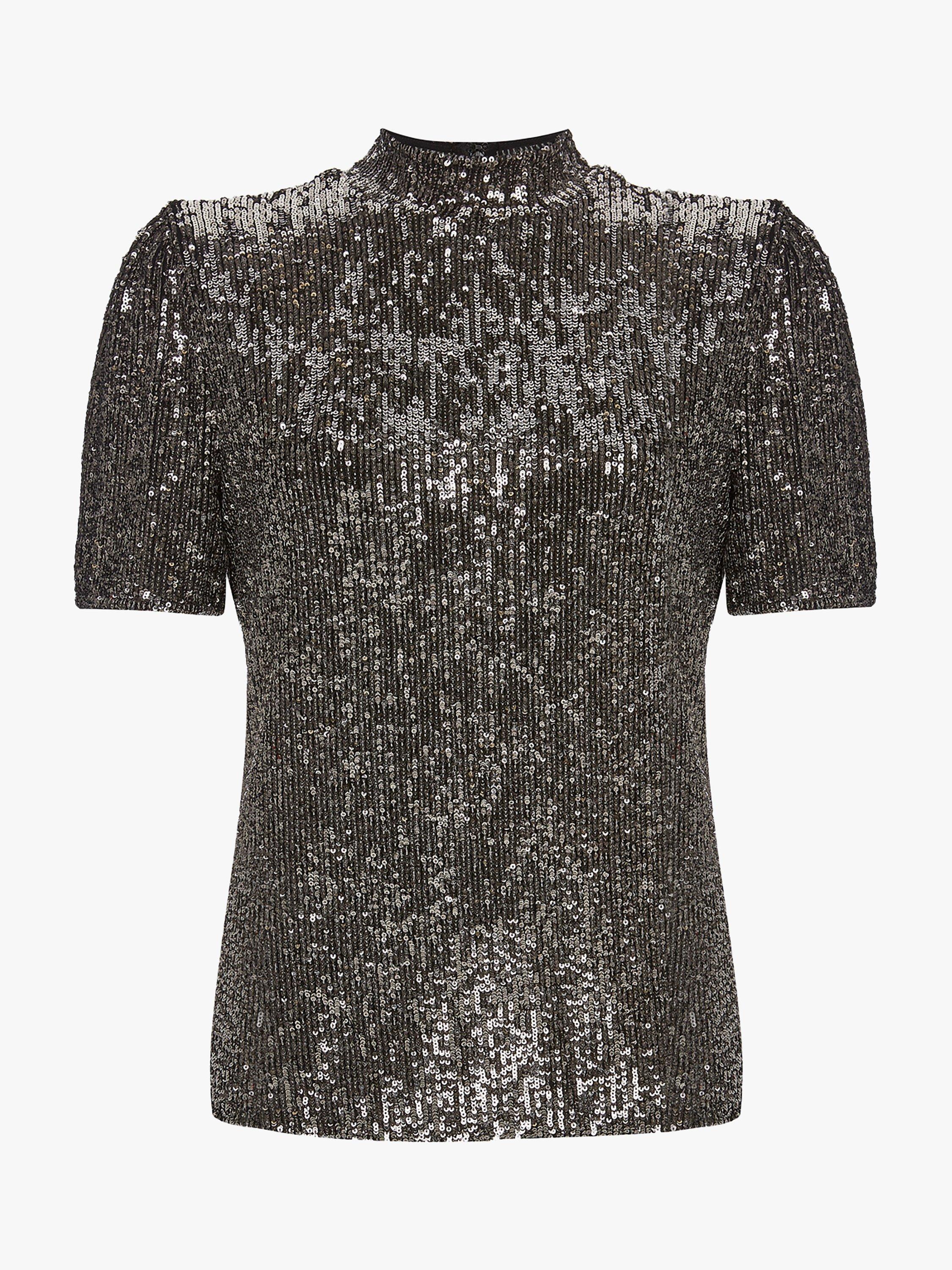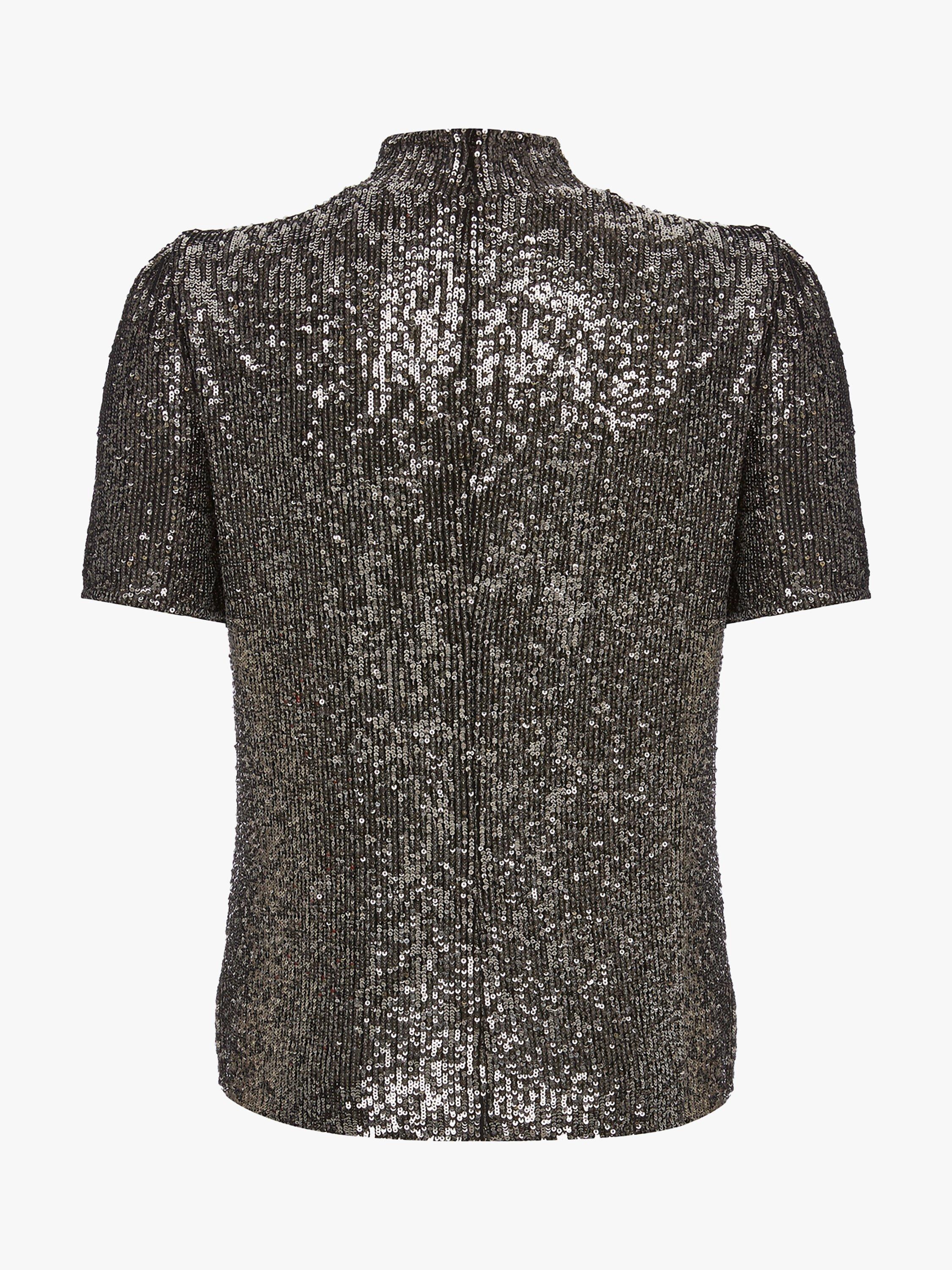 Made from stretch-mesh fabric embellished with gunmetal sequins, it's cut to a slim silhouette with a high neckline and slightly puffed shoulders.