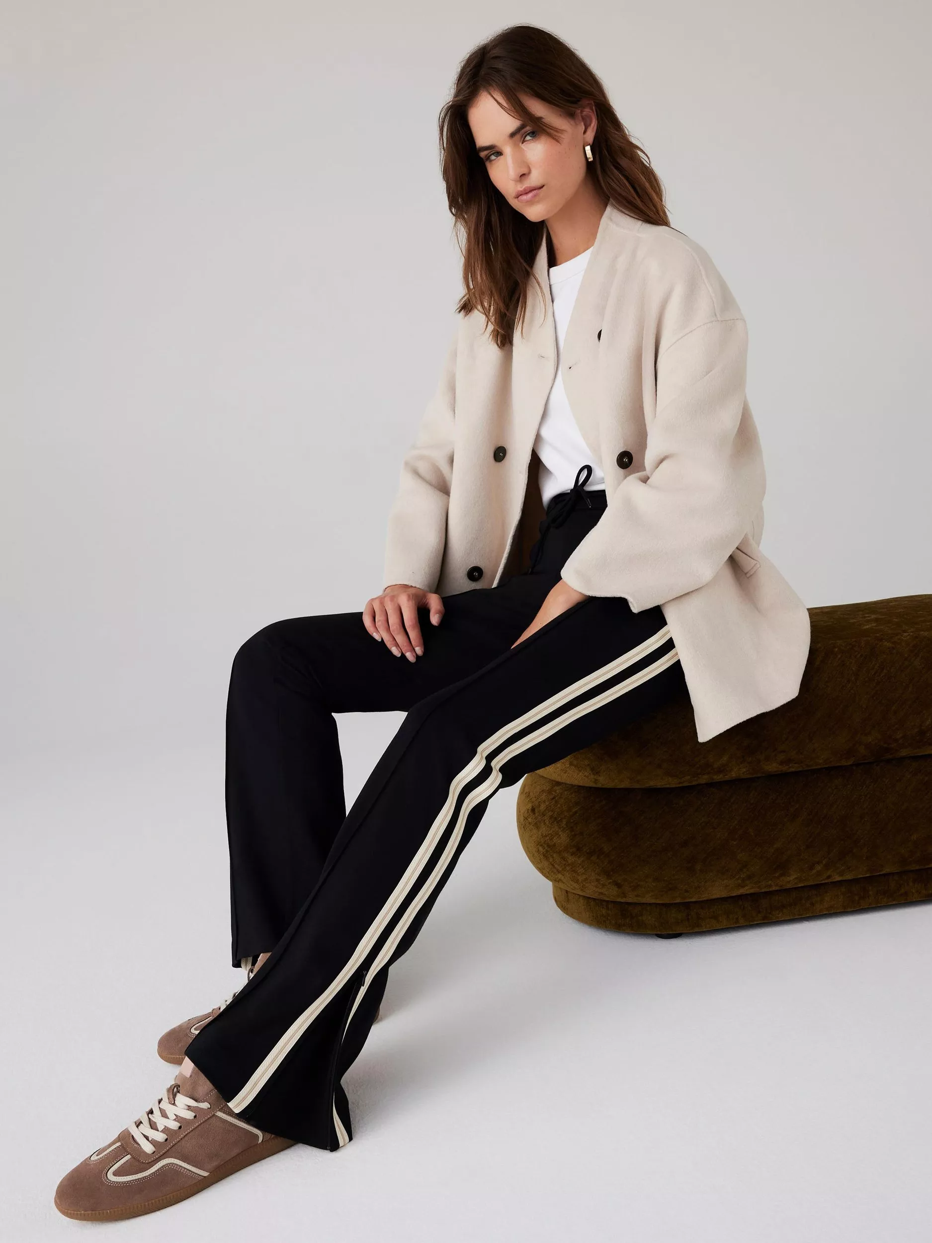 Striped flared leg joggers by Mint Velvet. They are designed to sit mid rise with regular length hems.