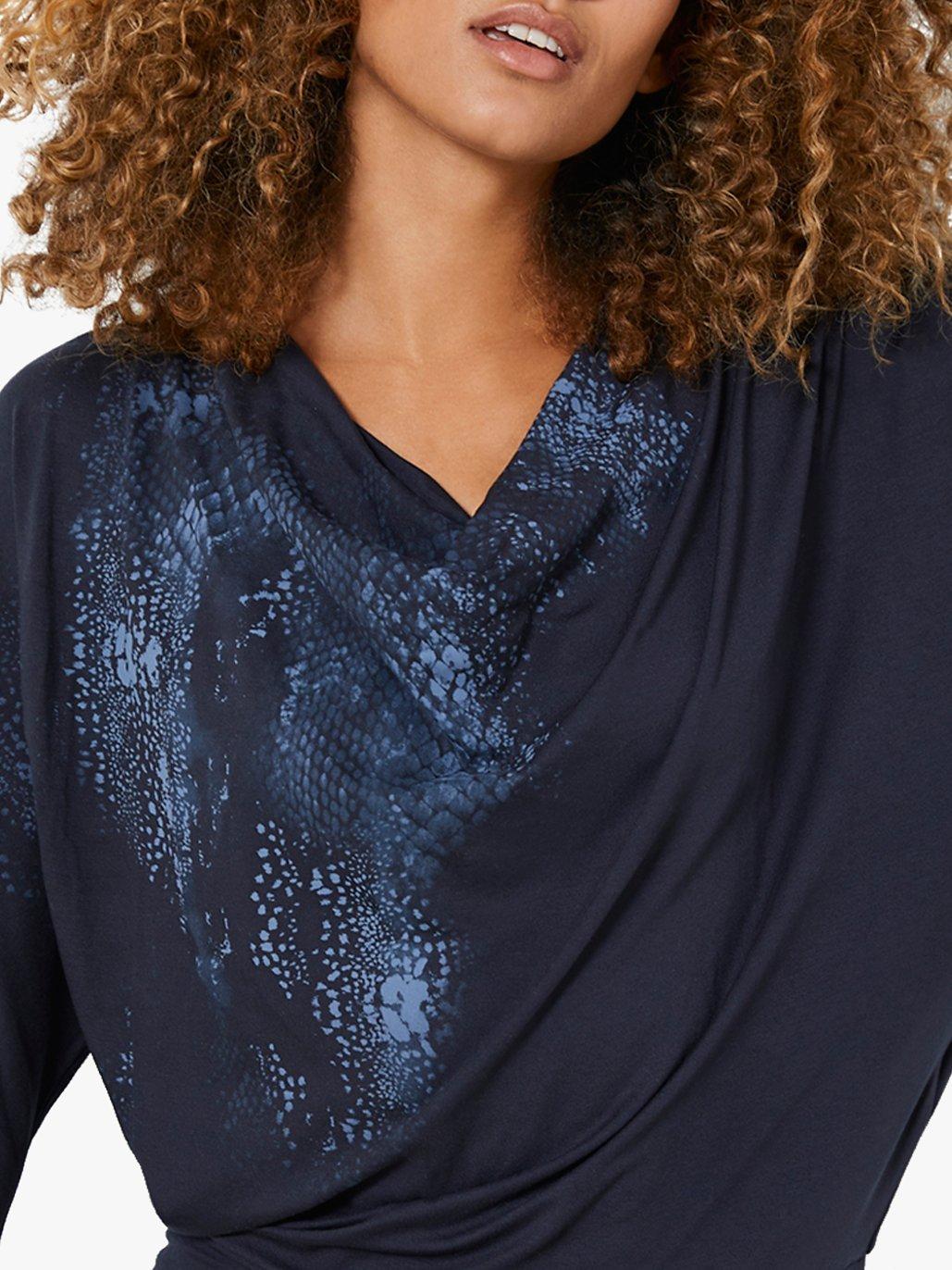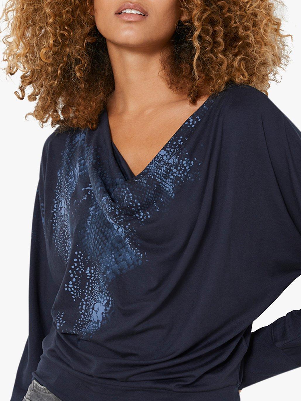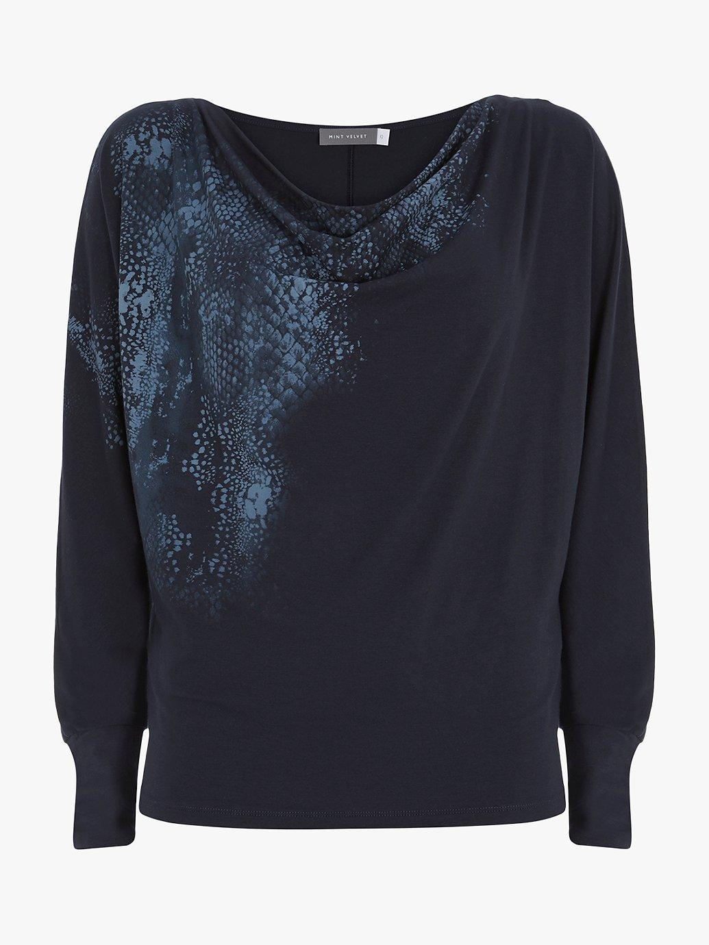 Cut from Mint Velvet's finest jersey, this feminine top is printed all over with a tonal snake pattern for contemporary appeal. Designed in a relaxed batwing silhouette with a cowl neckline and long sleeves, pair yours with leather-look jeans and heeled boots.
