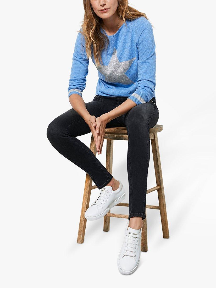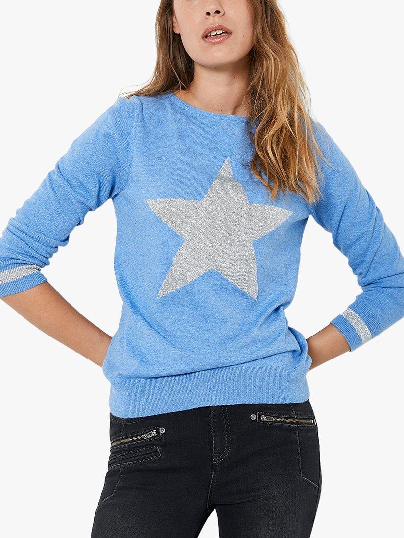 This jumper is spun with a touch of cashmere for softness. It's knitted in a relaxed silhouette and features a silver star on the front. The striped ribbed cuffs give it a sporty feel.