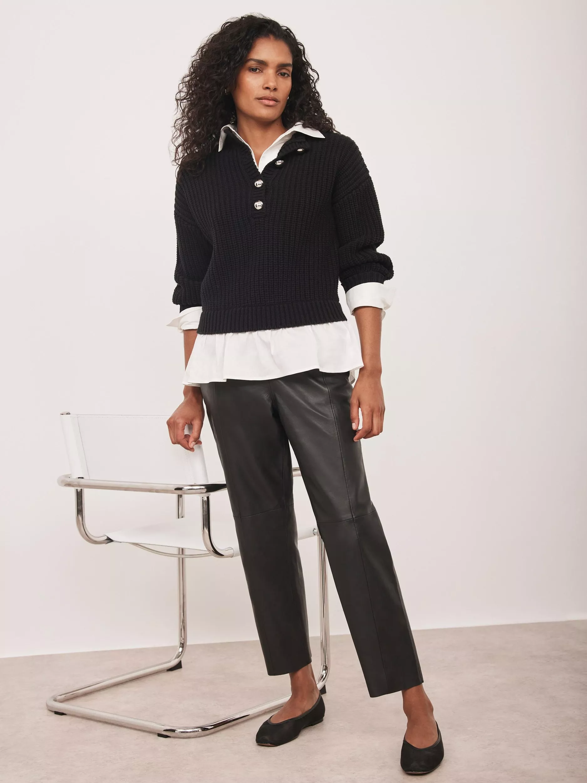 A knit jumper featuring a crew neckline, long sleeves and metallic-tone statement button fastenings through the front.