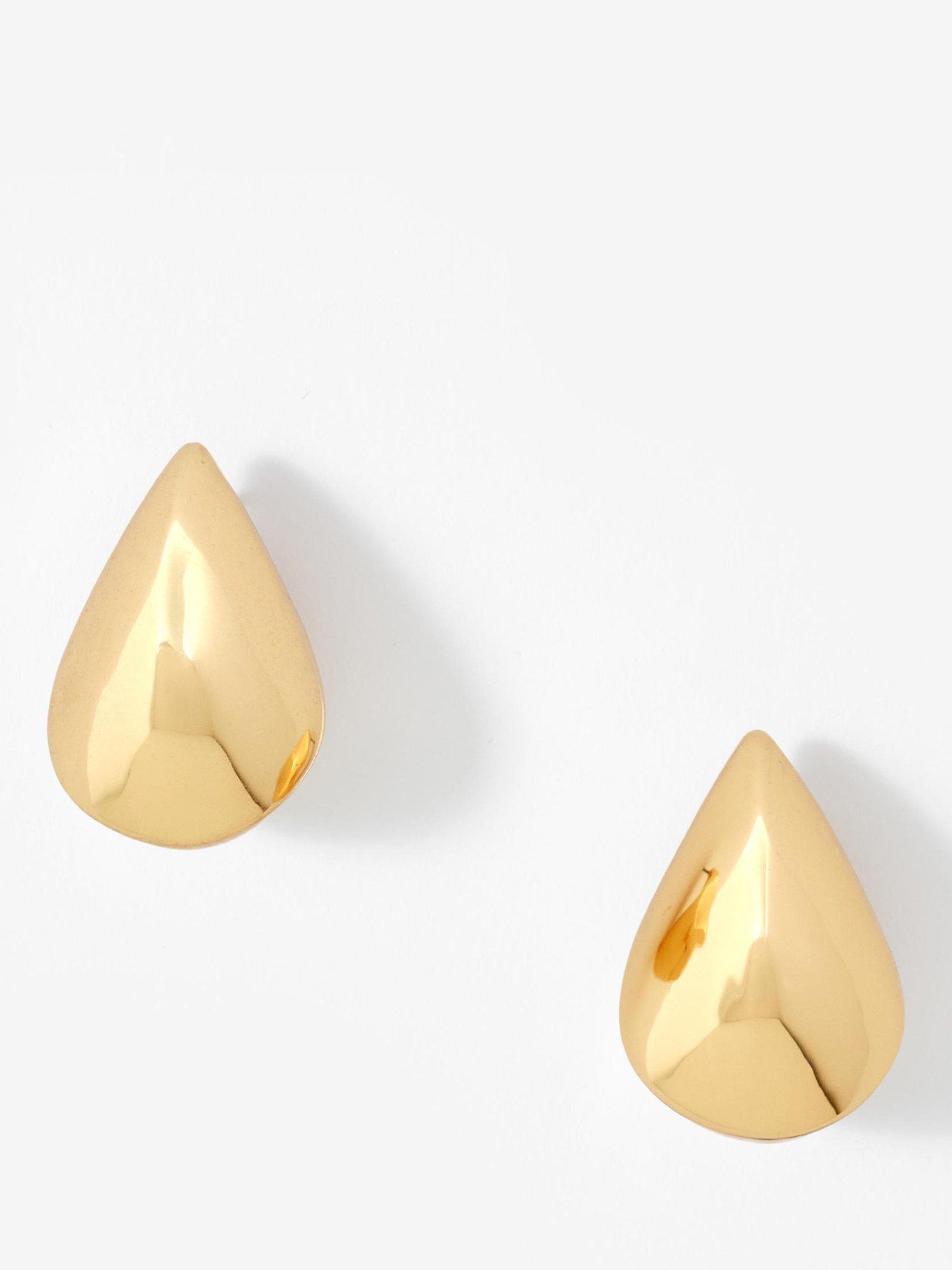 Gold-tone statement teardrop earrings featuring a butterfly clasp fastening. Suitable for pierced ears only.