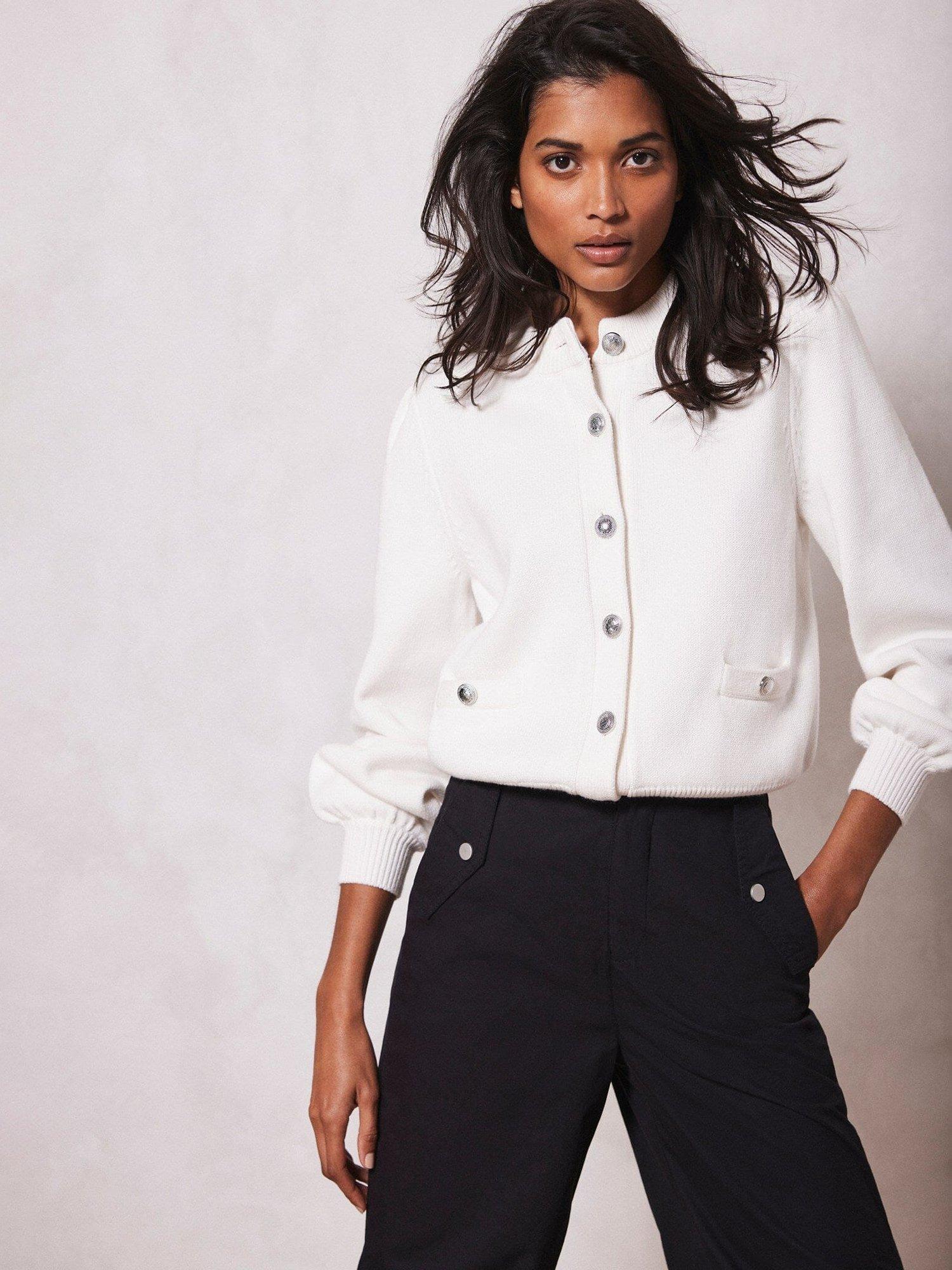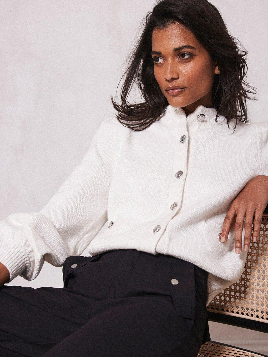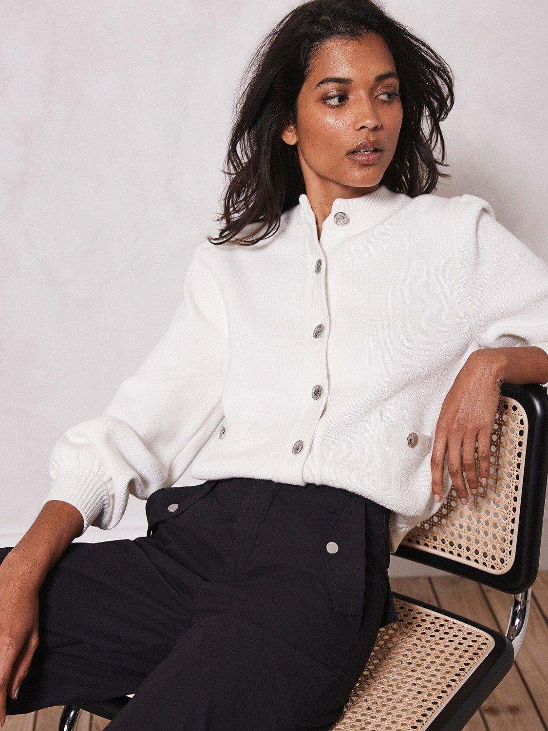 A handy layering piece for when the temperature cools, this lightweight cardigan by Mint Velvet is constructed from a super-soft cotton-blend with contrasting buttons and wide cuffs.