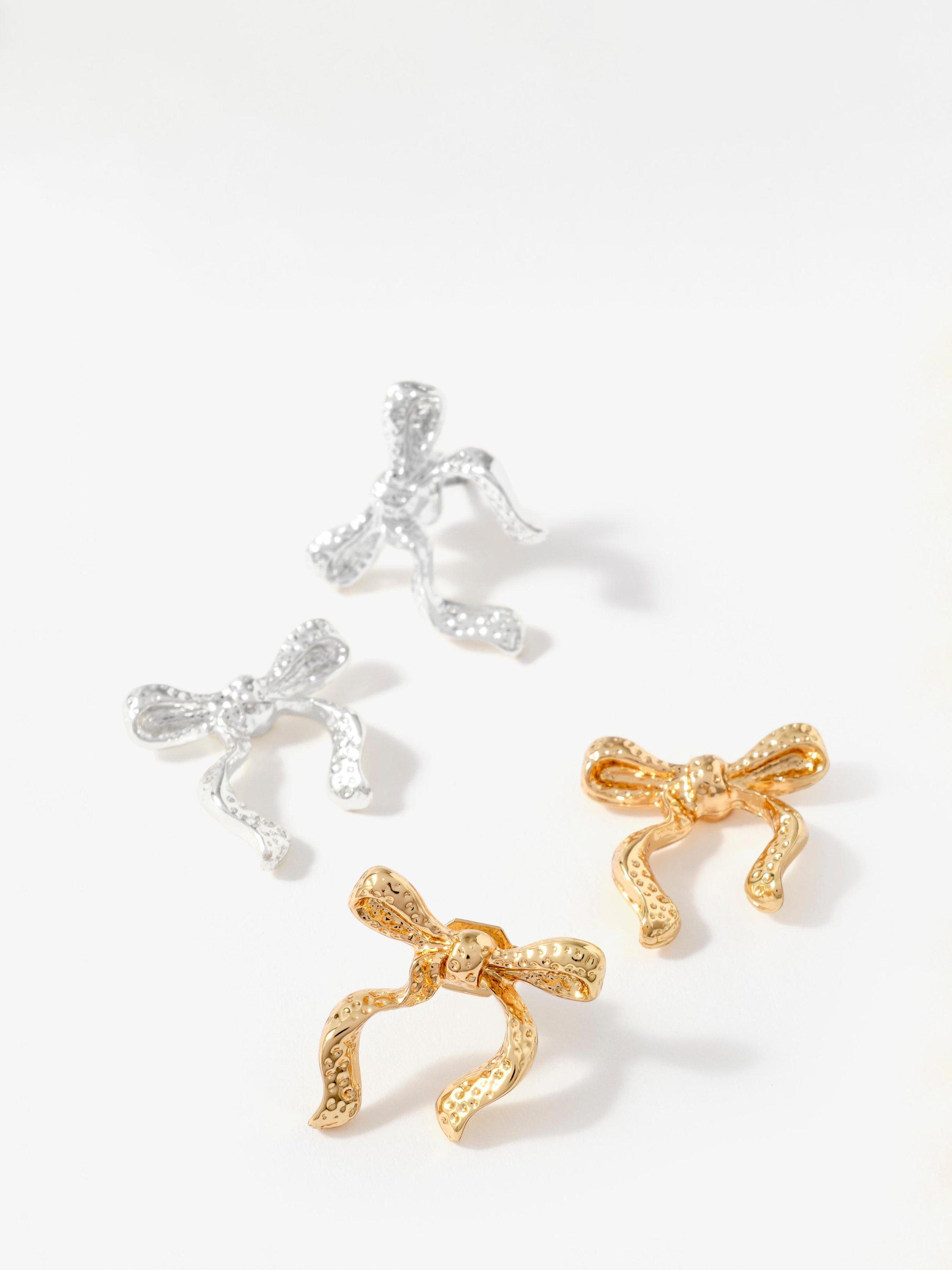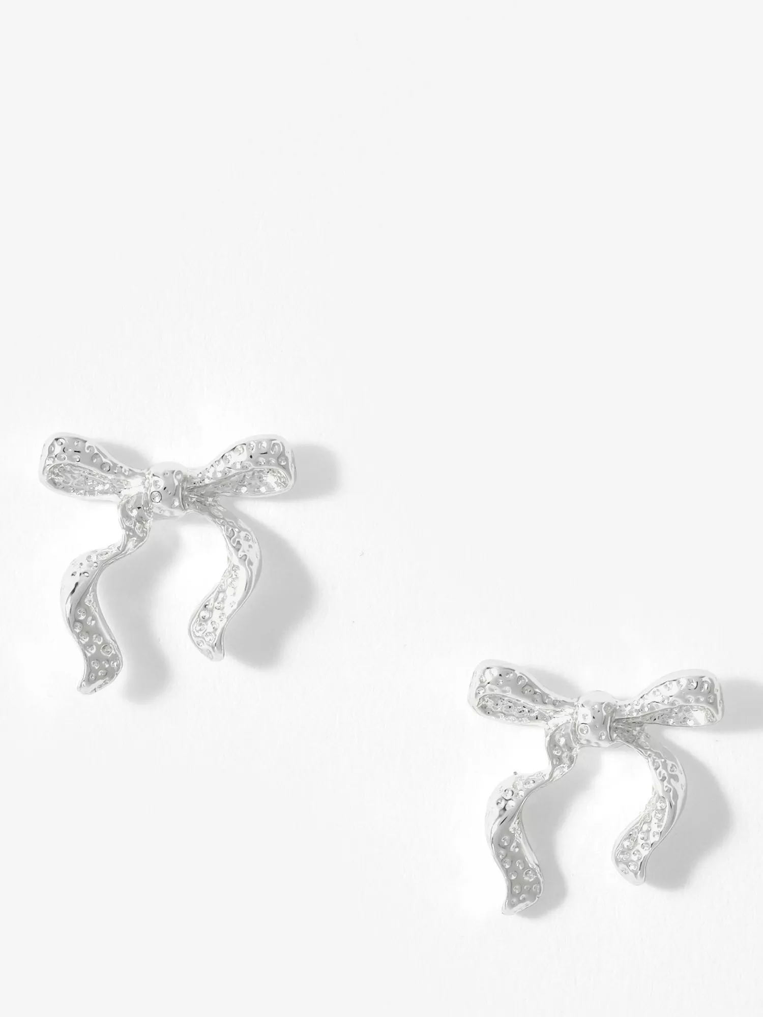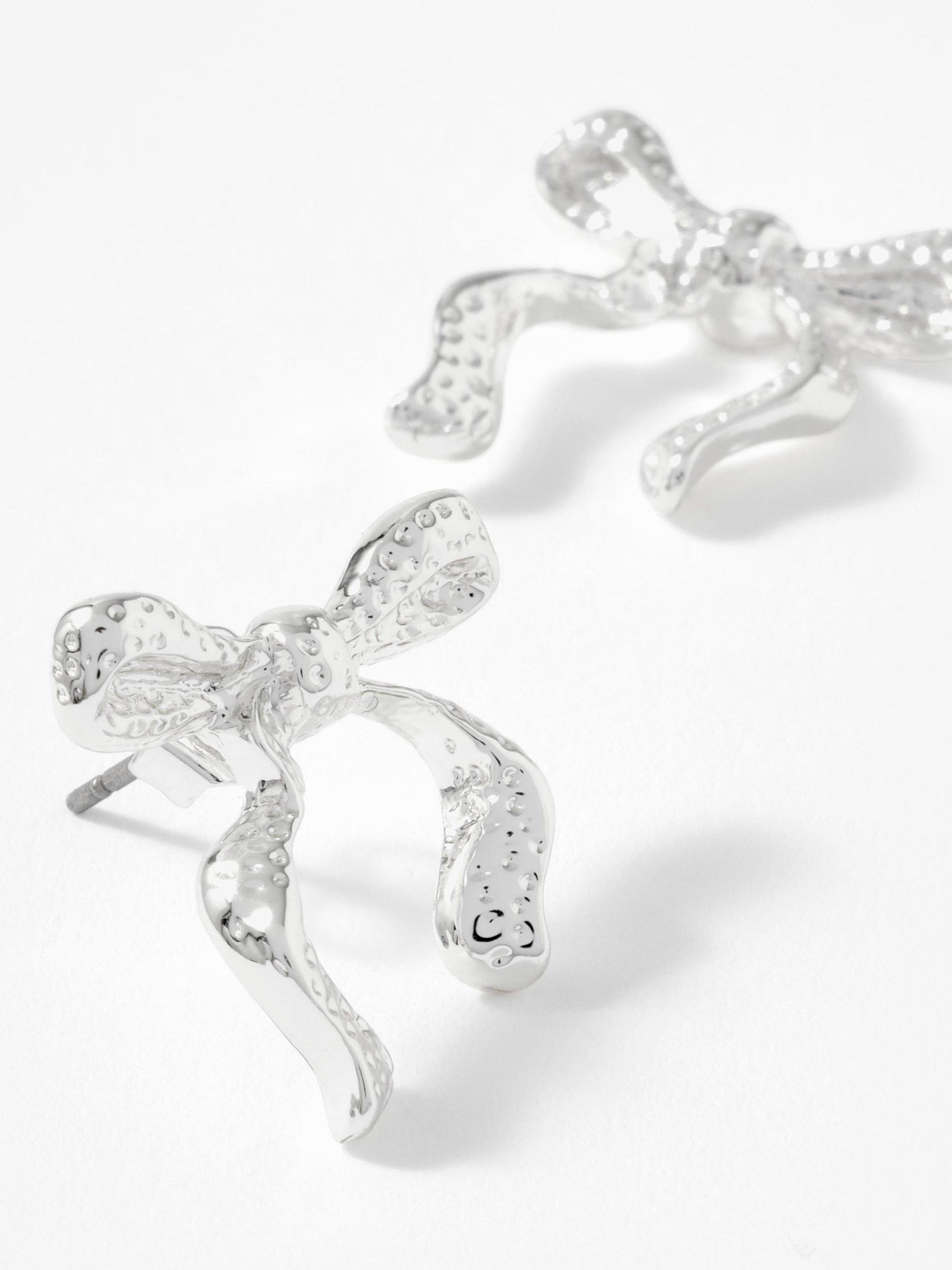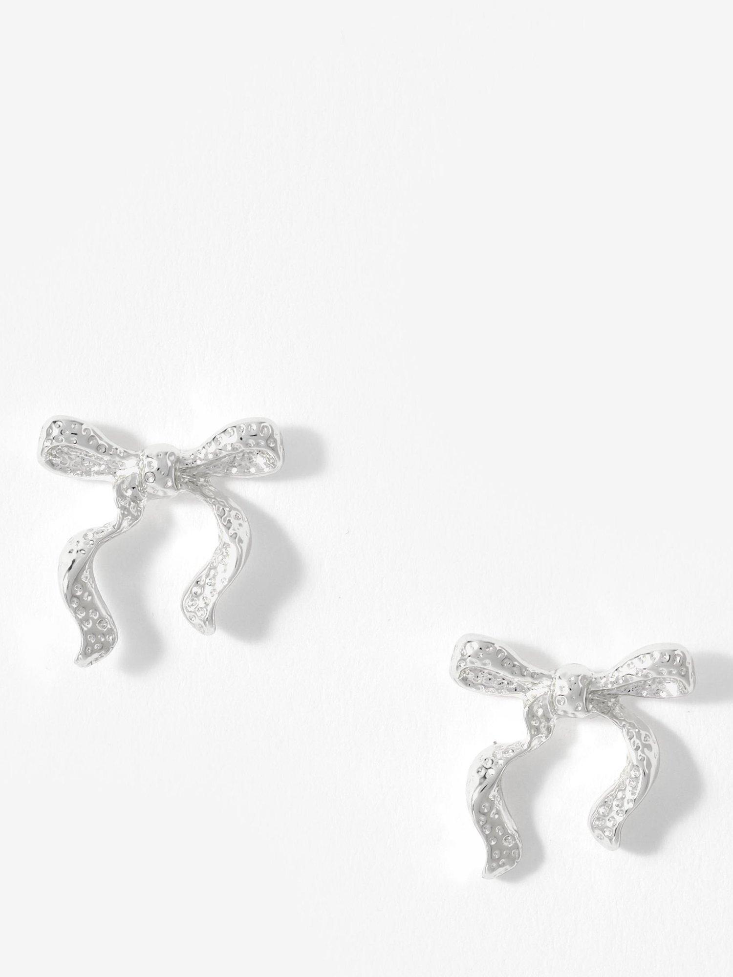 Silver-tone textured bow stud earrings, featuring a butterfly clasp fastening. Suitable for pierced ears only.