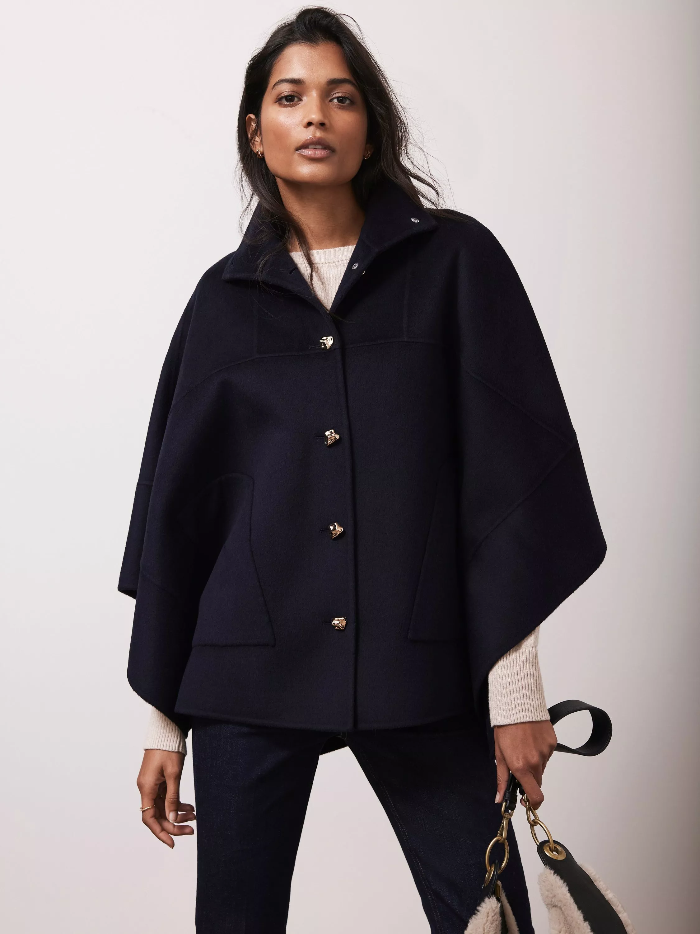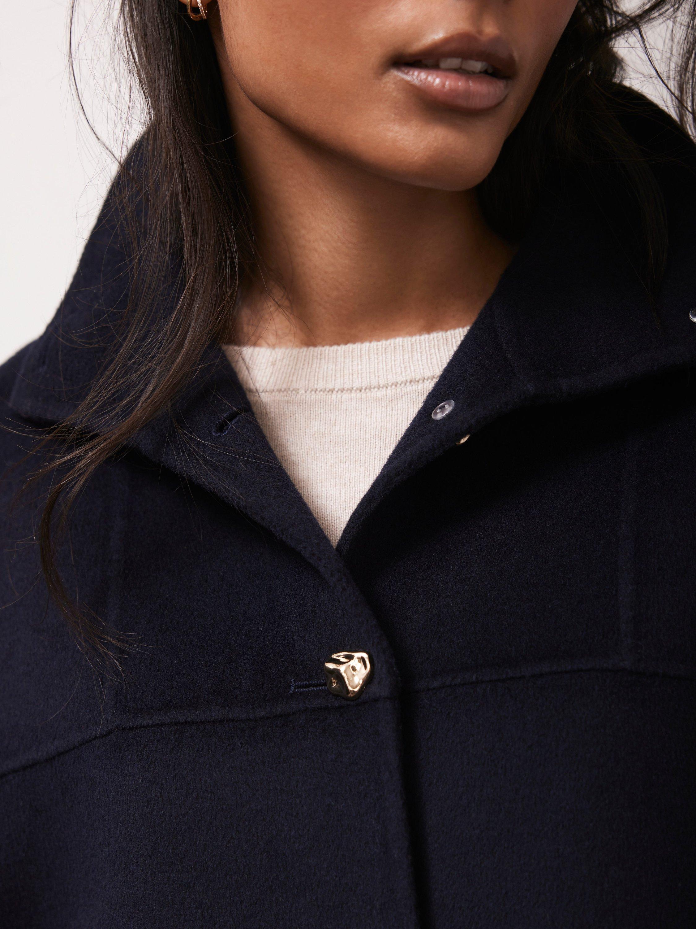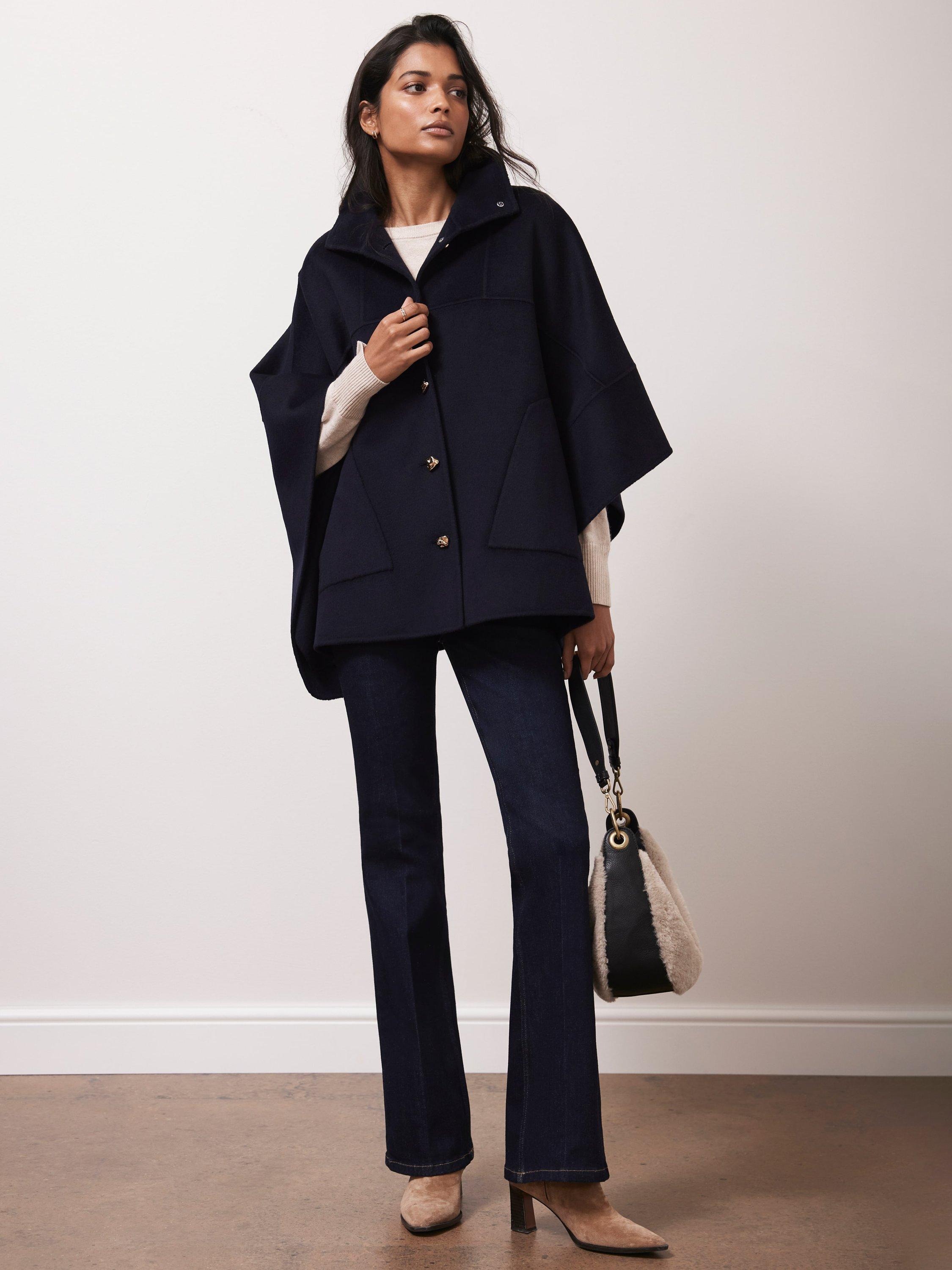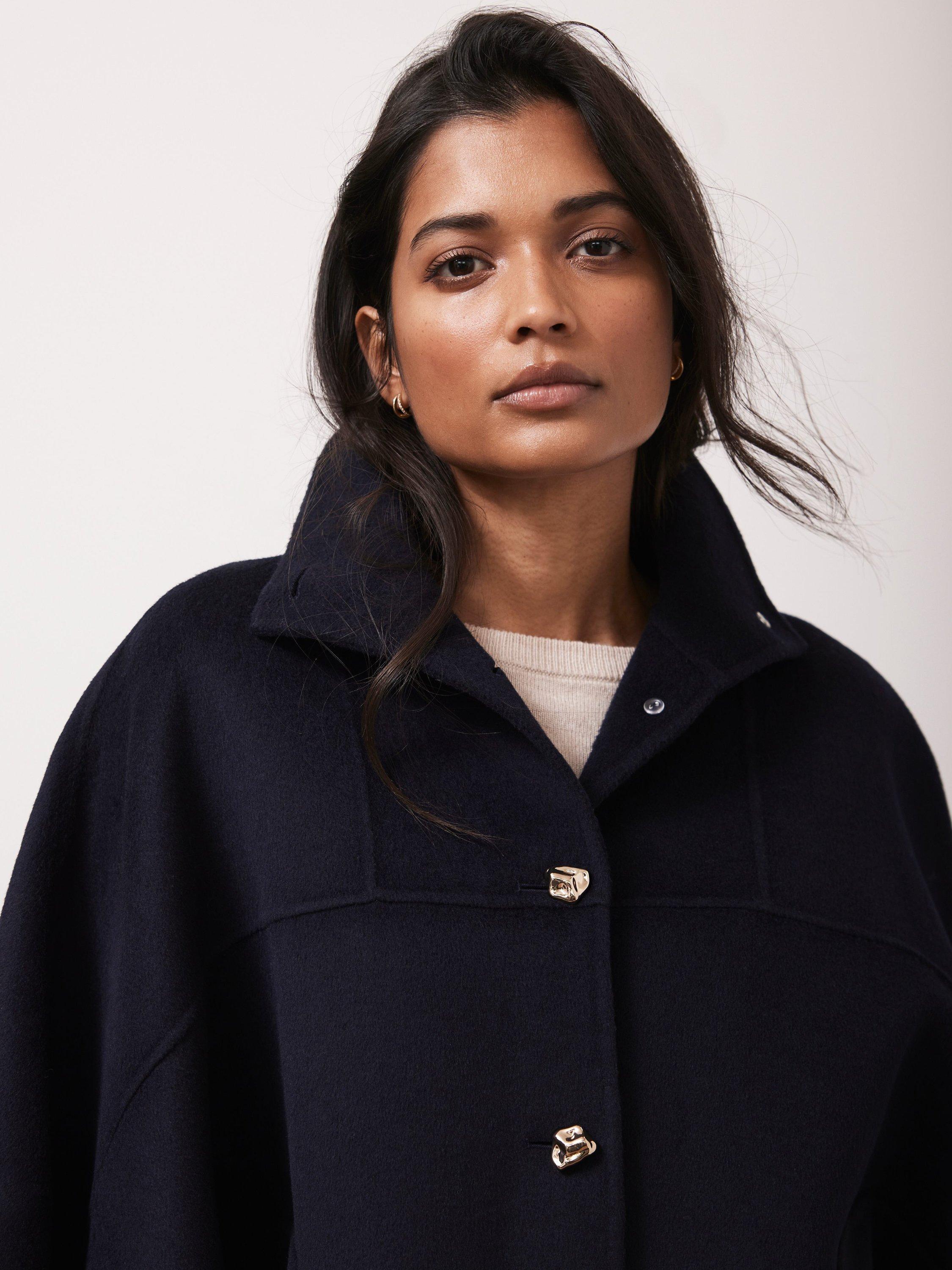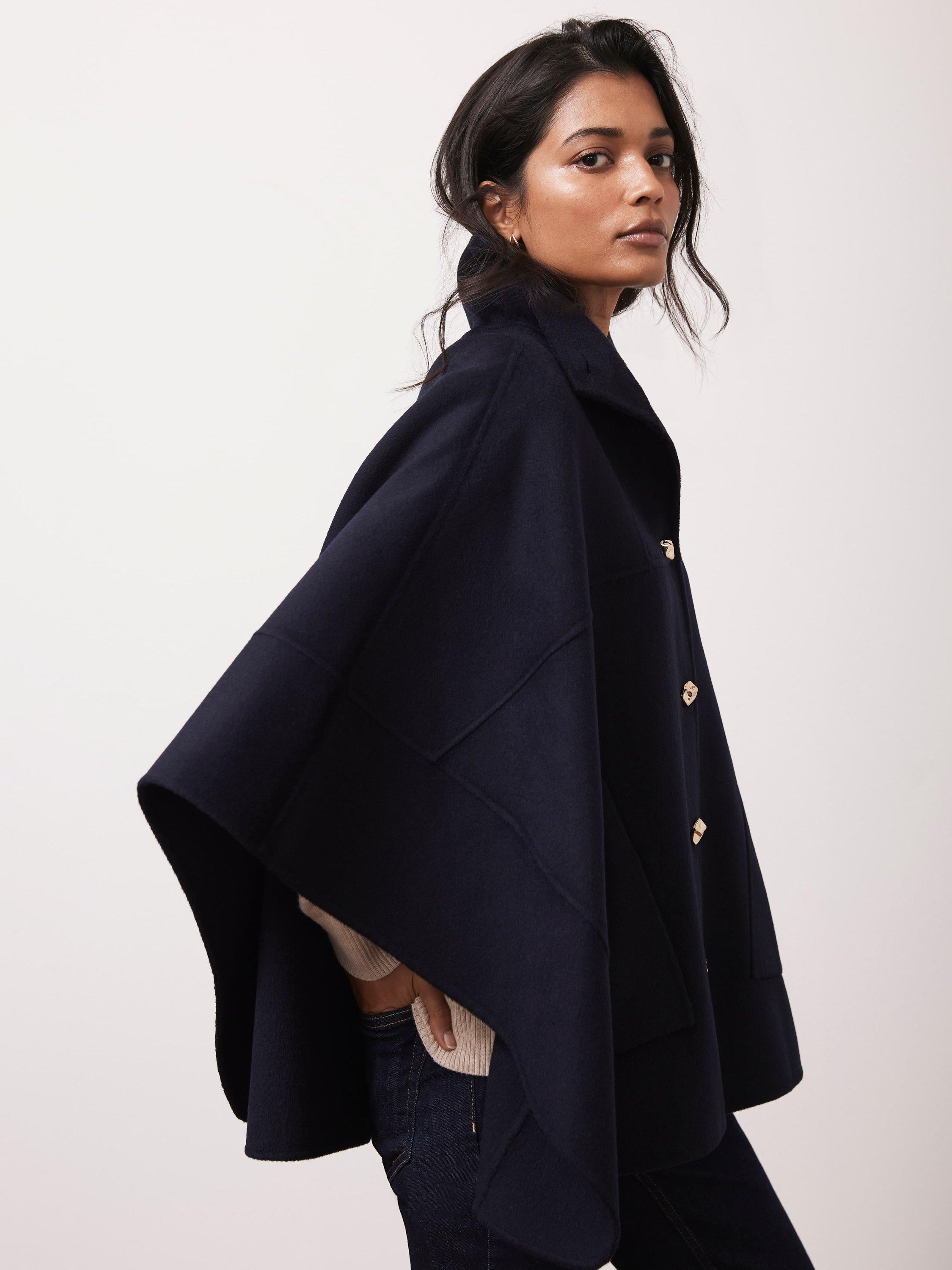 Mint VelvetWool Blend Cape Coat, Navy