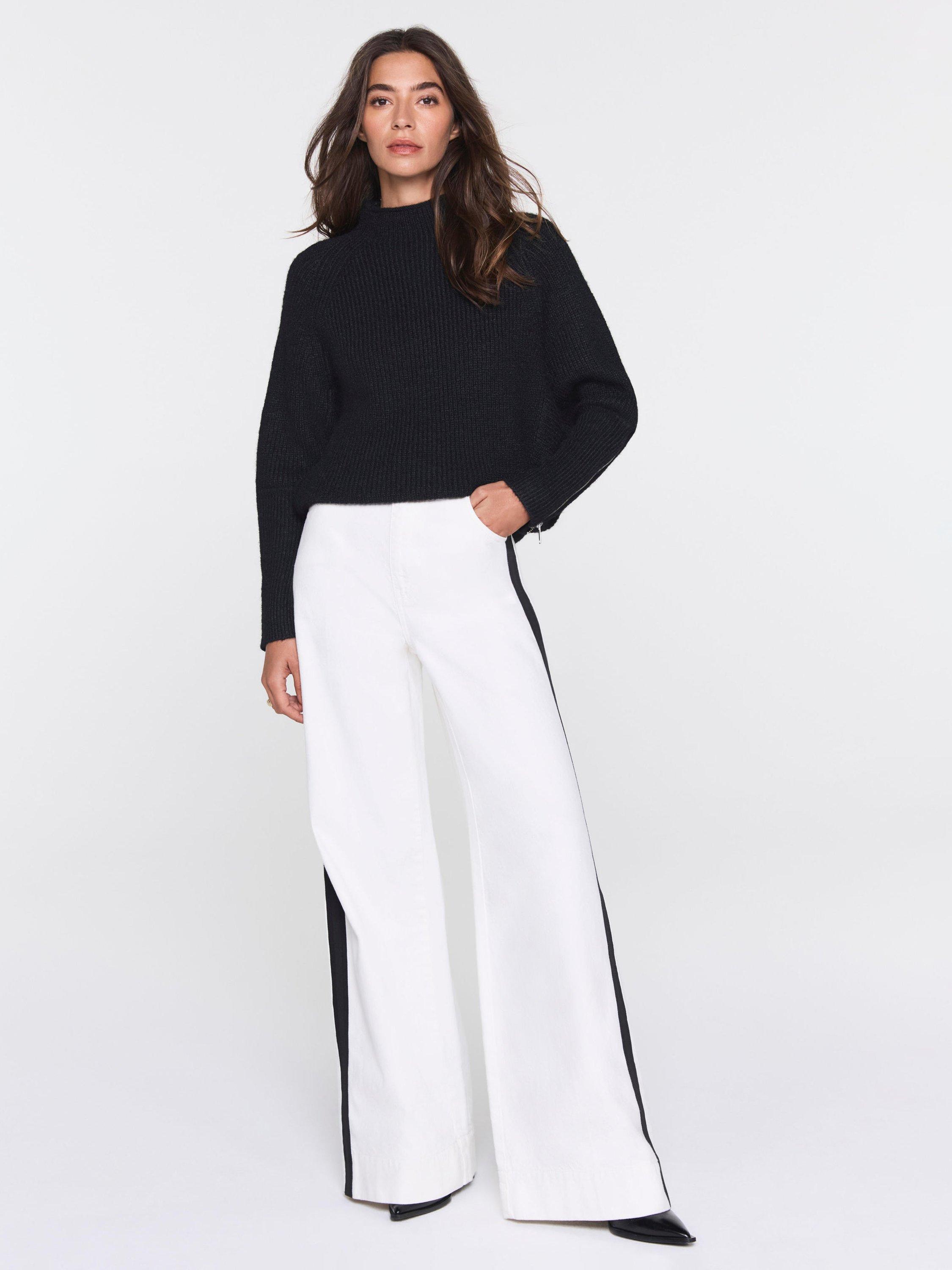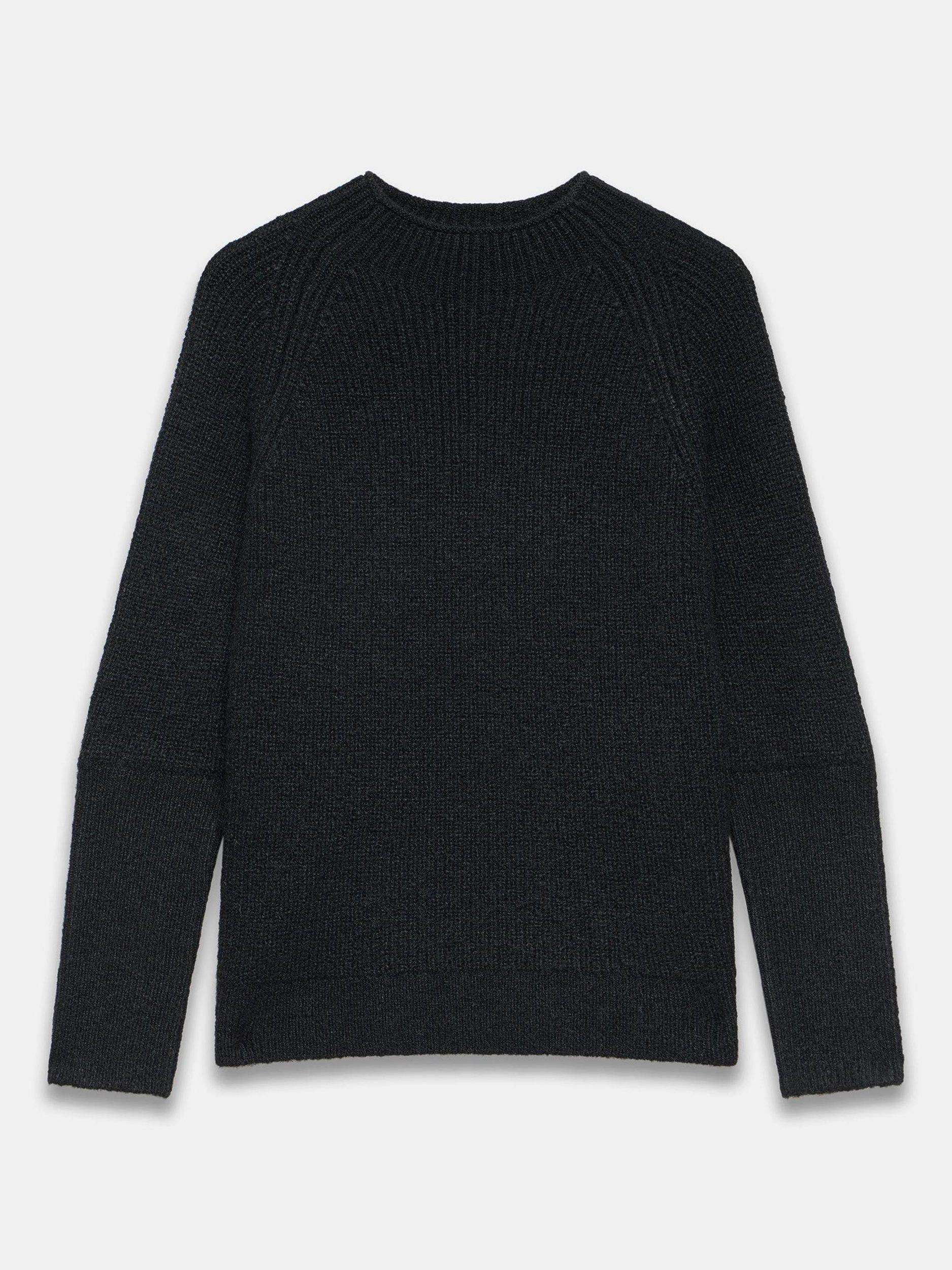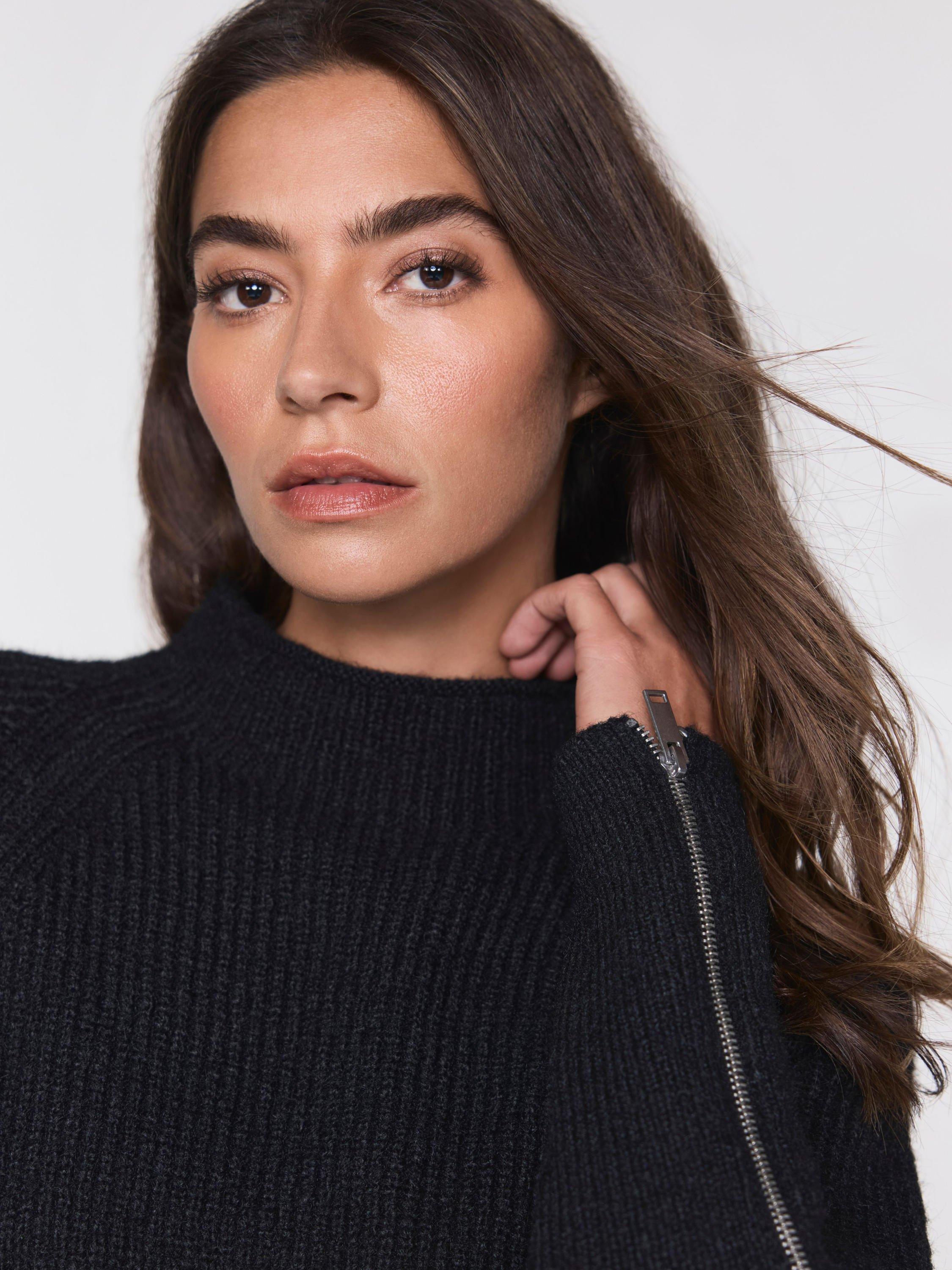 Black knit jumper featuring a crew neckline, long sleeves, exaggerated cuffs with a silver tone zip cuff detail.