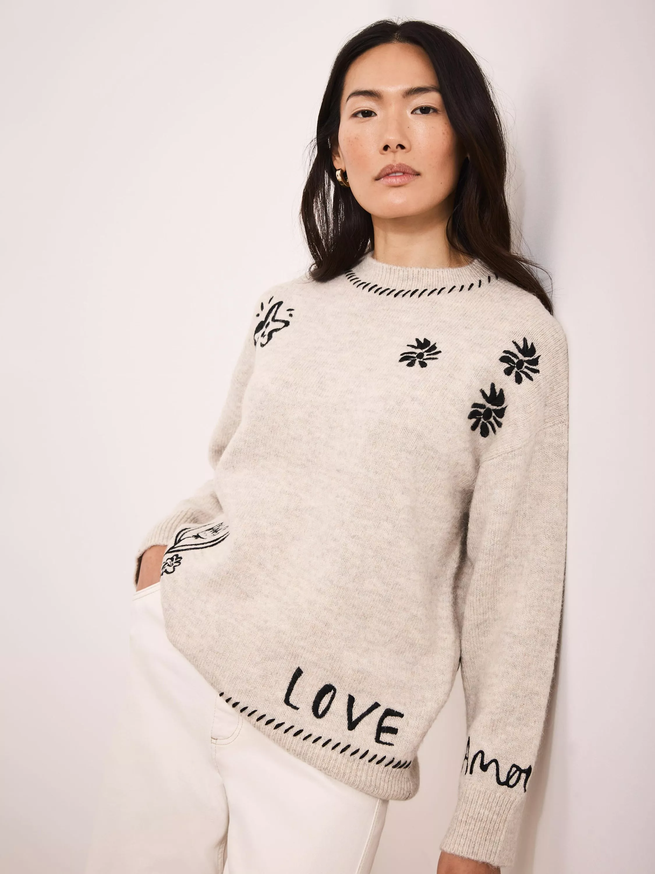 Made from a wool blend, this crew neck jumper from Mint Velvet is pepped up with embroidered detailing.