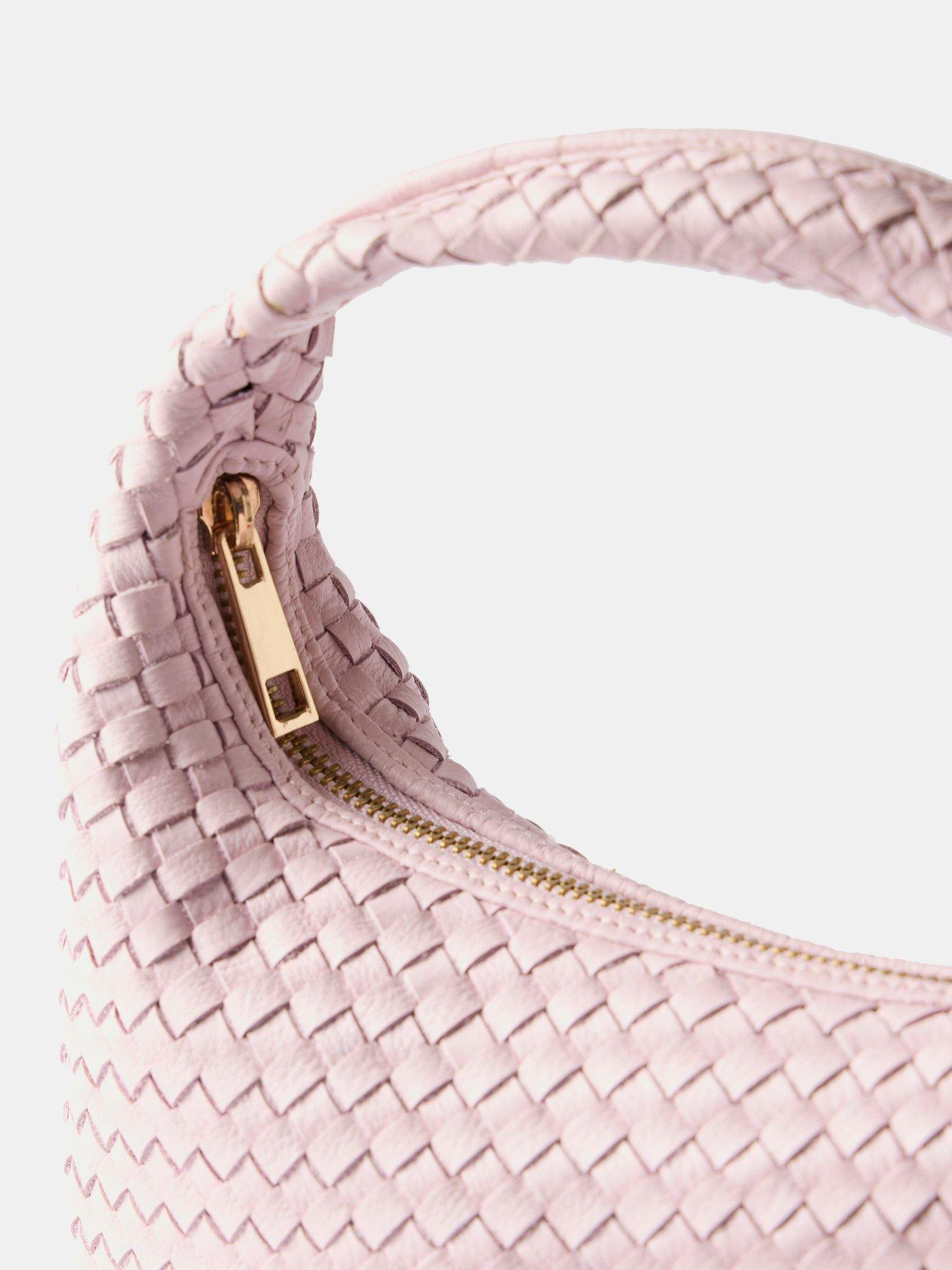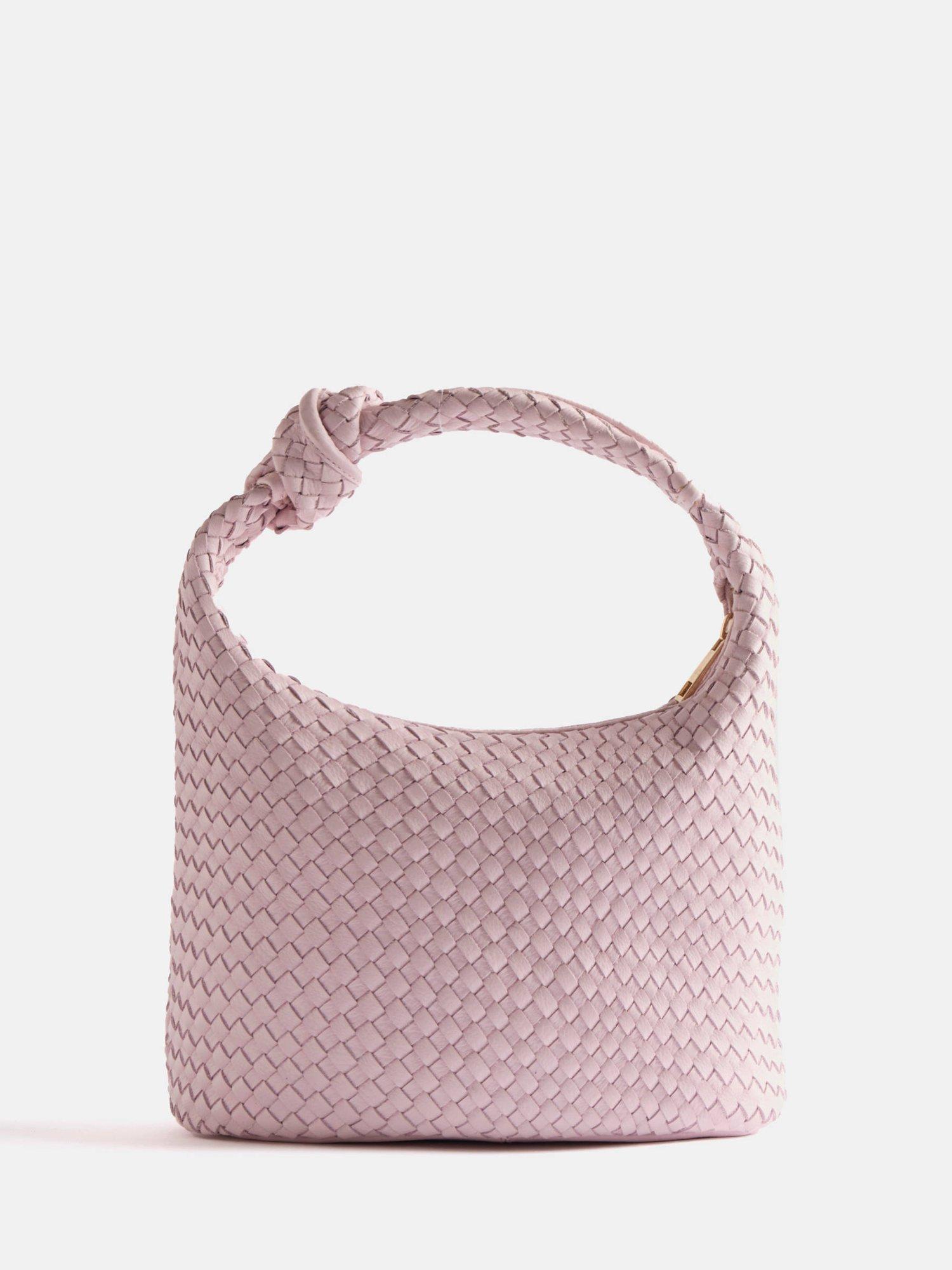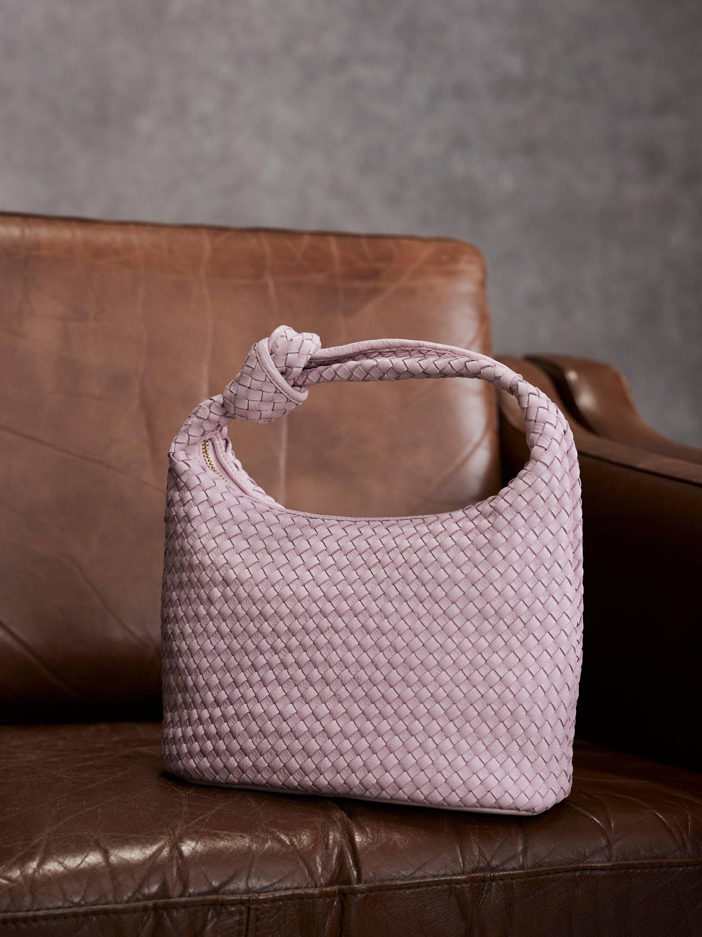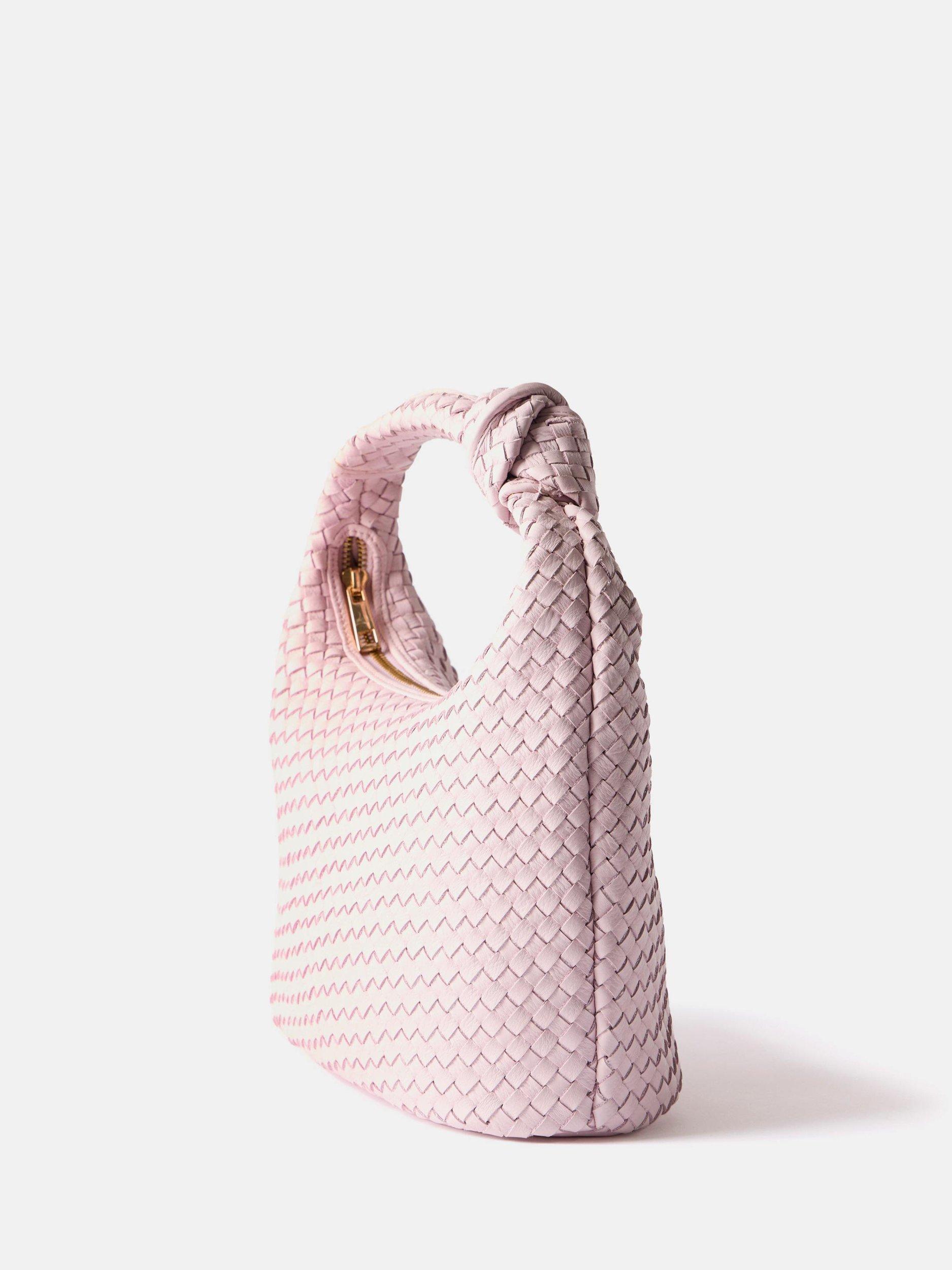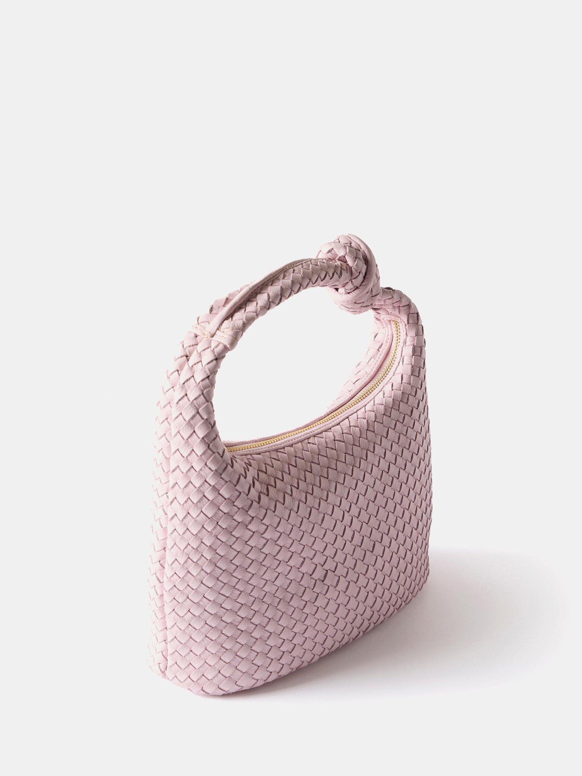 Mint VelvetWoven Leather Knot Handle Bag, Pink