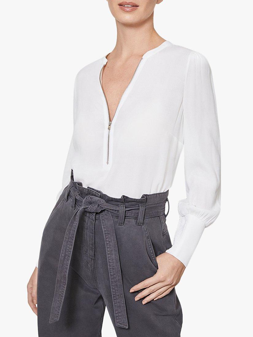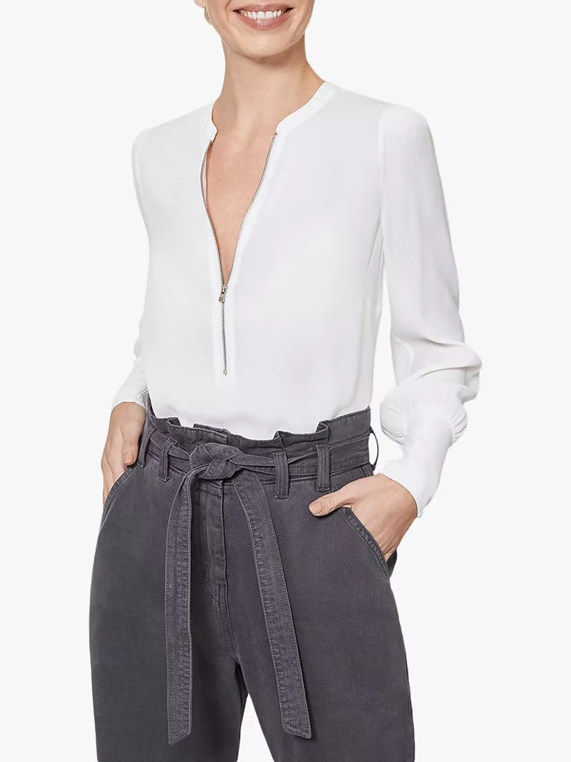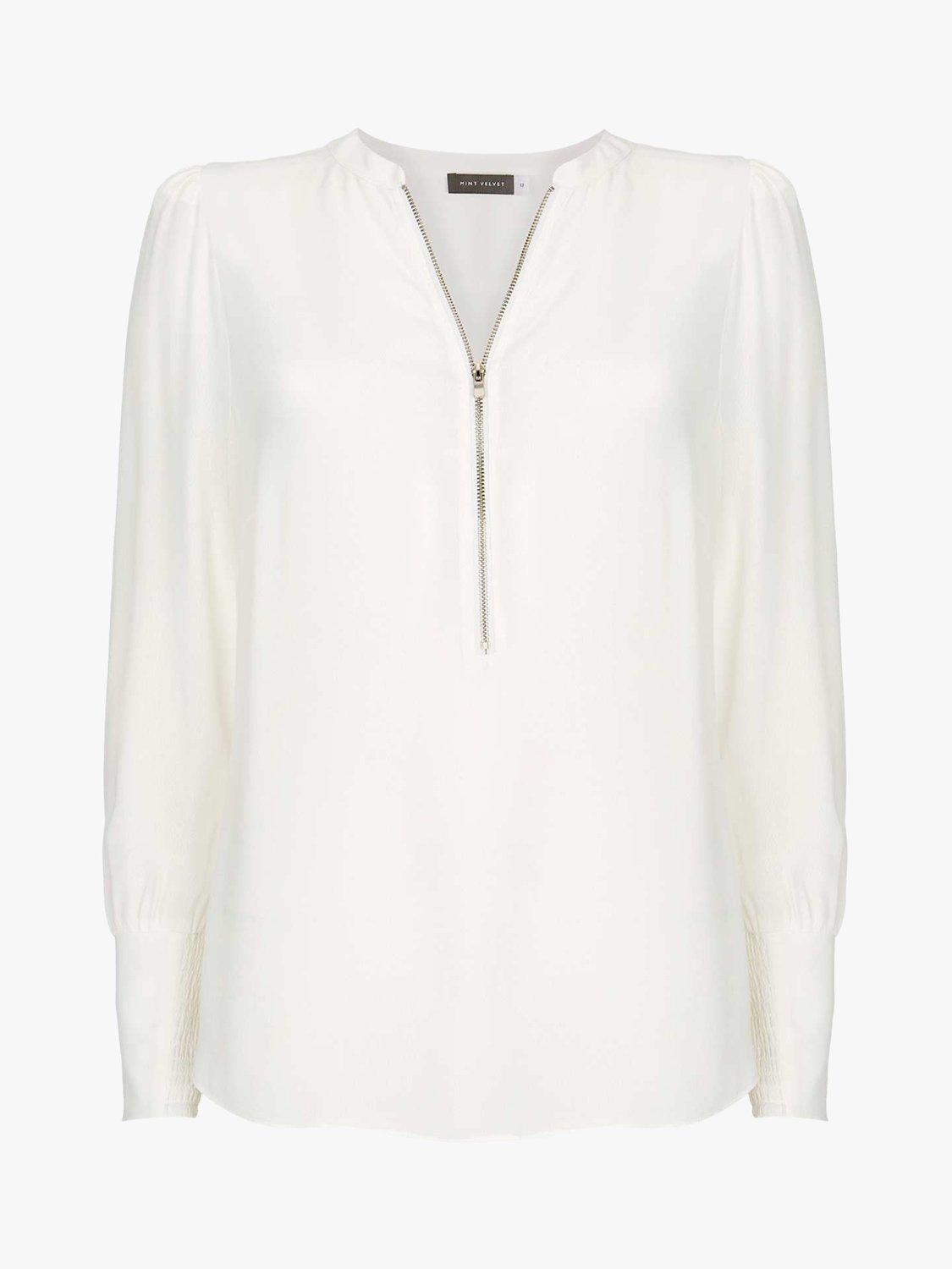 Cut from fluid fabric in a loose-fitting silhouette, this Mint Velvet top is framed by a zipped round neckline and puffed sleeves for an on-trend clash of vintage shapes with contemporary details.