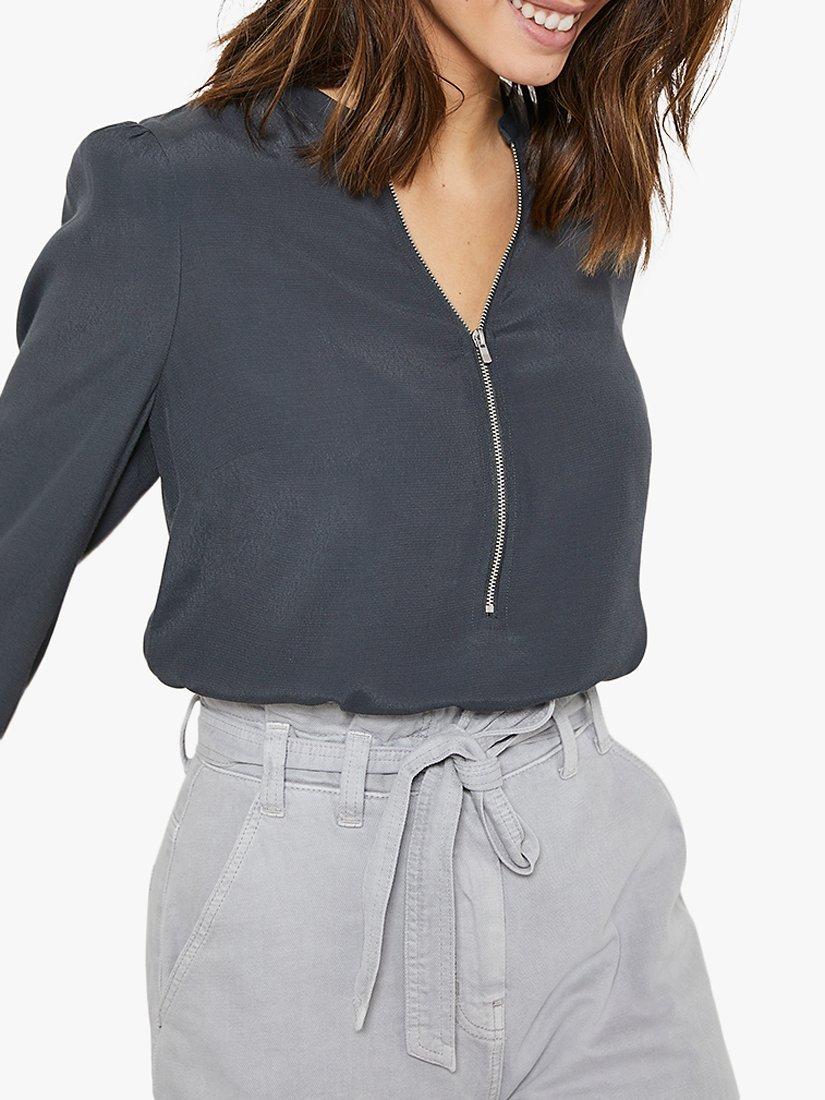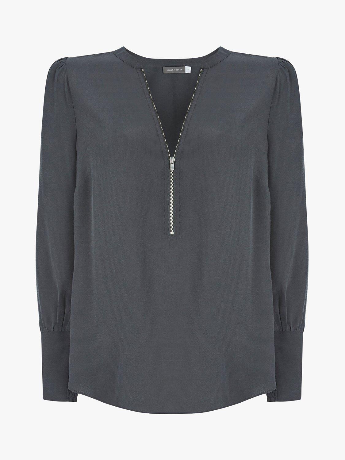 Cut from fluid fabric in a loose-fitting silhouette, this Mint Velvet top is framed by a zipped round neckline and puffed sleeves for an on-trend clash of vintage shapes with contemporary details.