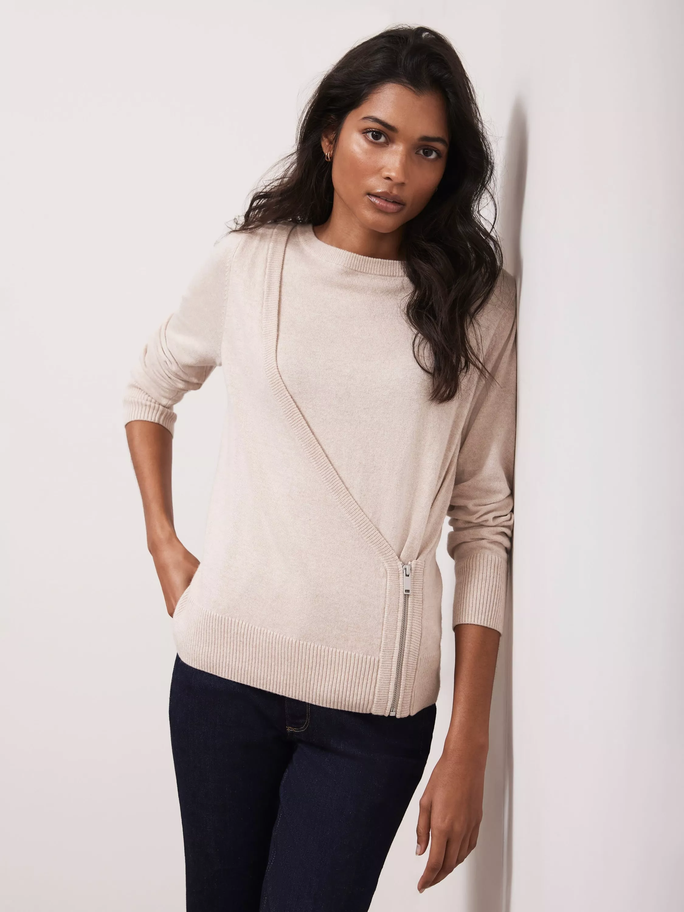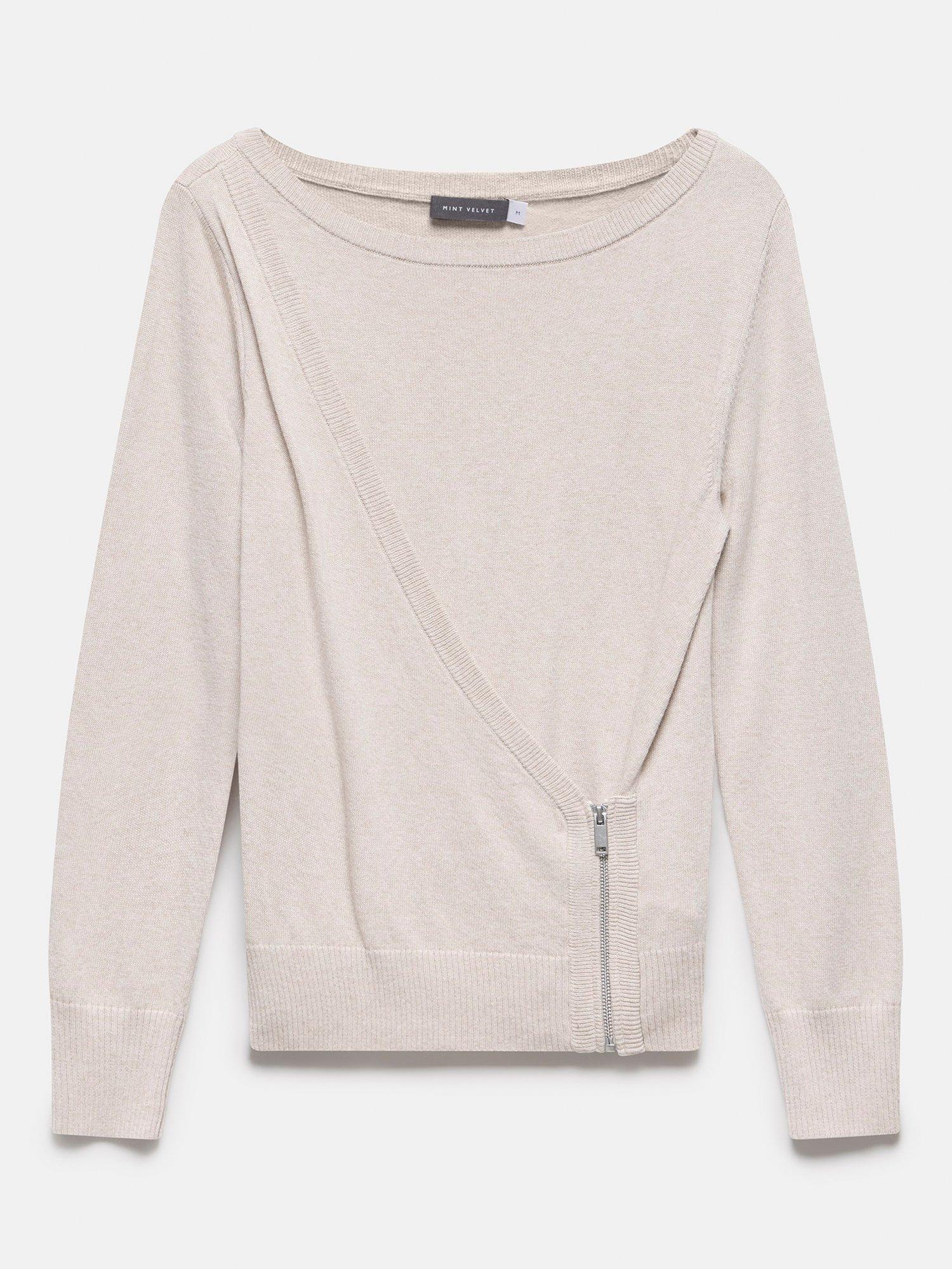 With a crew neckline for simple yet sleek style, this lightweight jumper from Mint Velvet is constructed from a super-soft cotton-blend and features a zip fastening through the side.