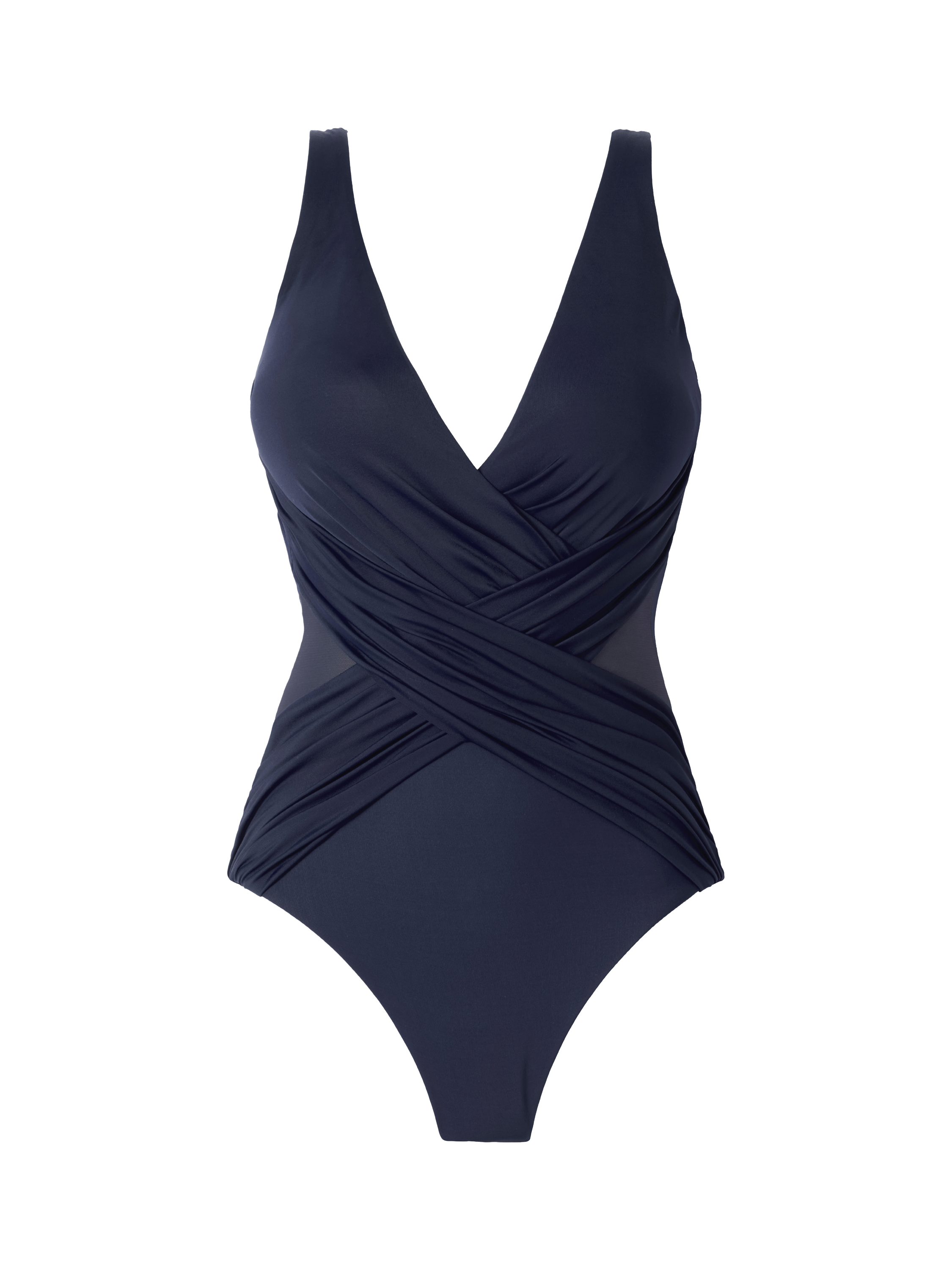 Criss-crossed to sheer perfection, the Miraclesuit Crossover with Mesh Swimsuit pays strict attention to your shape as its mid-section offers sculpting and superior tummy control. This one-piece swimsuit features mesh cutouts and classical draping to hide any flaws. Thicker set fixed shoulder straps meet at a low scoop back for unconditional support.