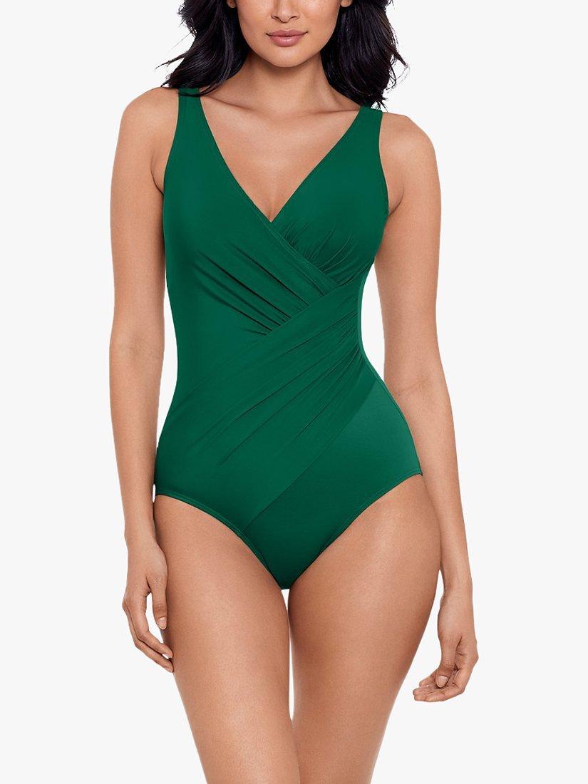 Feel body confident in Miraclesuit's Oceanus swimsuit. Soft cups shape the bust while the Miratex fabric provides all-over body control that both shapes and slims. Cleverly draped fabric across the front conceals your tummy too so you can let go of any body hang-ups and enjoy your time at the beach.