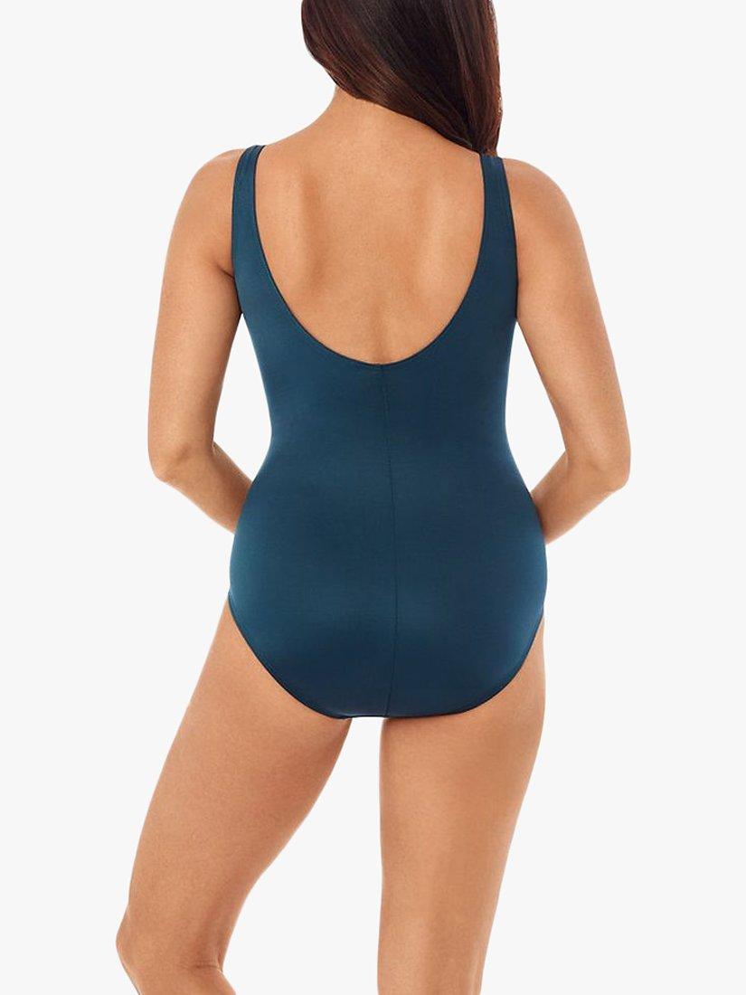Feel body confident in Miraclesuit's Oceanus swimsuit. Soft cups shape the bust while the Miratex fabric provides all-over body control that both shapes and slims. Cleverly draped fabric across the front conceals your tummy too so you can let go of any body hang-ups and enjoy your time at the beach.