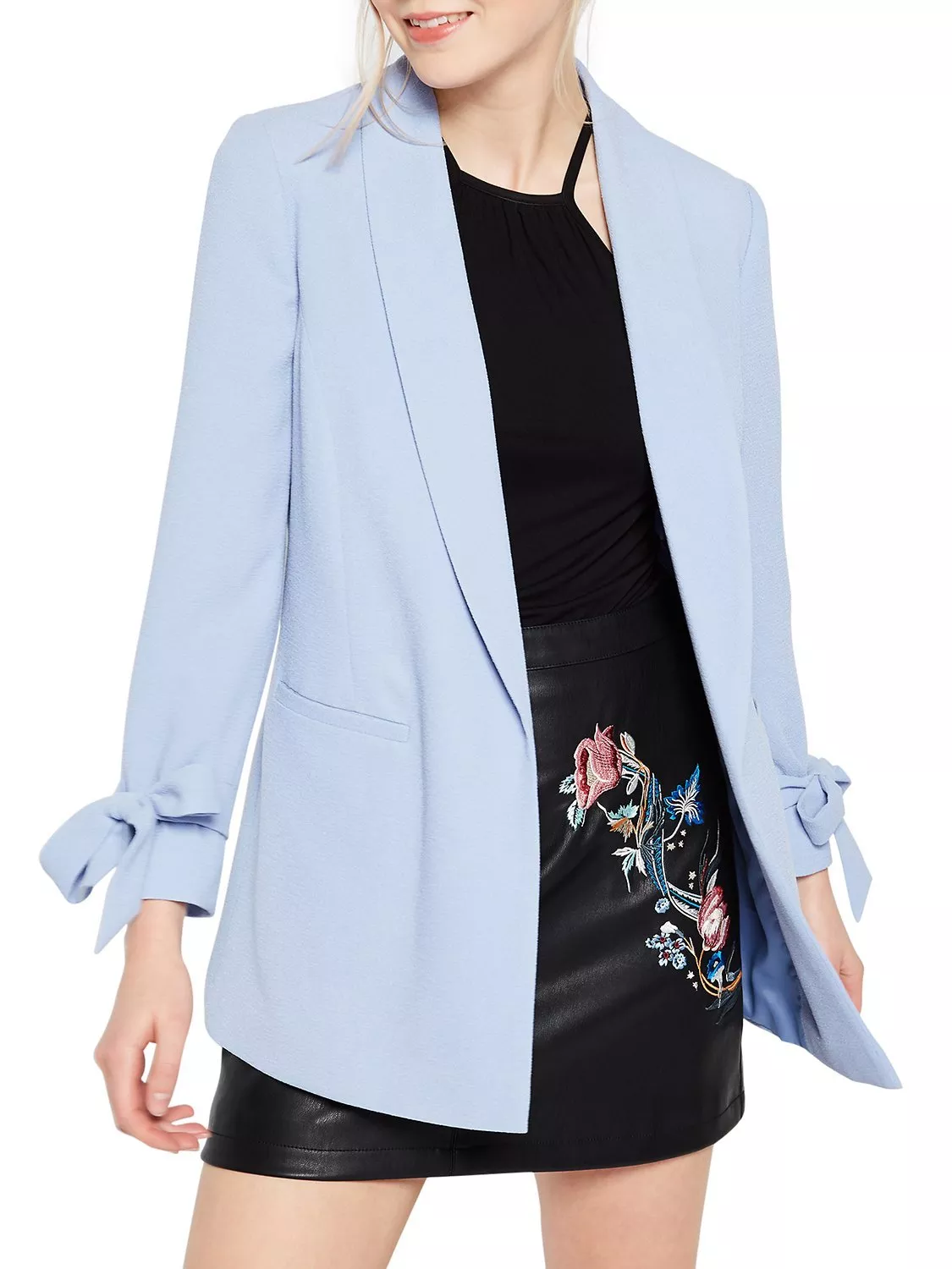 Designed in a lightweight fabric for year-round suitability, this blazer has a shawl neckline and statement bow detailing at the cuffs.