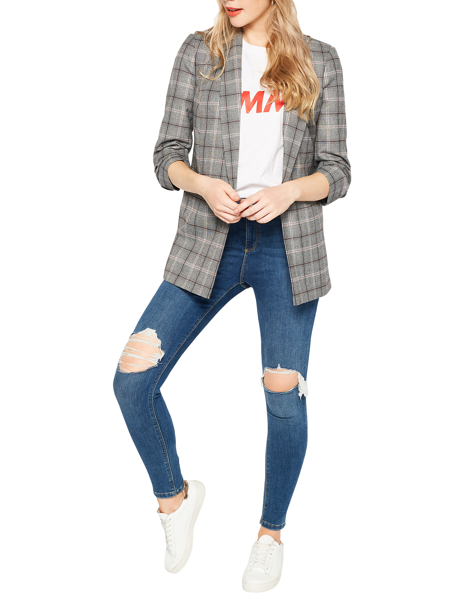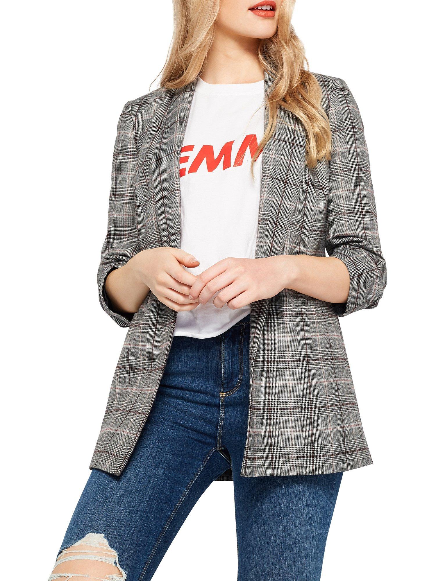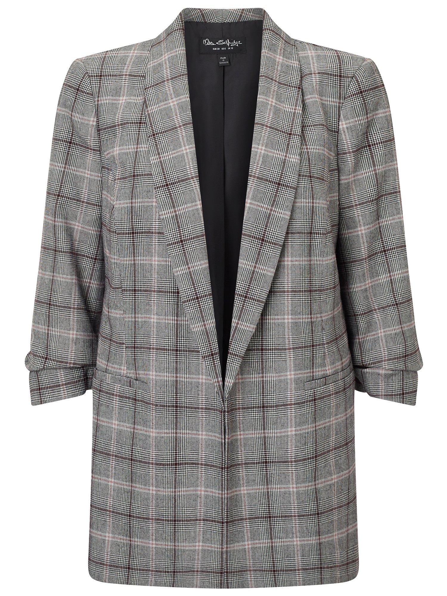 Bring a classic pattern to your casual outfits with this Check Ruched Sleeve blazer from Miss Selfridge.