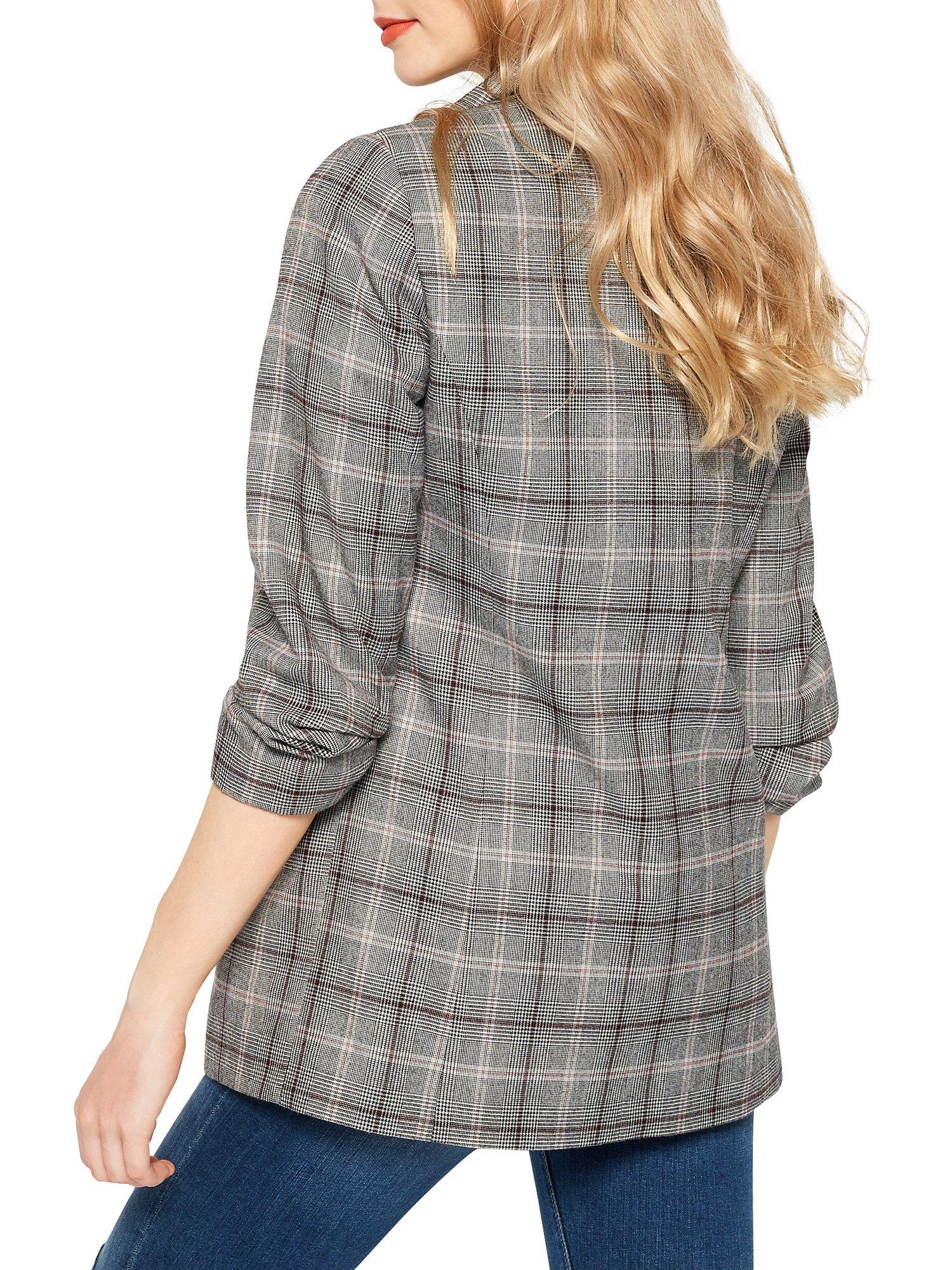 Offering a chic, oversized fit, this piece boasts a notch collar with ruched, three quarter length sleeves for a laid back feel and a check pattern running throughout.
