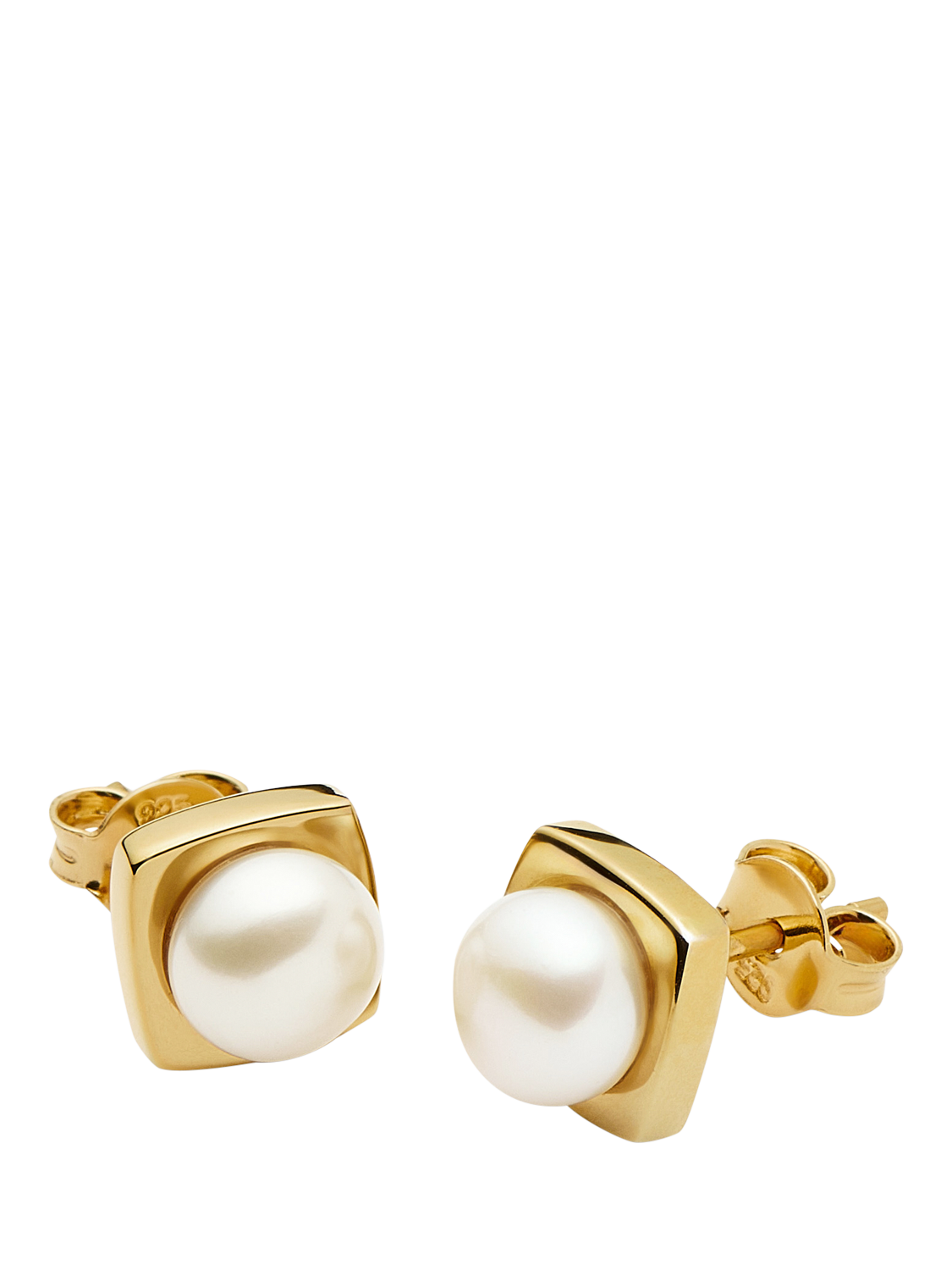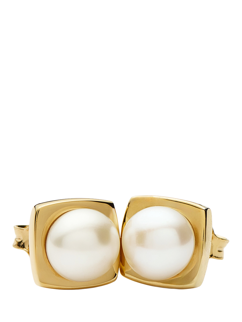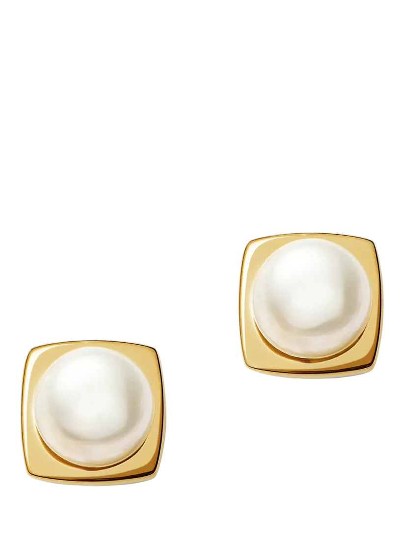 MissomaButton Pearl Square Stud Earrings, Gold