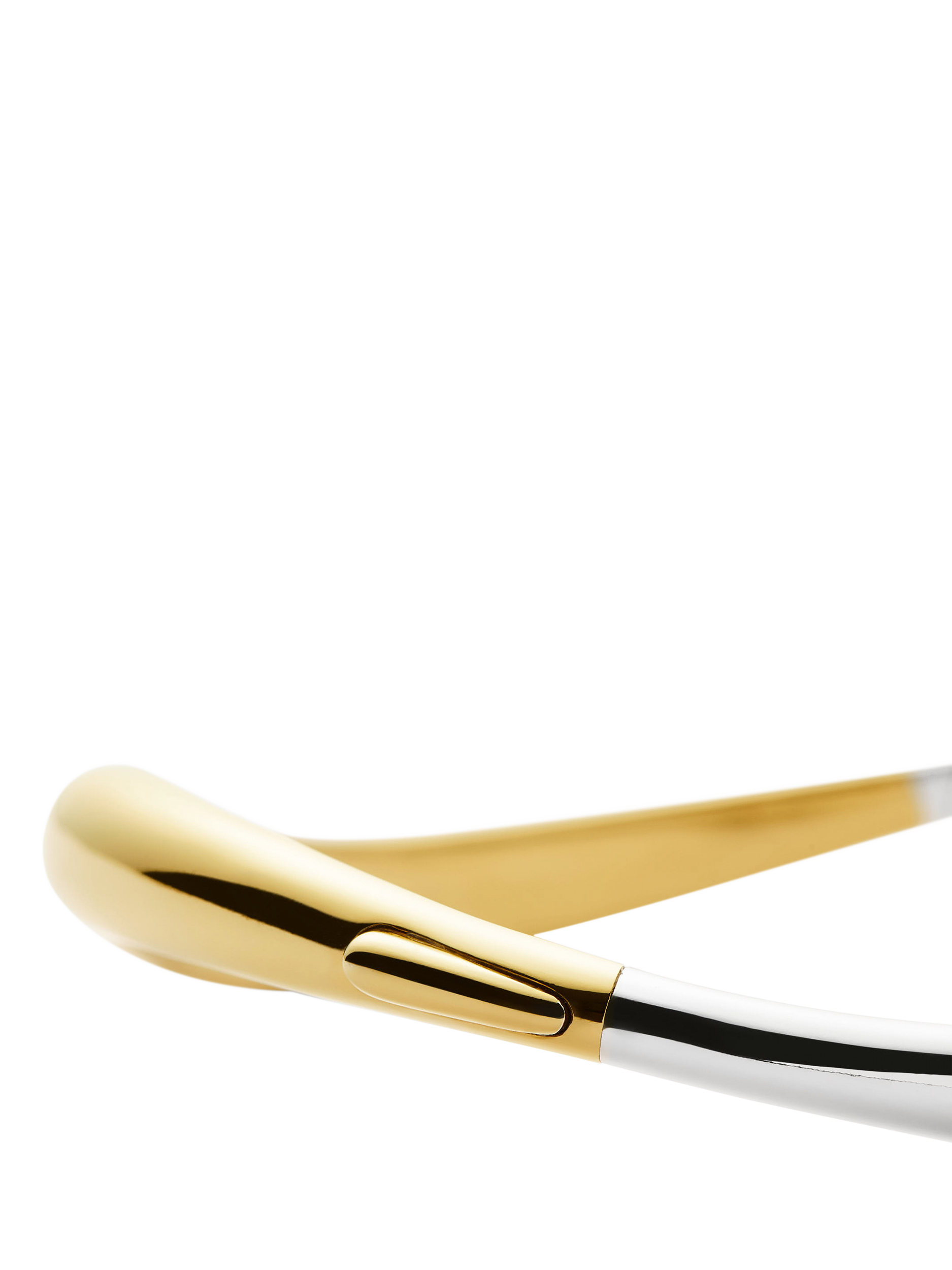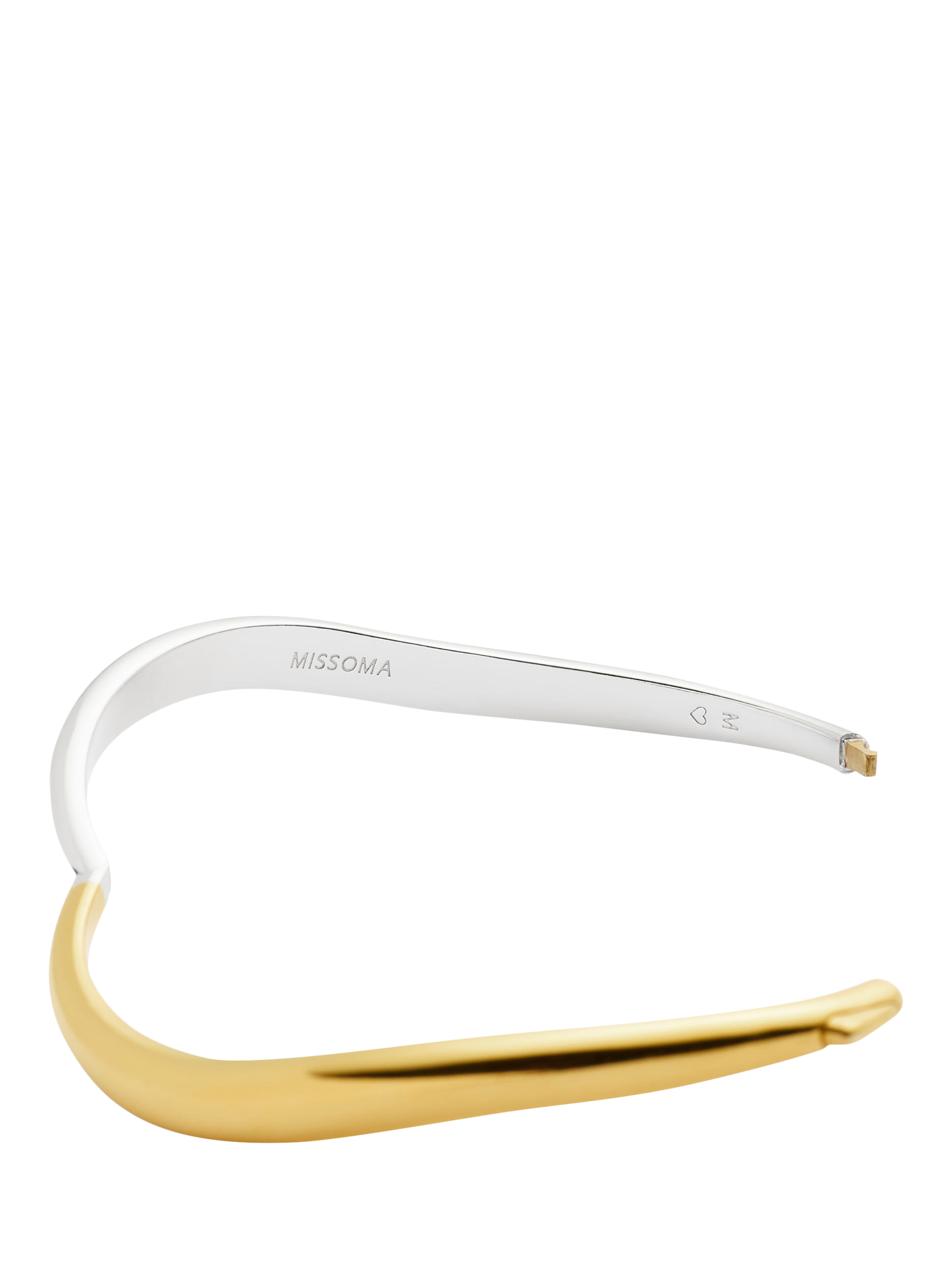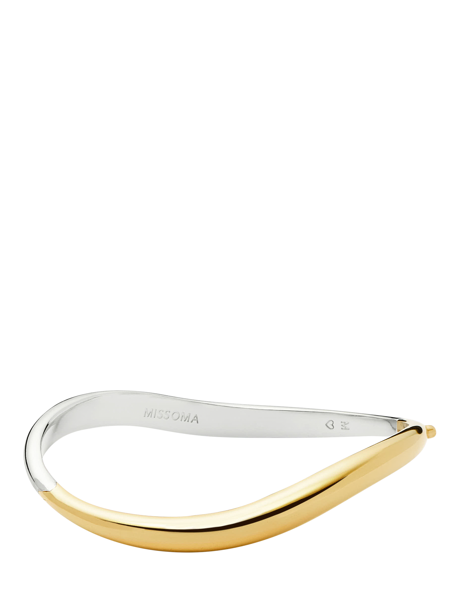 This everyday mixed-metal bangle features Missoma's signature Savi 'S' shape as the perfect starting point for your arm stack. Designed with a hinged oval shape for easy wear, the bangle can be worn with either the gold or silver front facing, giving you two bangles in one.
