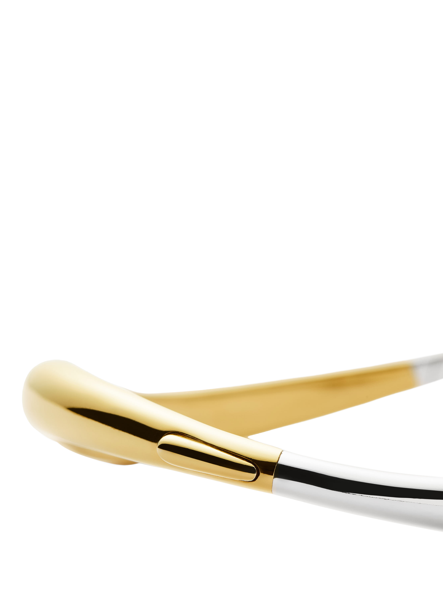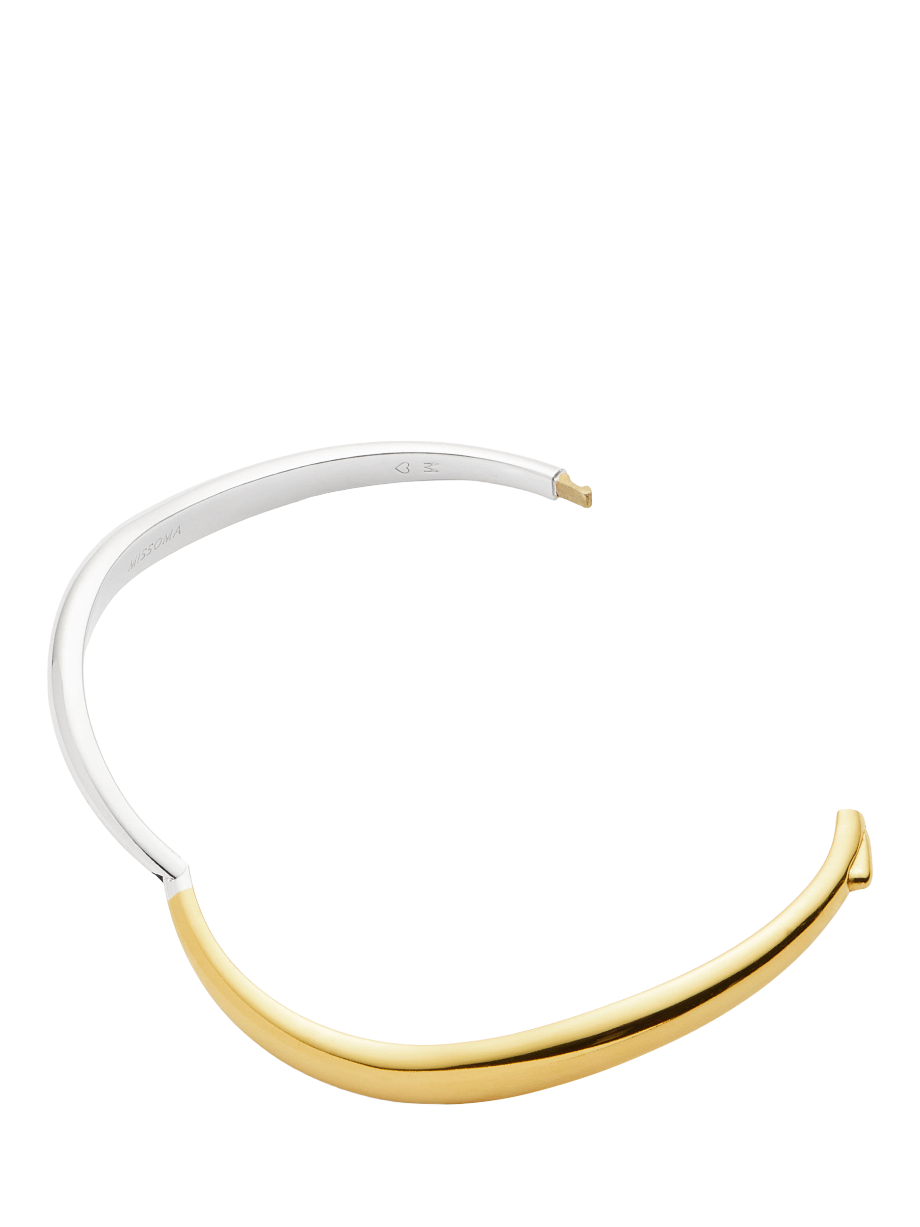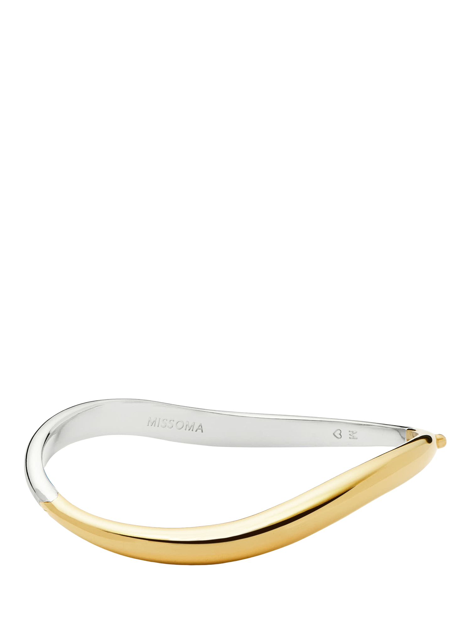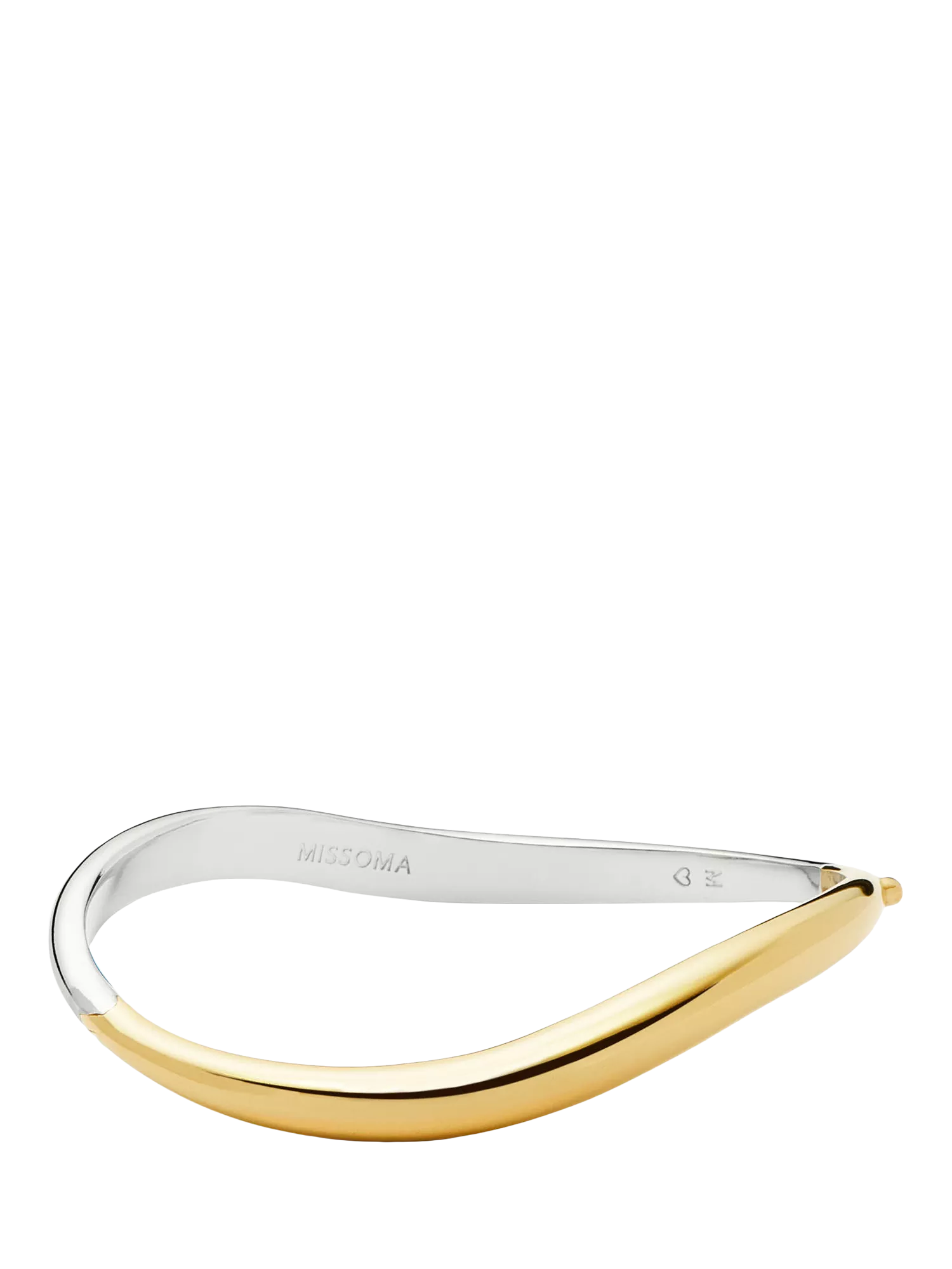 This everyday mixed-metal bangle features Missoma's signature Savi 'S' shape as the perfect starting point for your arm stack. Designed with a hinged oval shape for easy wear, the bangle can be worn with either the gold or silver front facing, giving you two bangles in one.