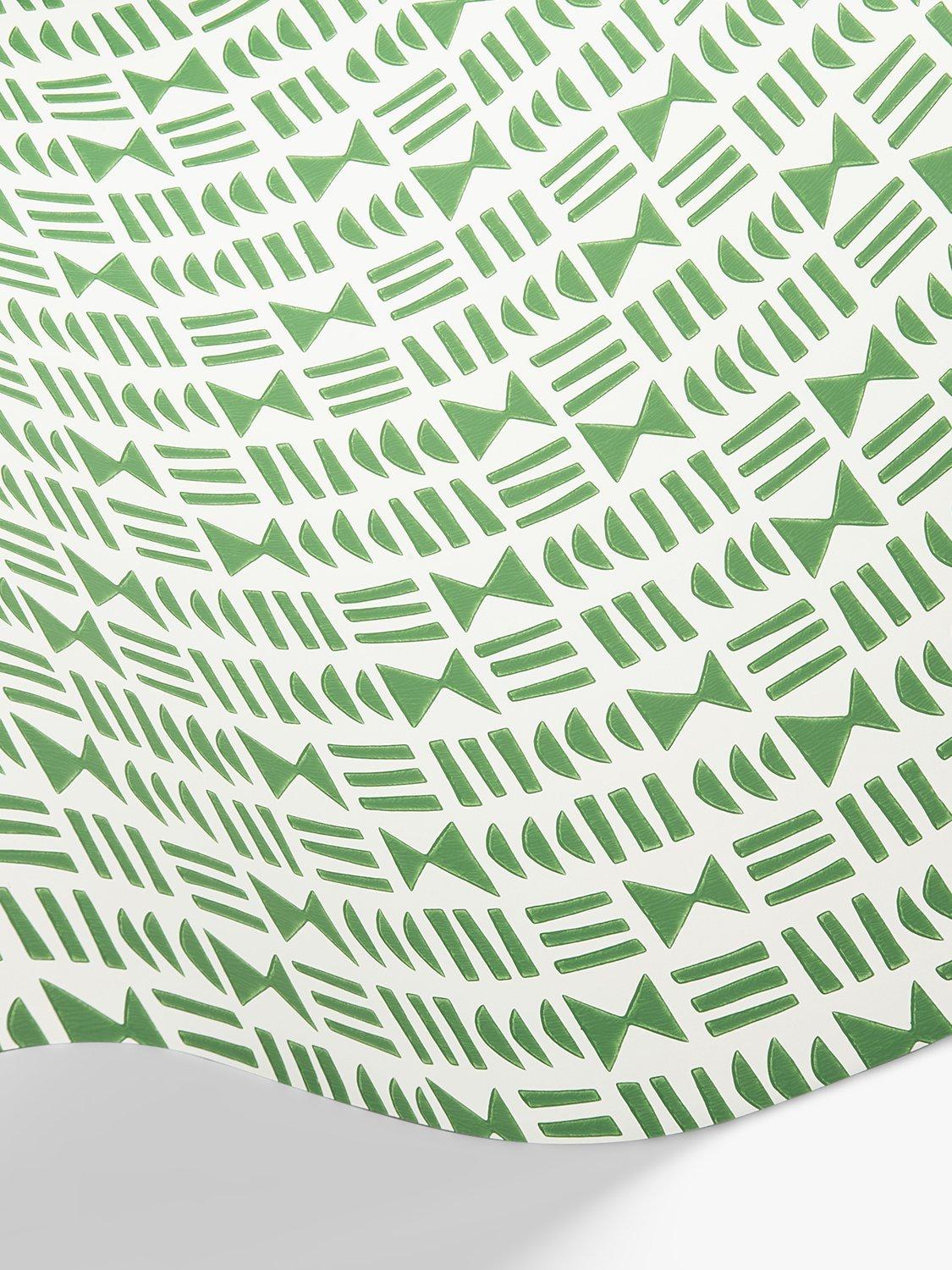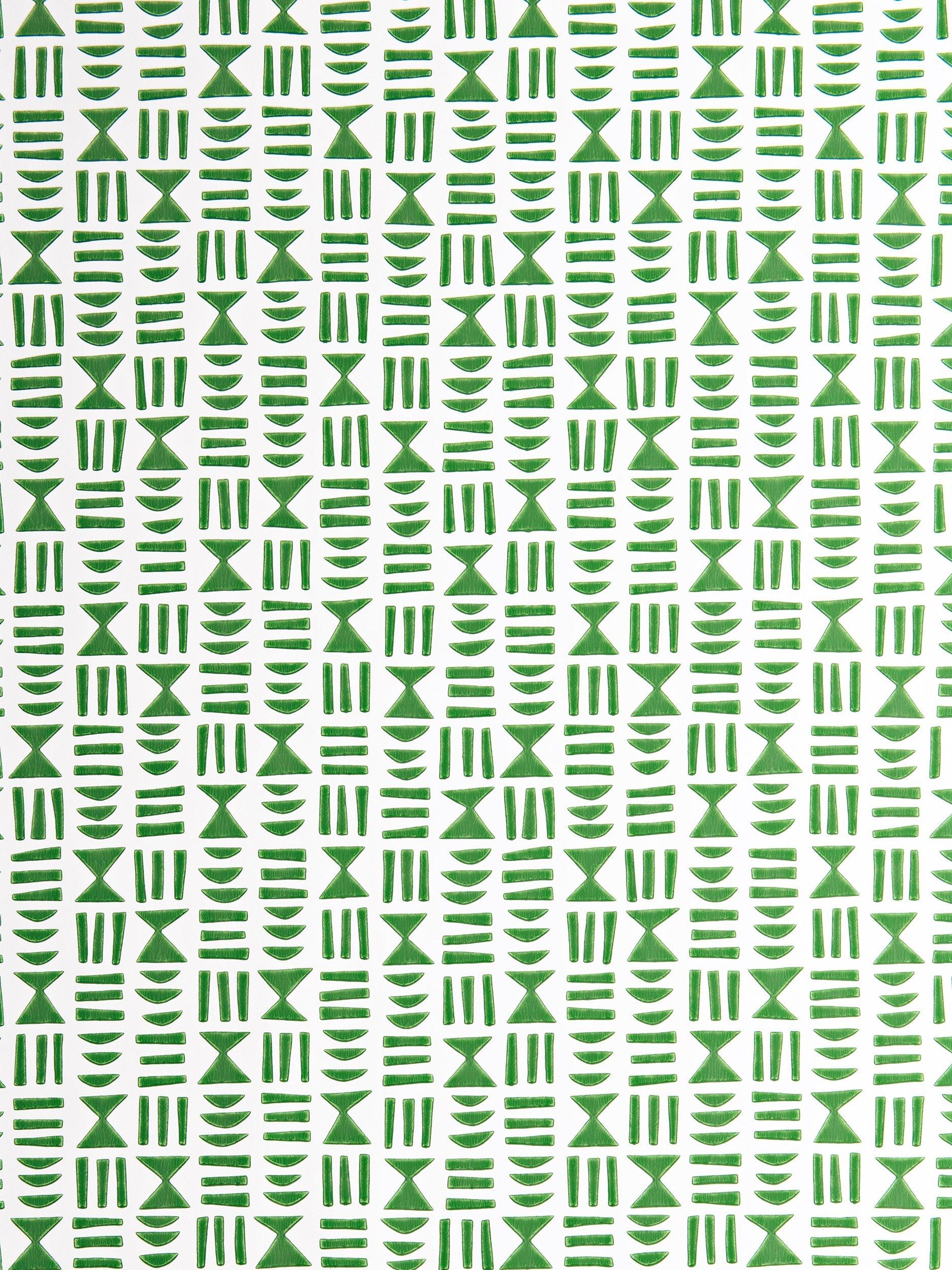 Reminiscent of ancient Egyptian writing, Hieroglyph has been designed using straight horizontal and vertical lines to create a fabric like woven texture when viewed from afar. Up close, each motif is carefully drawn and printed with a surface printing technique, creating a tactile feel.