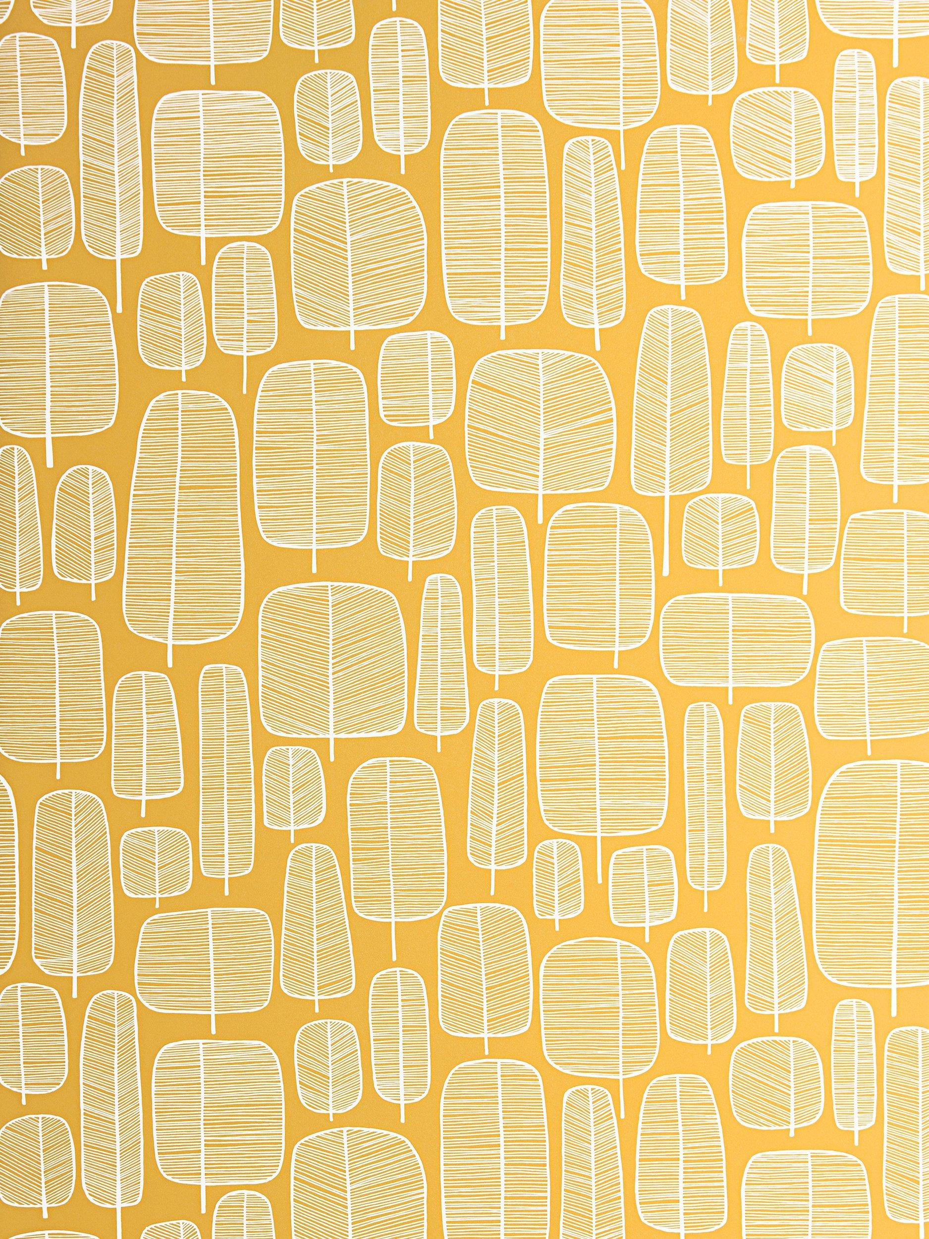 Intricate whimsical illustrations of small line drawn trees evolved from simple pen studies in a sketchbook. Each tree within the wallpaper width is unique, creating an even natural texture on your walls.
