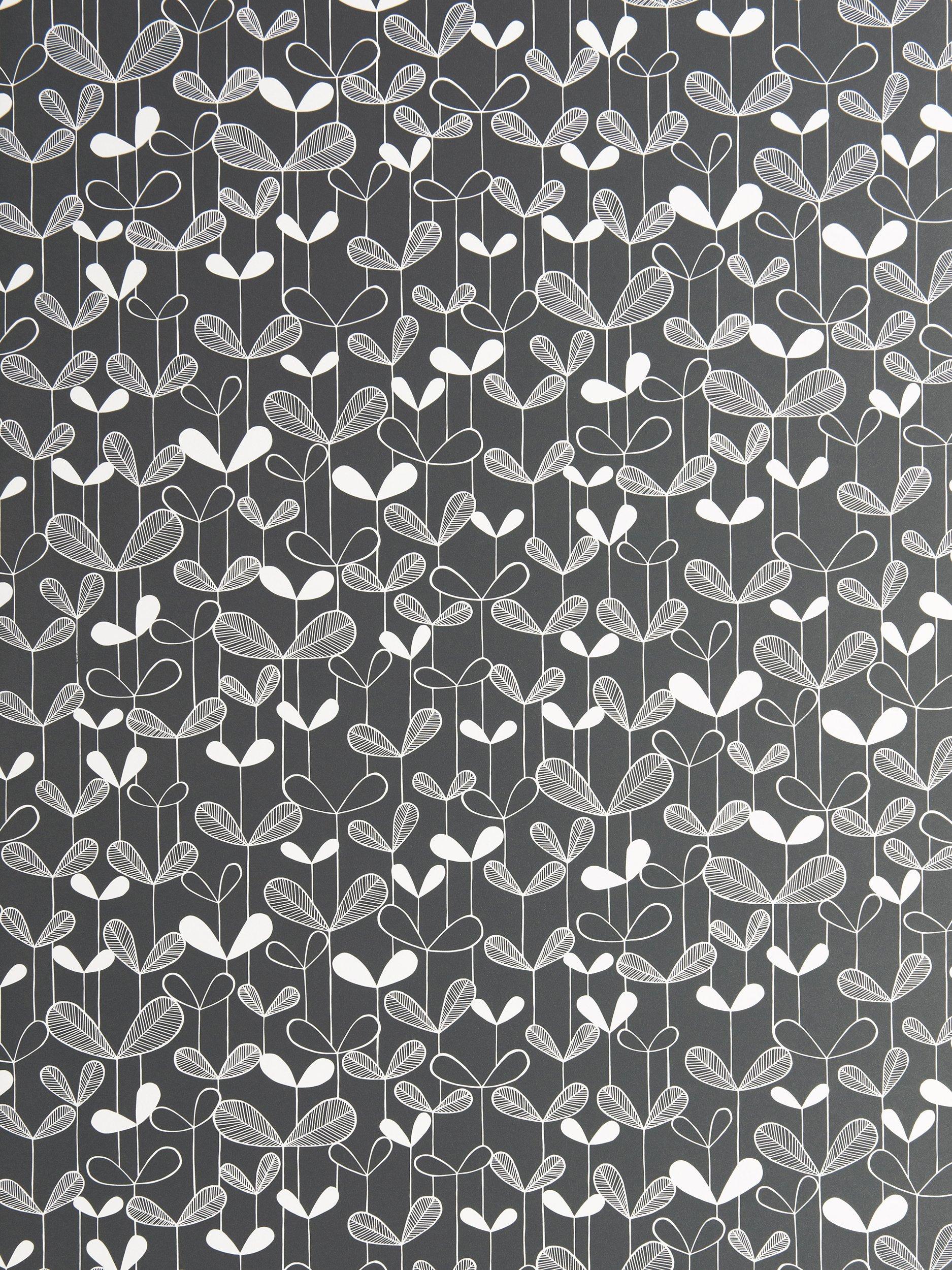 Carefully drawn and developed into a seamlessly repeating pattern, small delicate leaves energetically grow from thin stems. The palette is refined to single colours to complement the illustration.