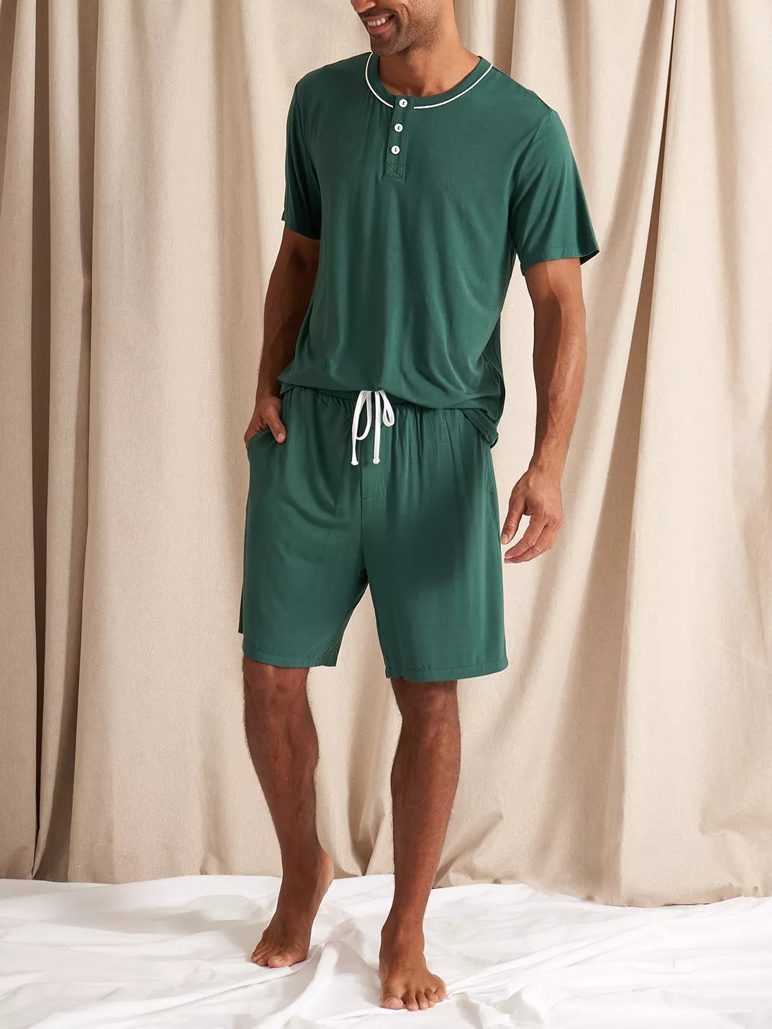 Elevate your nightwear collection with the Mister You Bamboo Short Pyjama Set, designed for men who prioritise both comfort and style. Made from ultra-soft bamboo fabric, this set is naturally breathable and moisture-wicking, ensuring a cool and relaxed sleep.