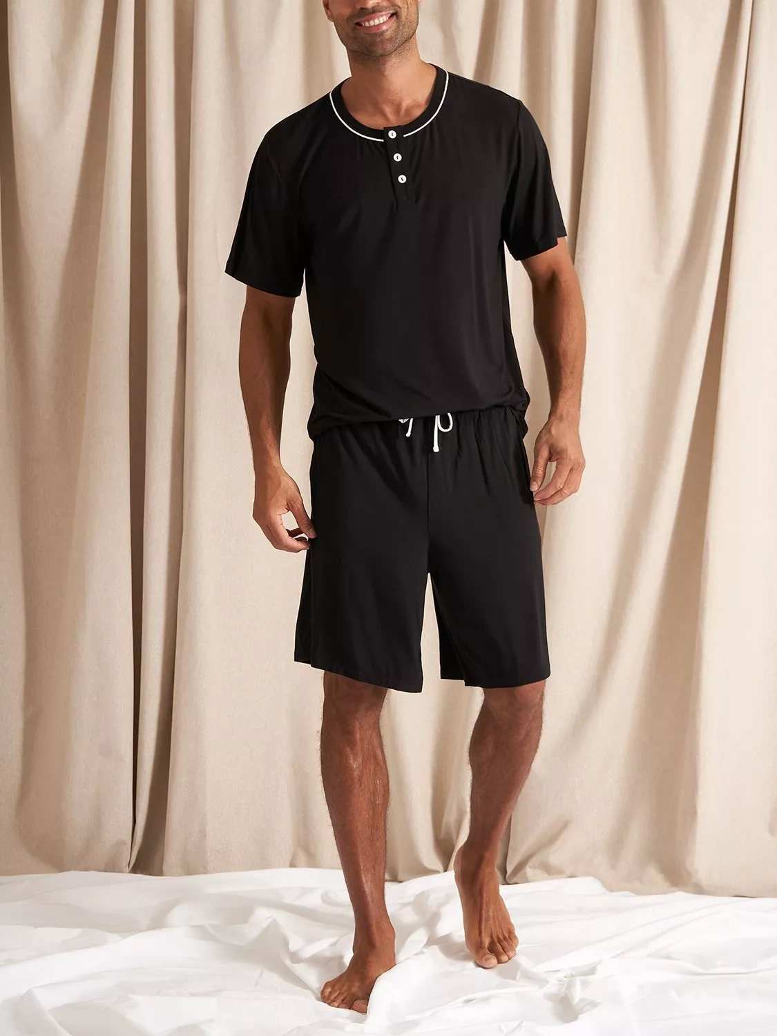 Elevate your nightwear collection with the Mister You Bamboo Short Pyjama Set, designed for men who prioritise both comfort and style. Made from ultra-soft bamboo fabric, this set is naturally breathable and moisture-wicking, ensuring a cool and relaxed sleep.