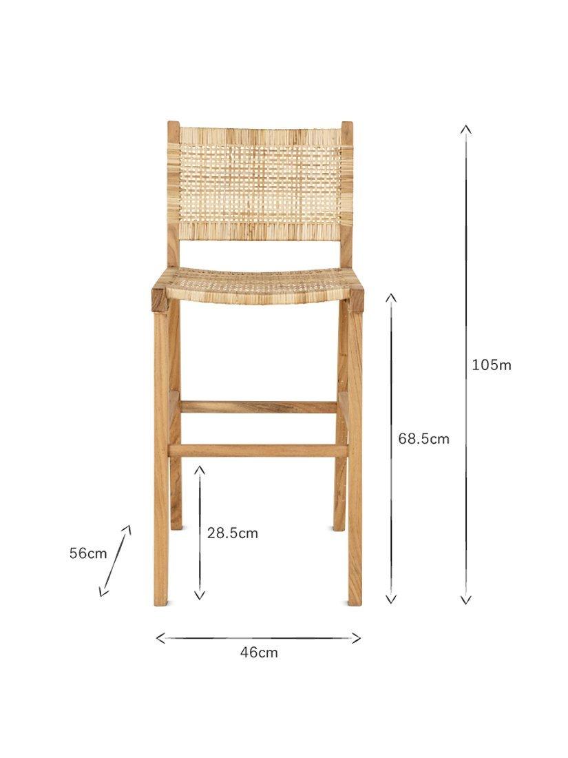 The seat and back are intricately woven from rattan, a time-honoured process which involves a great deal of skill. The frame is crafted from acacia wood and is unpainted so the organic wood grain is on display. The traditional methods used to create this stool give it an appealing handmade quality.
