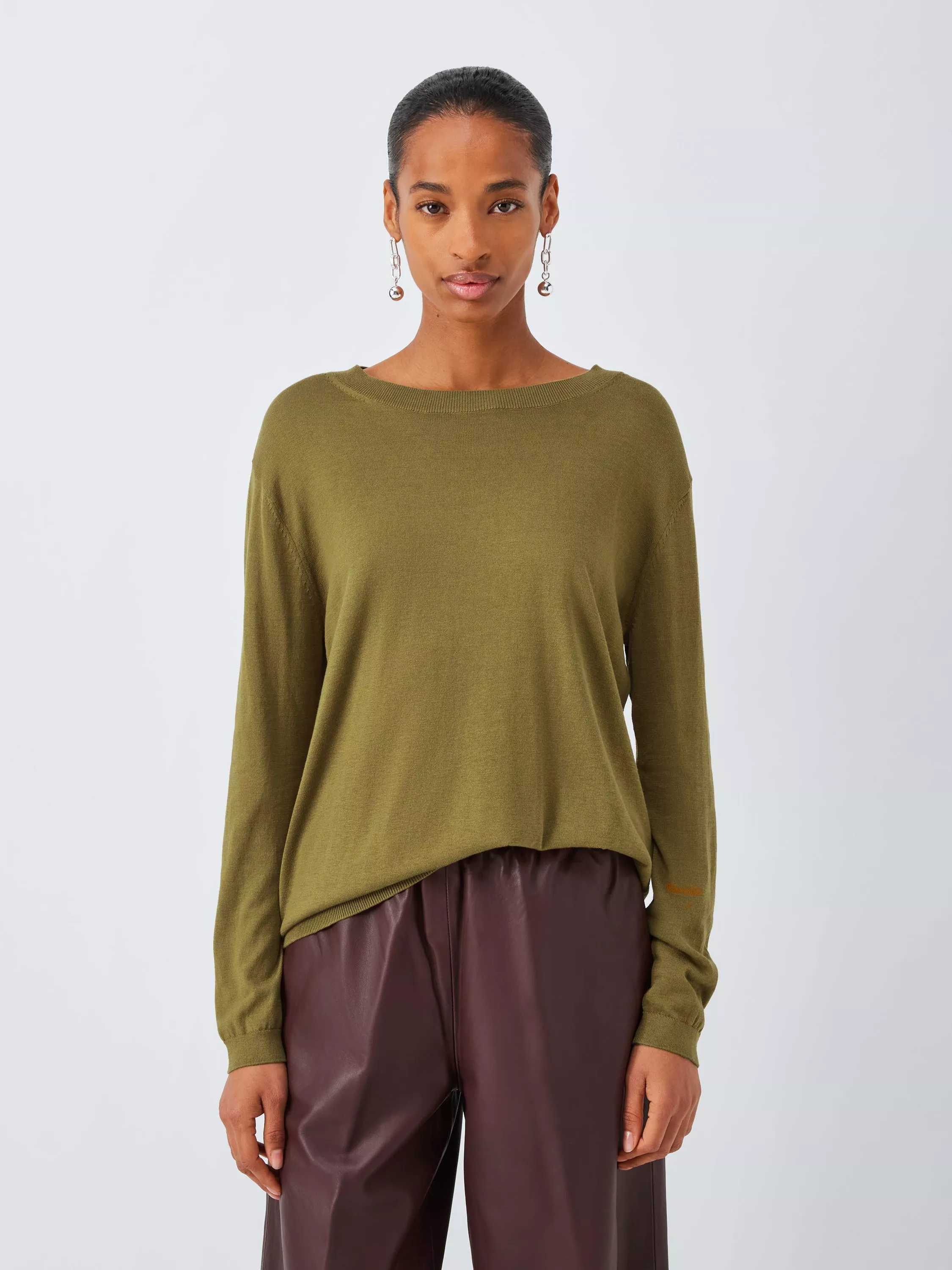 Long-sleeved top made from a silk and cotton blend for a soft feel and more fluid drape. A classic crew neckline finished with ribbed trims.