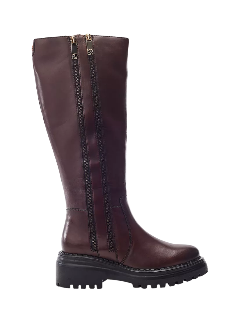 Meet Camilio, the long boot featuring a sleek side zip for easy on-and-off wear. The hidden wedge heel provides a flattering lift without sacrificing comfort making it ideal for all-day wear whilst the durable outsole is designed with textured grip for added stability. This sleek silhouette features dual zippers that add eye-catching detail as well as easy on-and-off wear. Whether paired with skinny jeans or dresses this versatile boot adds polished edge to any cold-weather wardrobe.