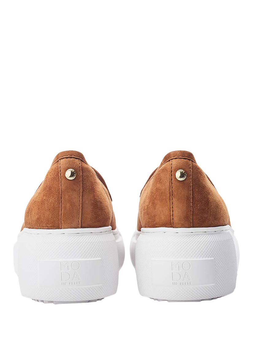 Create an impression with Chamomile from Moda in Pelle. This hybrid style combines classic loafer features with the comfort of a slip-on trainer. The wedge heel adds a wearable whilst the leather sock provides comfortable wear.