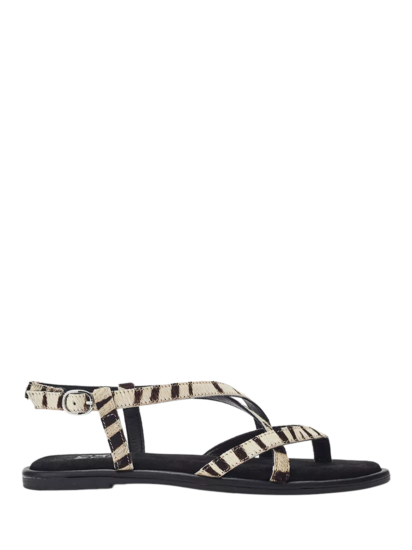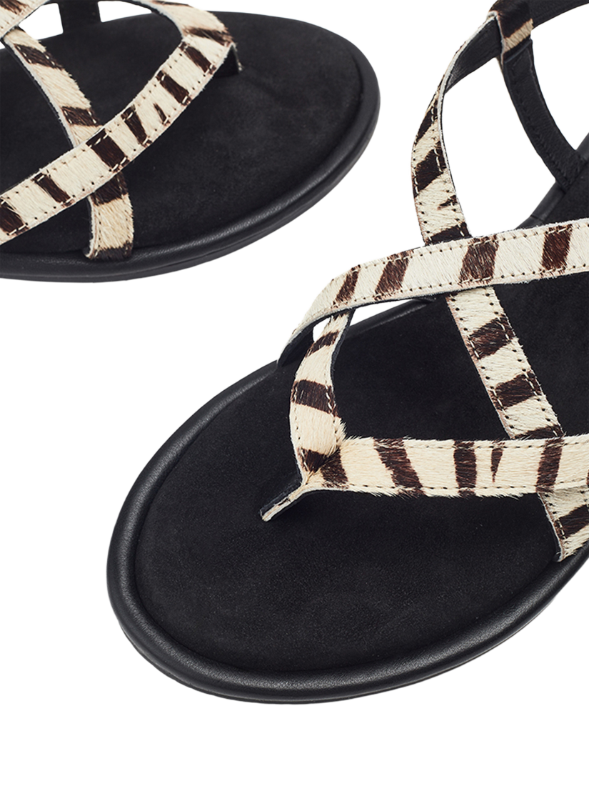 Jacaran is a strappy, flat-sole sandal. The pony hair material in your favourite animal print gives this style a luxe edge whilst nodding to this season's key trend. Complete with leather sock and lining for all-day comfort.